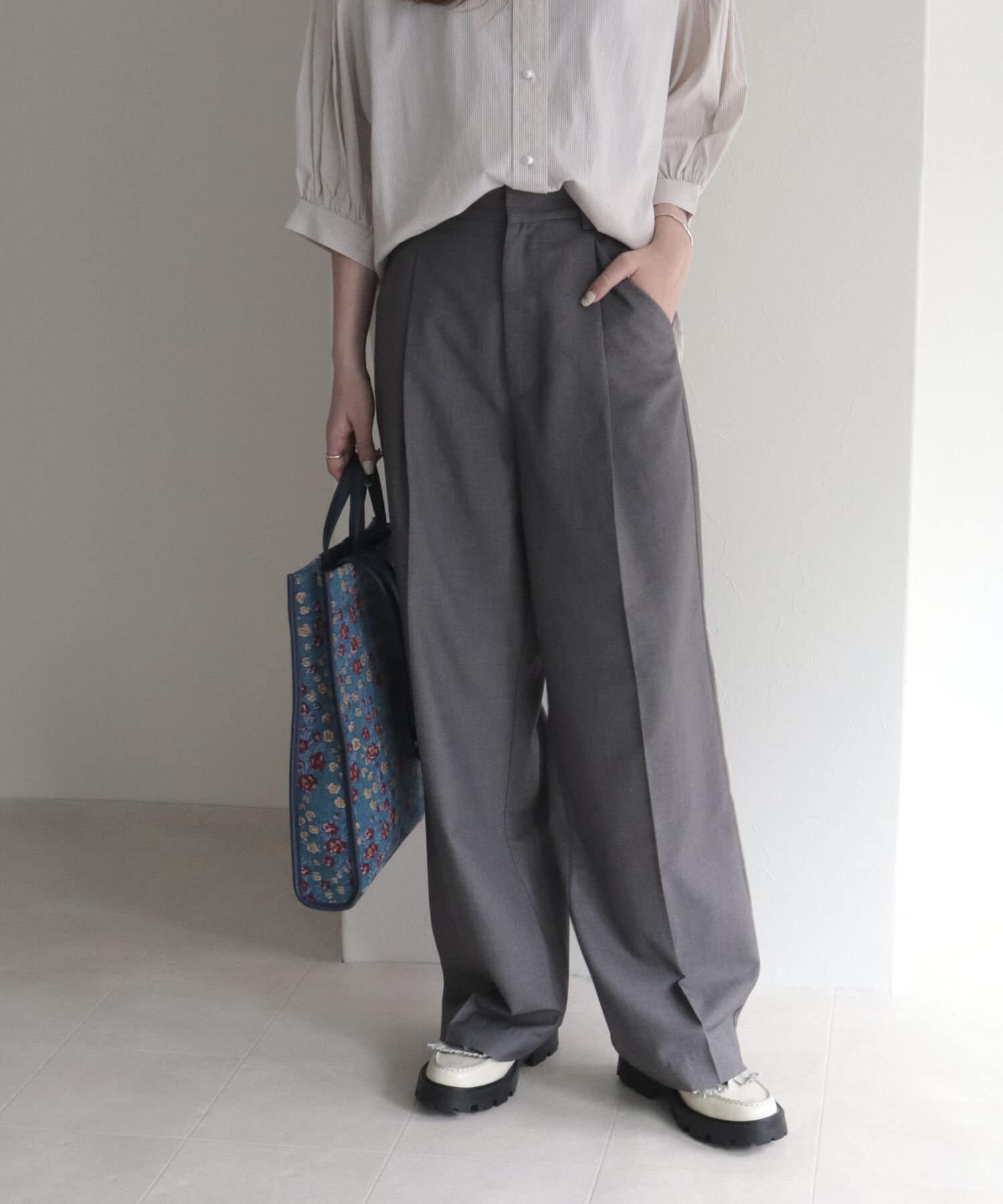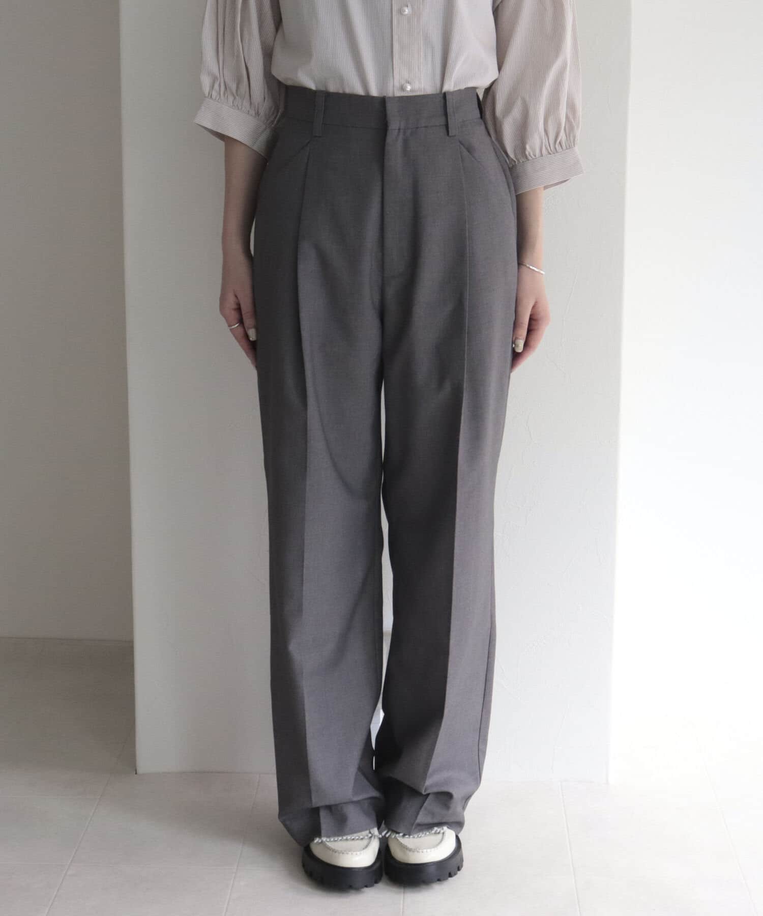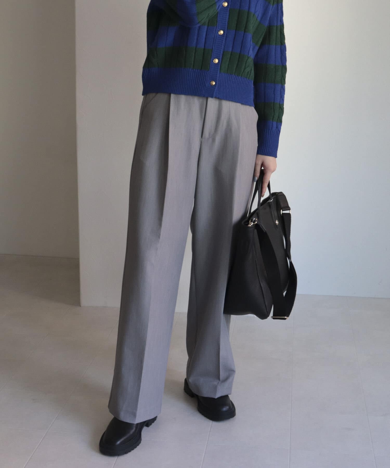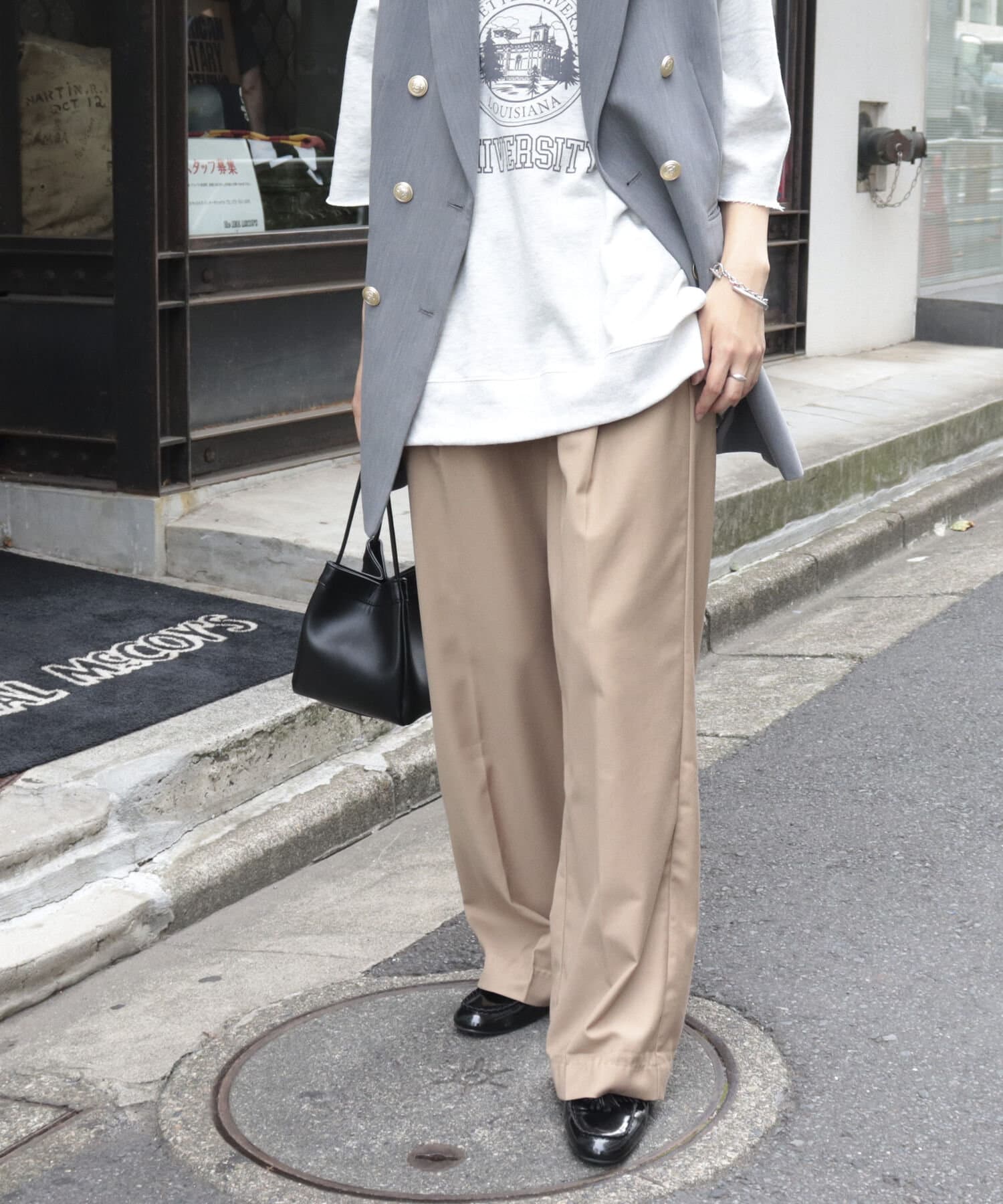 トレンド感のあるシンプルコーデに!タック入りプレスパンツ