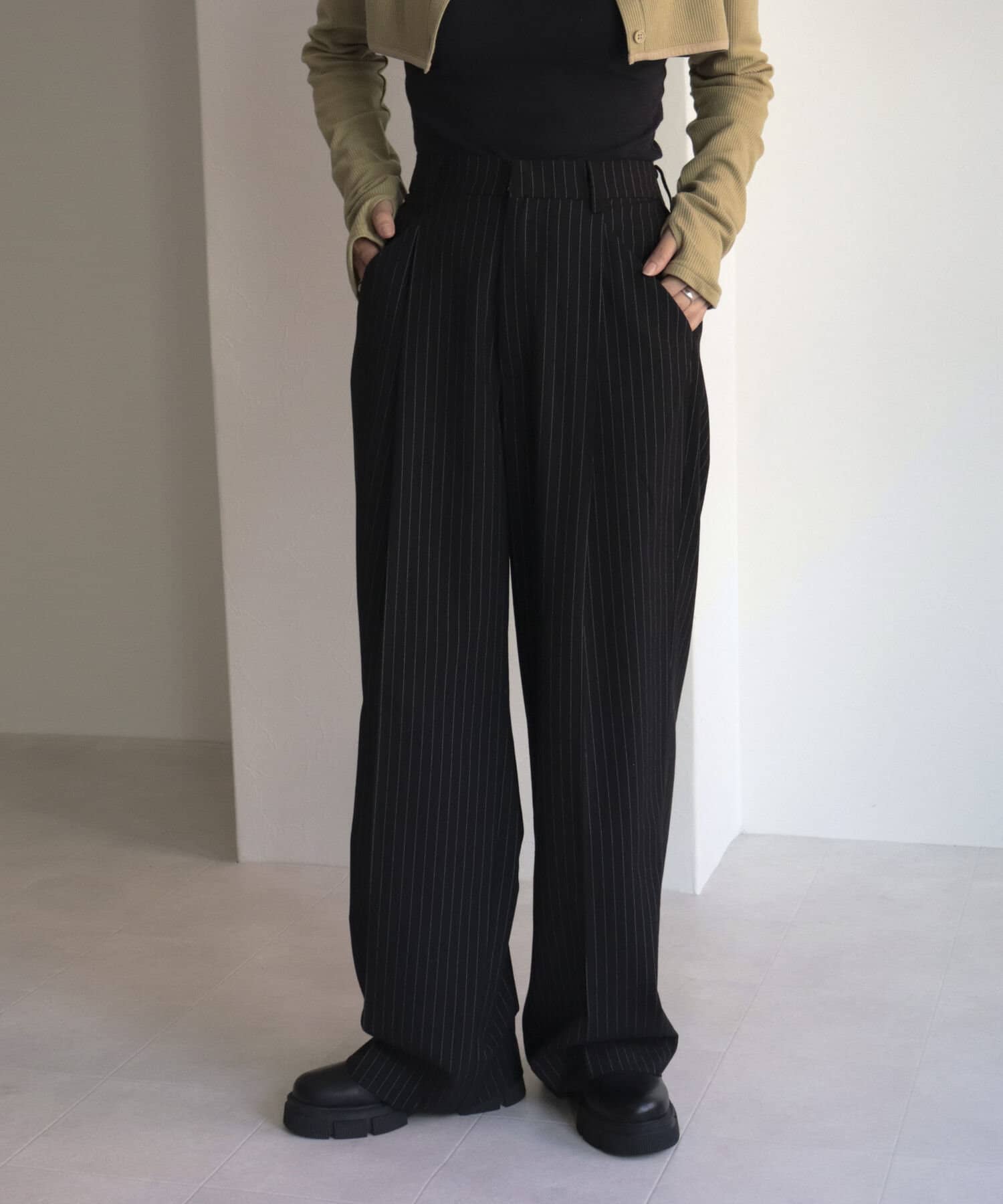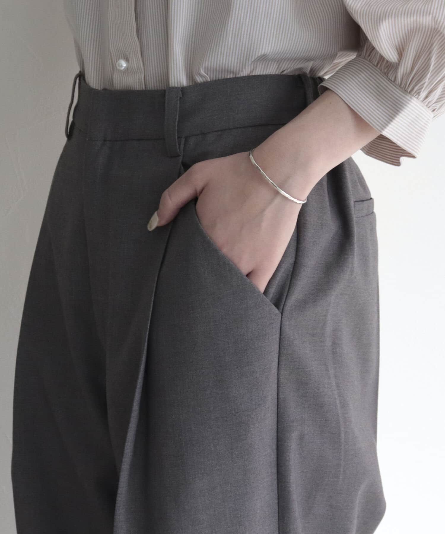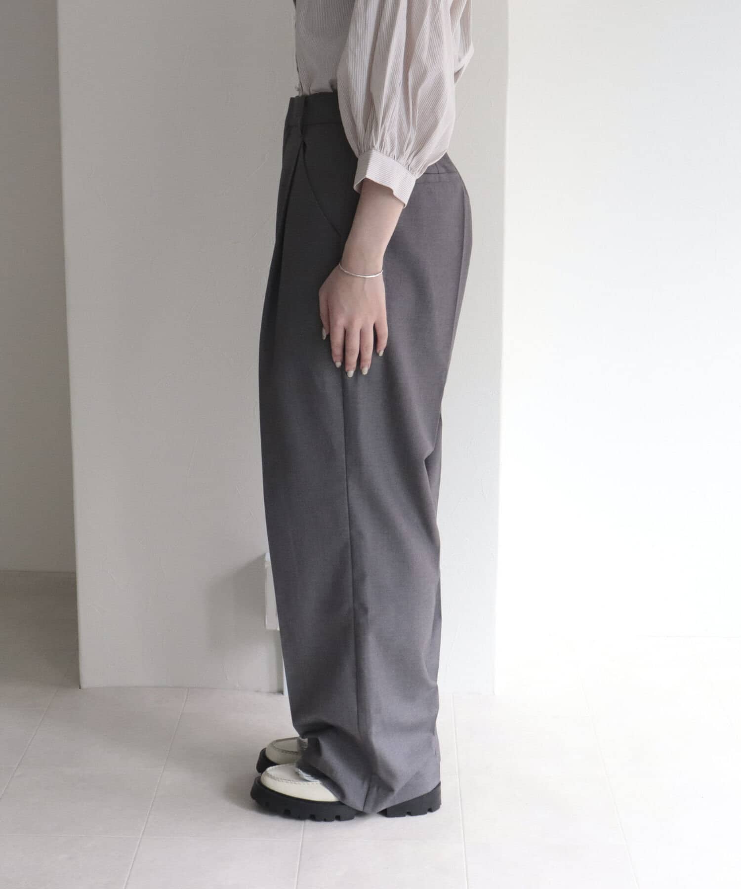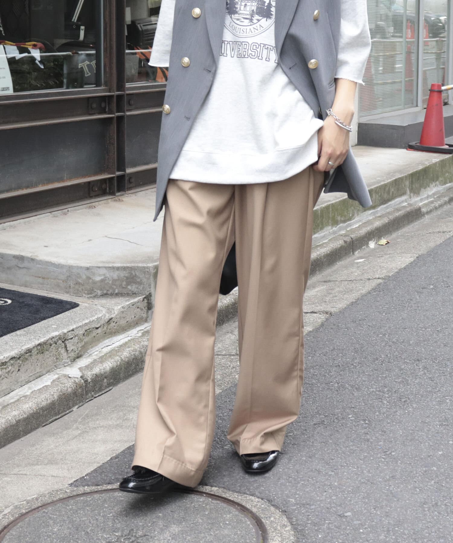 トレンド感のあるシンプルコーデに!タック入りプレスパンツ
