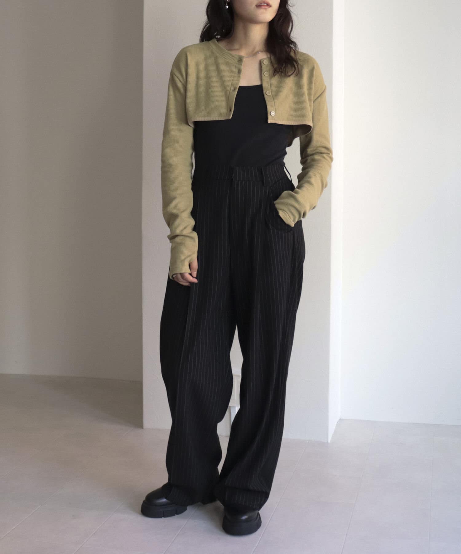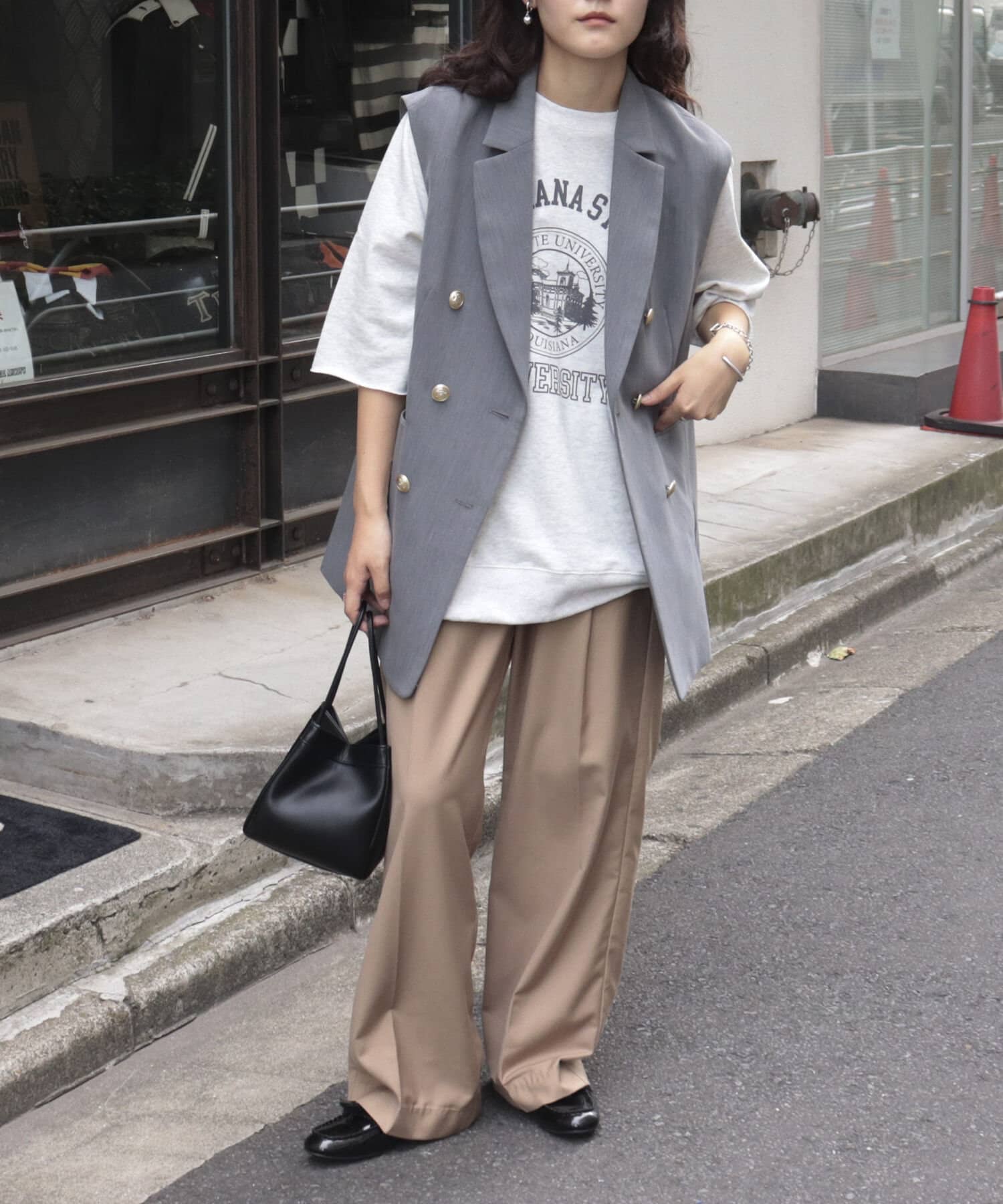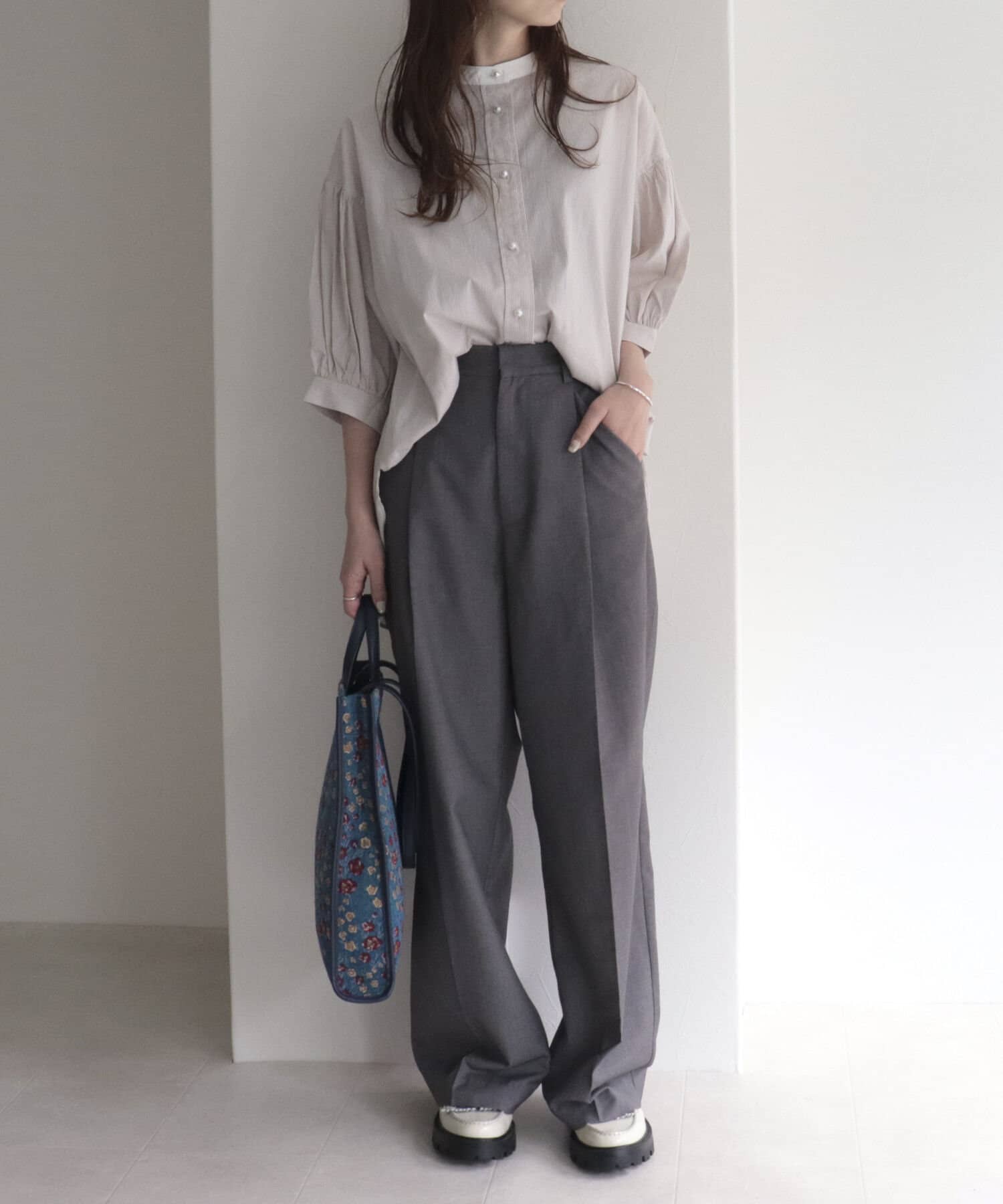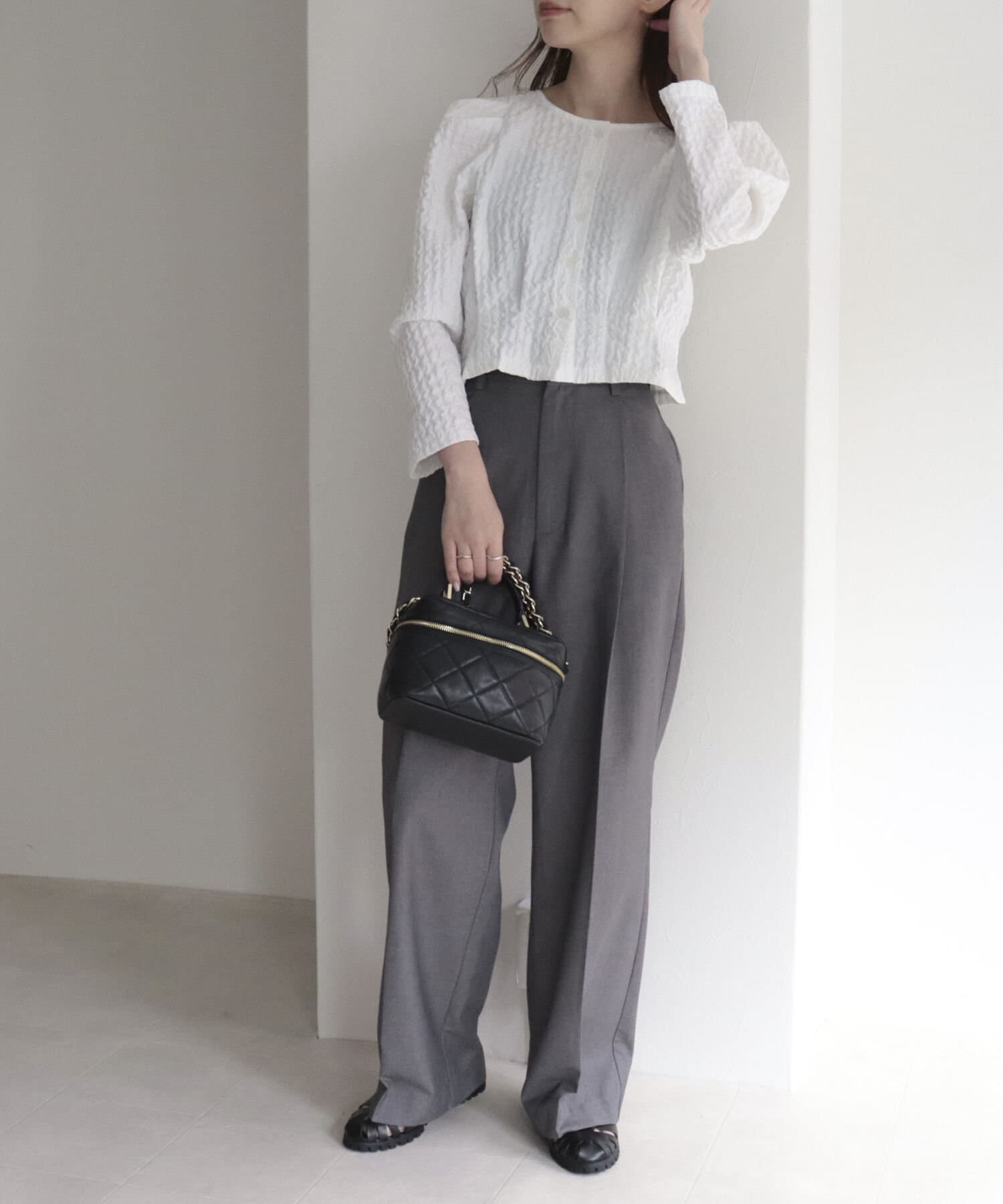 トレンド感のあるシンプルコーデに!タック入りプレスパンツ