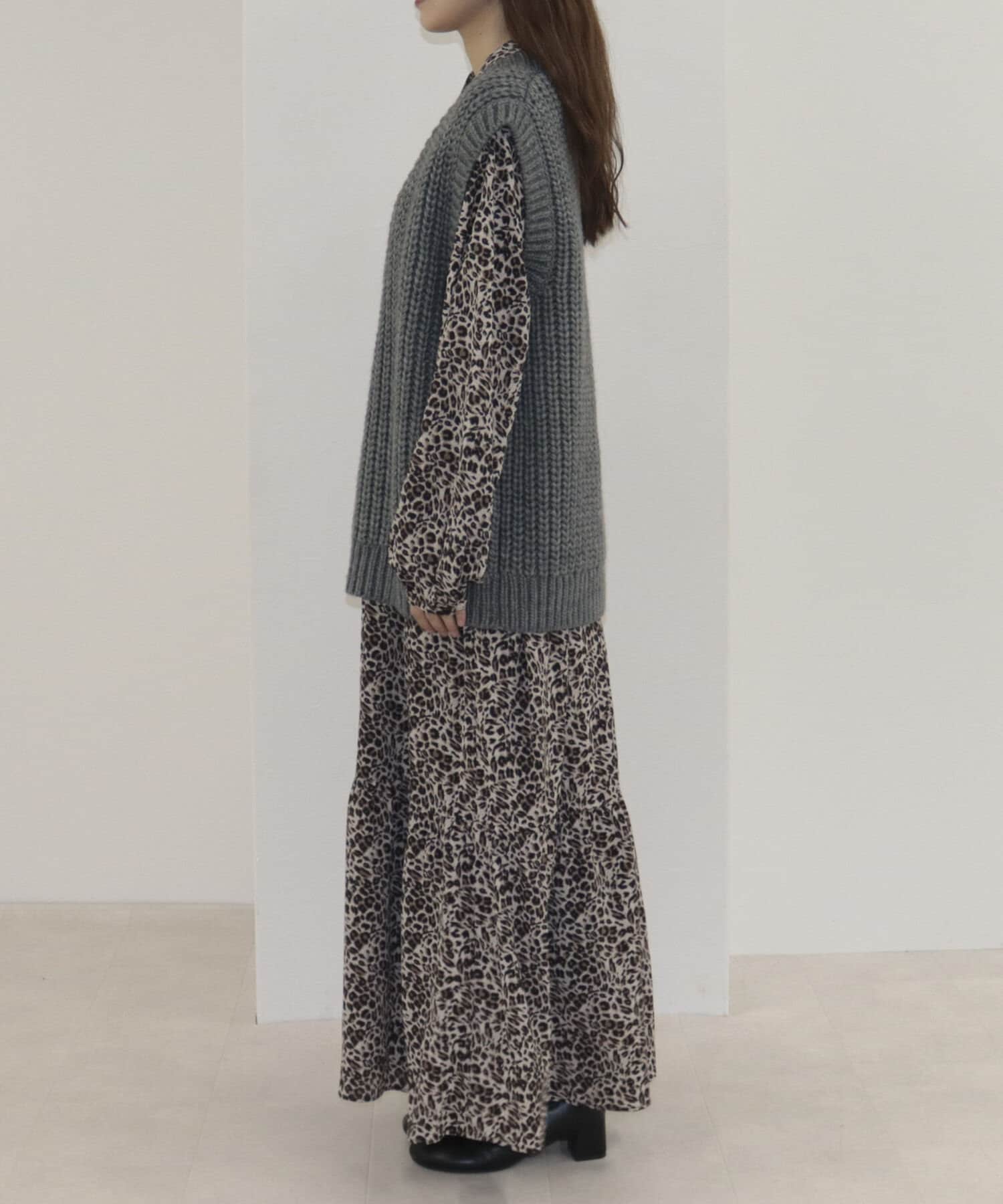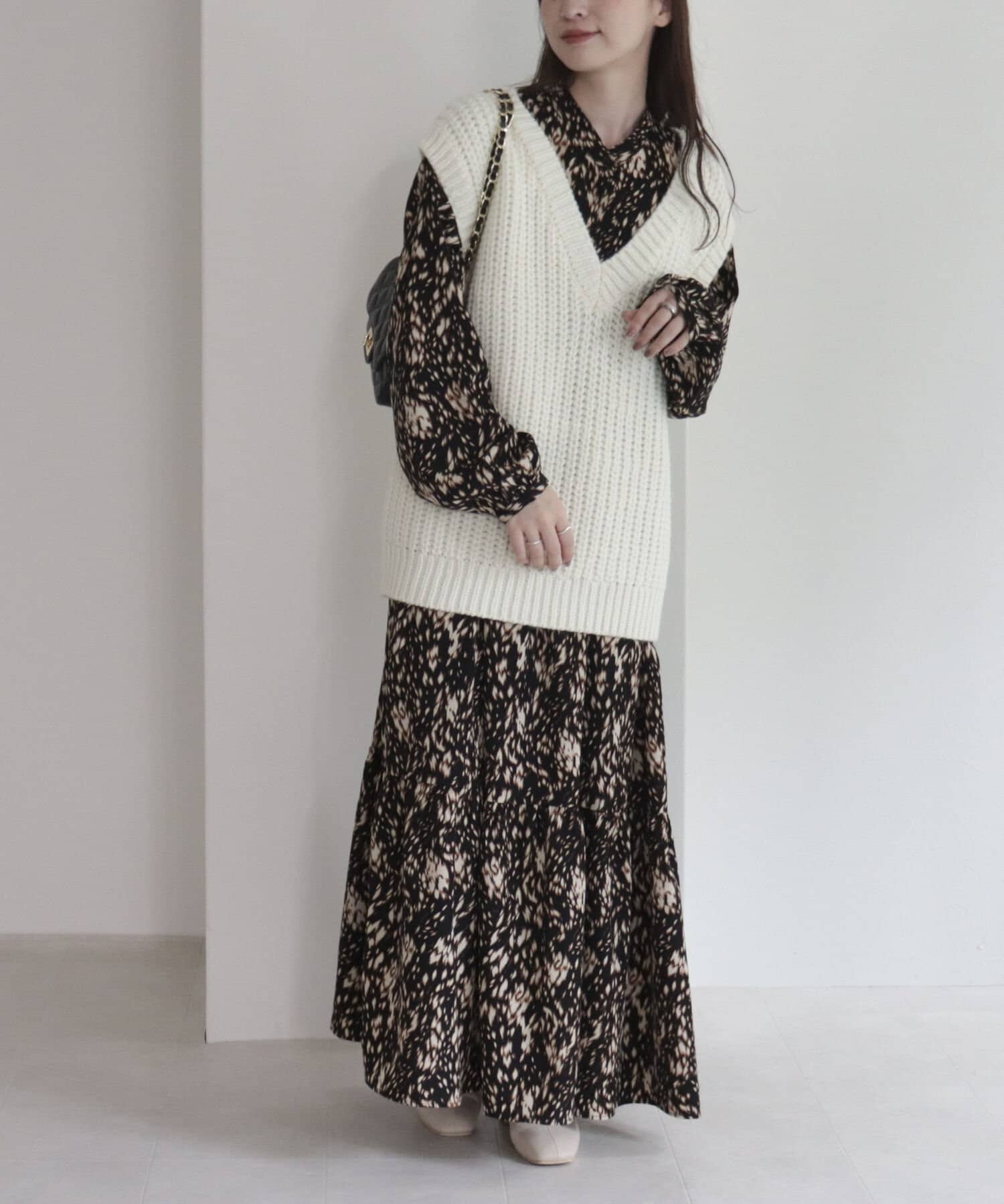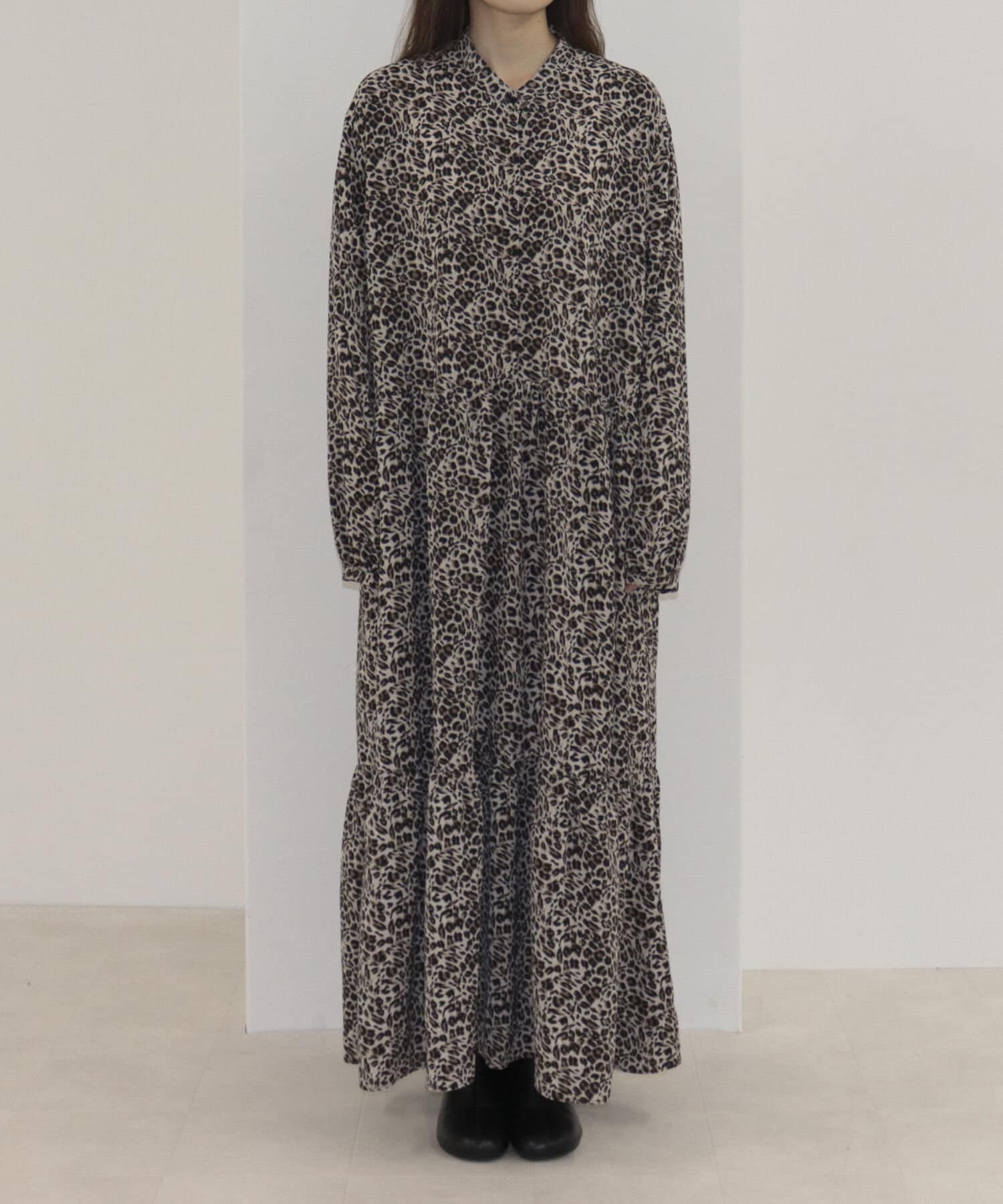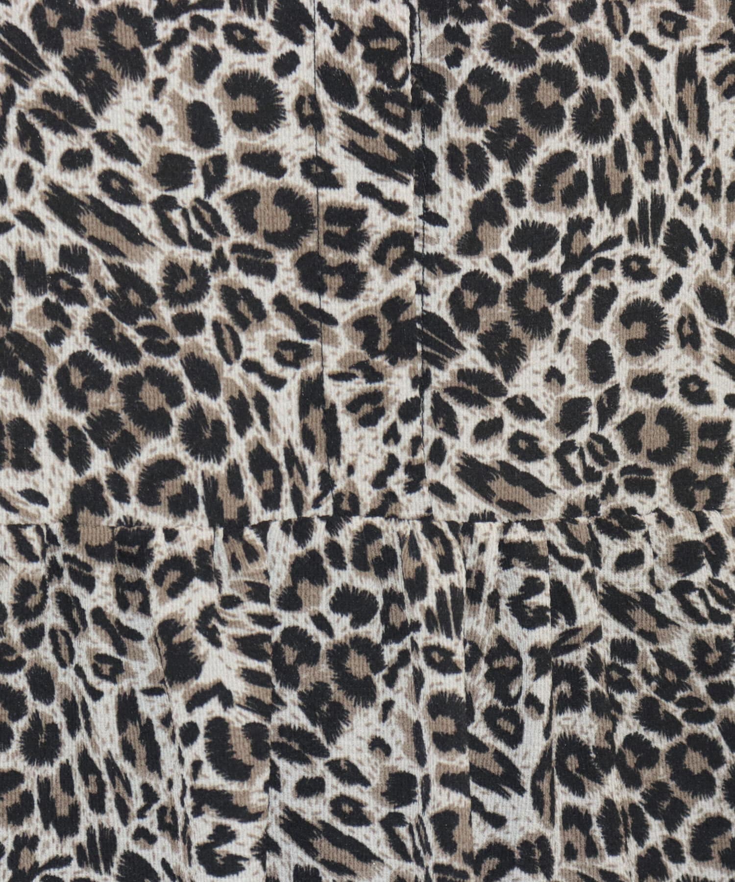 ・ワンピースはサラッとした素材で落ち着いた色味のレオパードプリント。