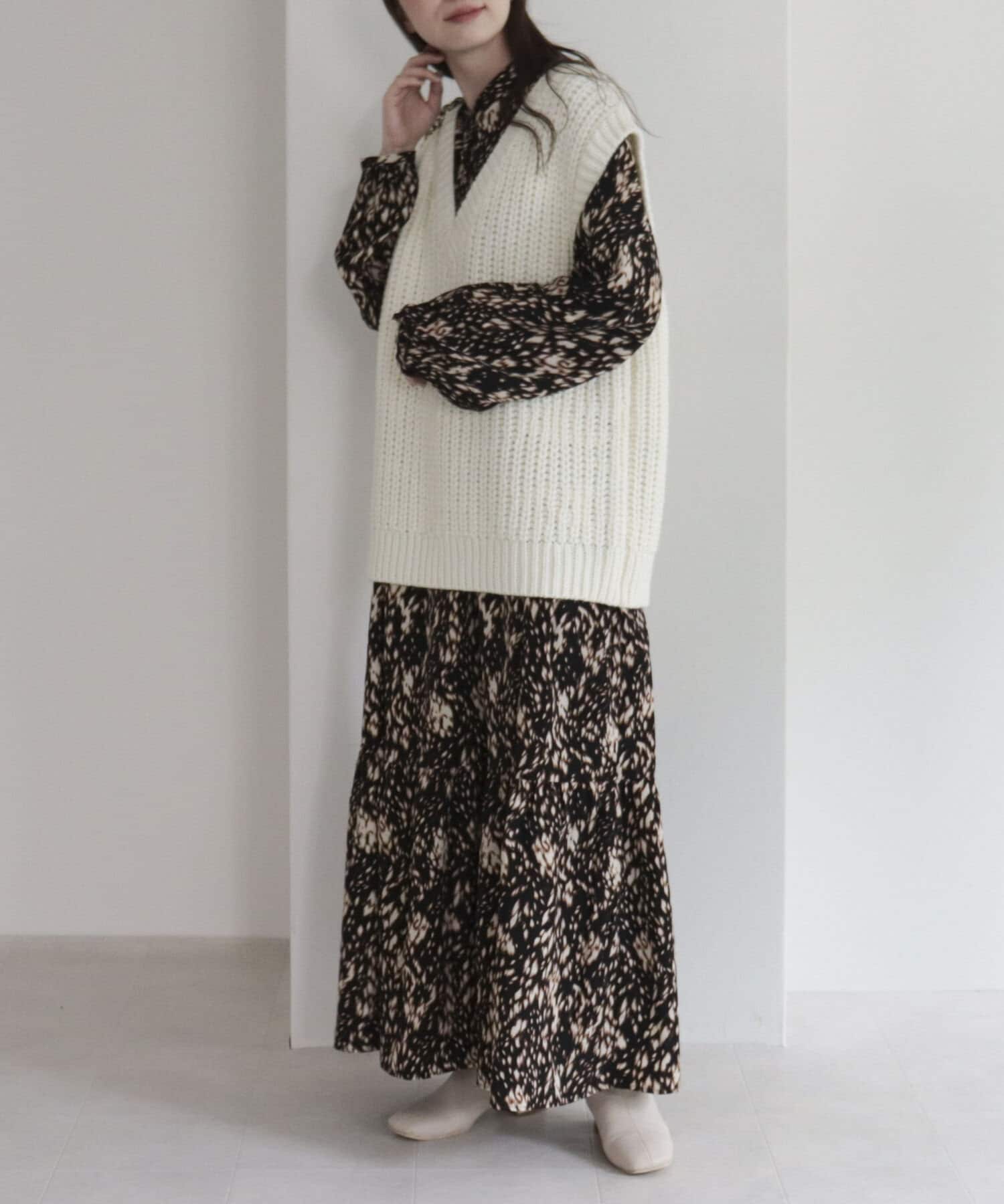・別々で着用頂けるのでベストはブラウスやロンTと、ワンピースはカーディガンやショート丈のスウェット合わせなど、気温によって着回しができる万能アイテム!
