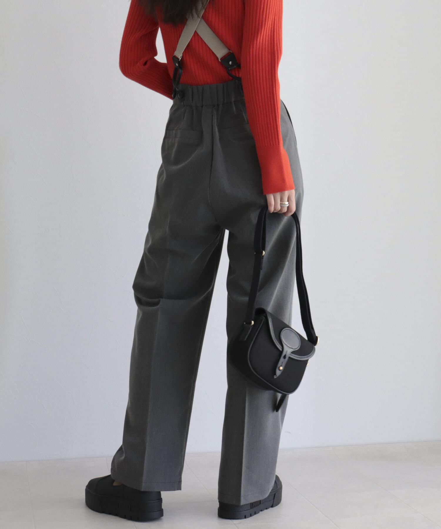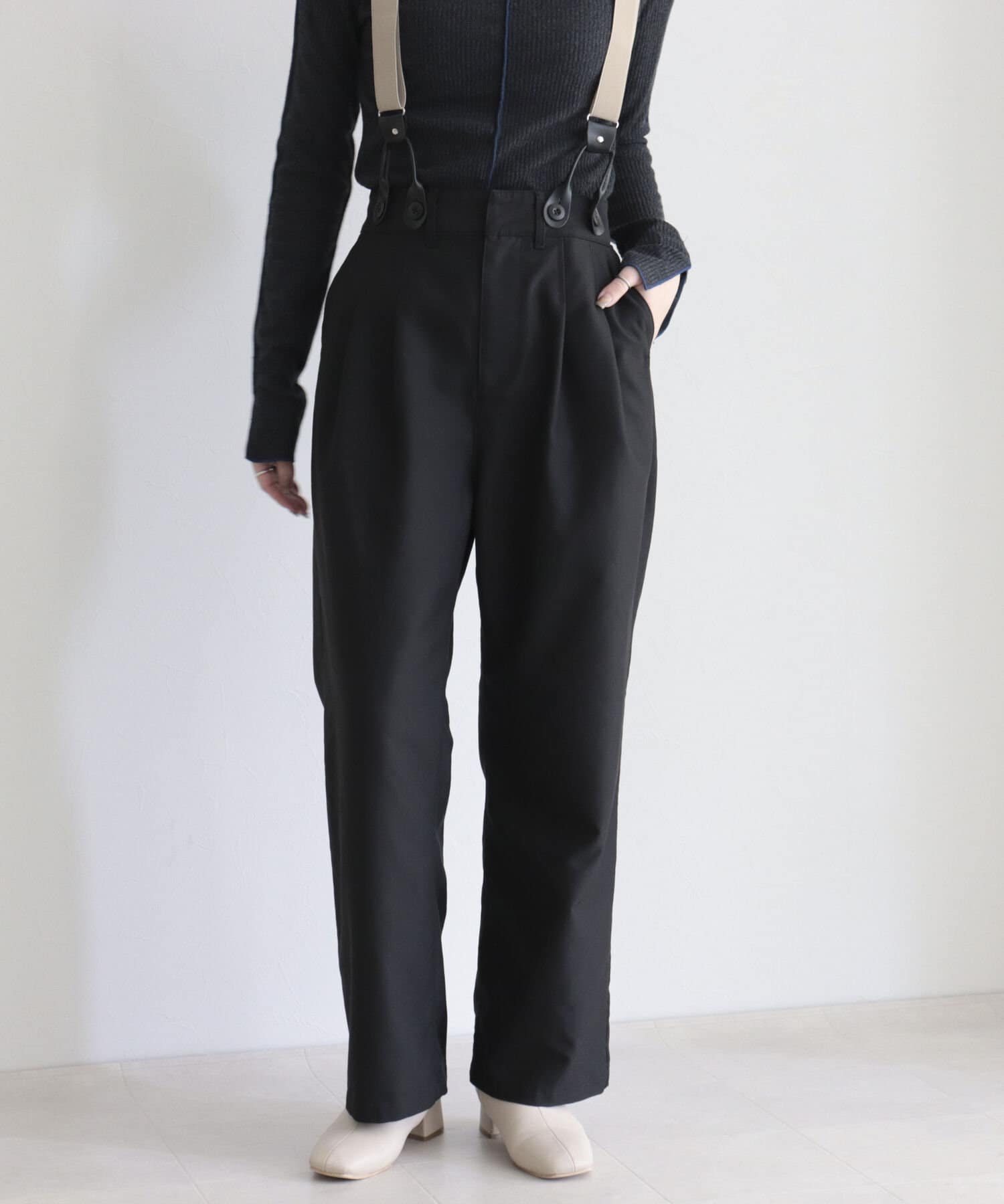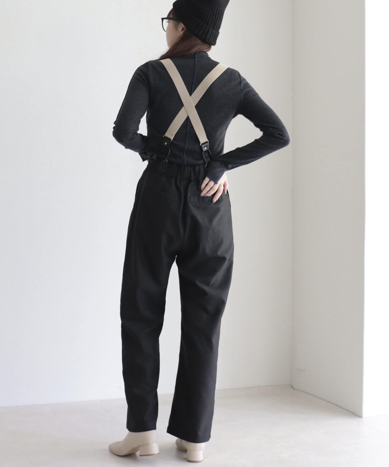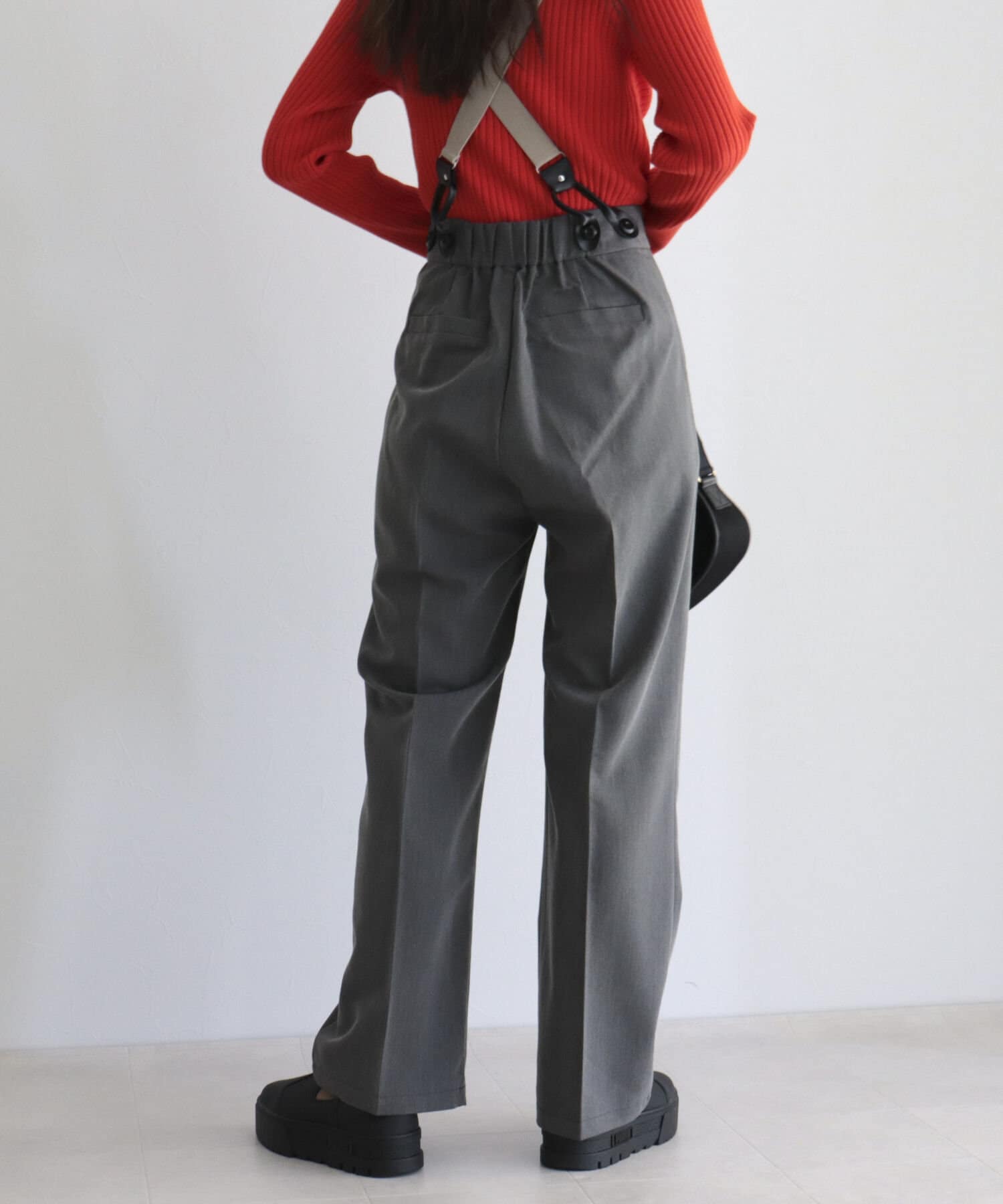 ・サスペンダーは取り外し可能なので、シンプルパンツとして綺麗めにも◎