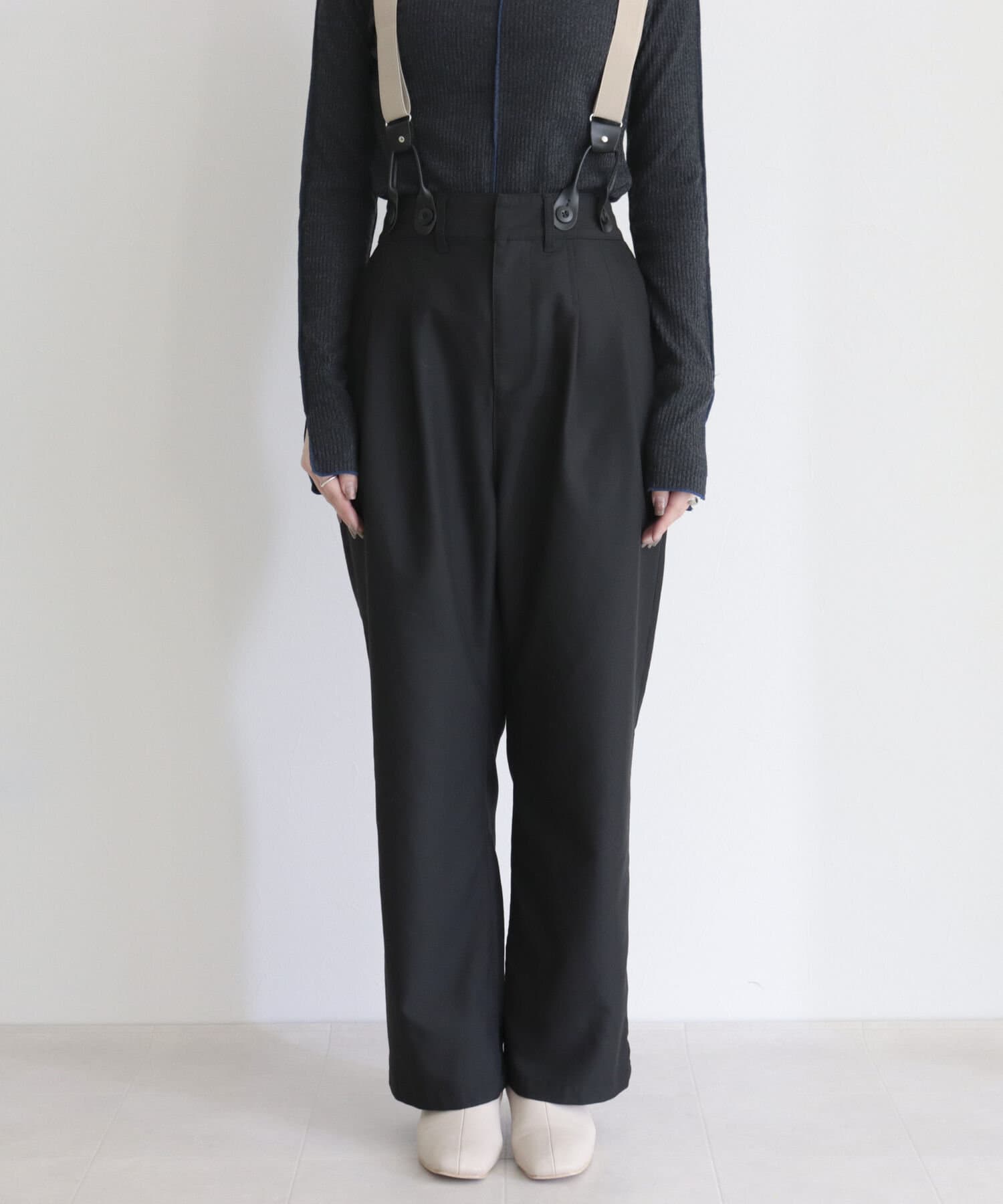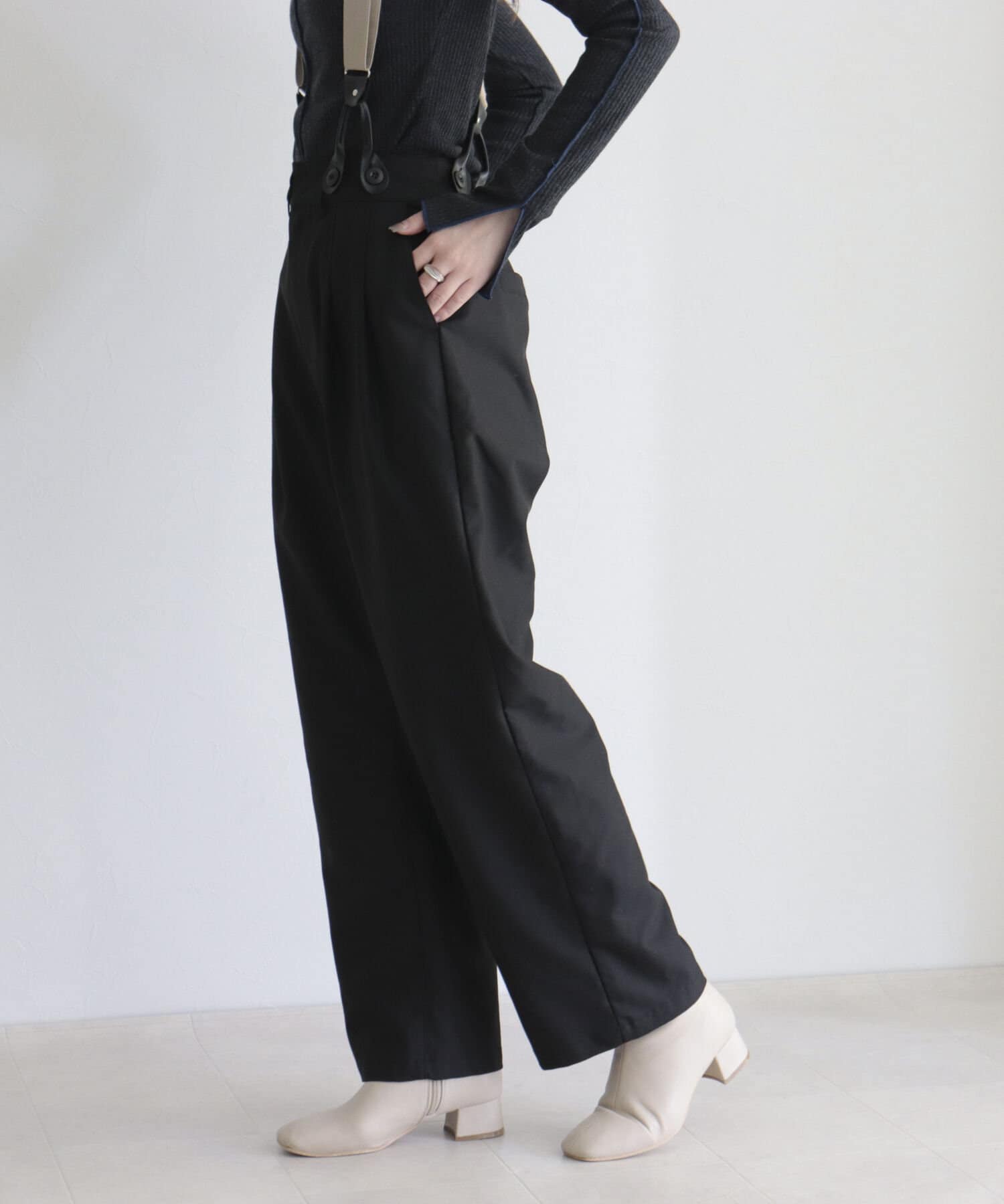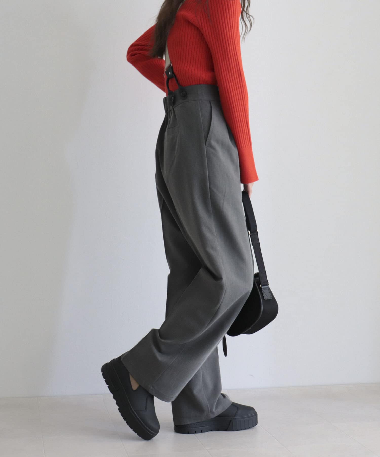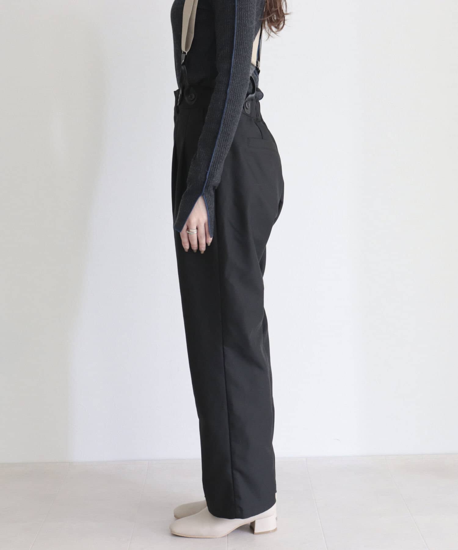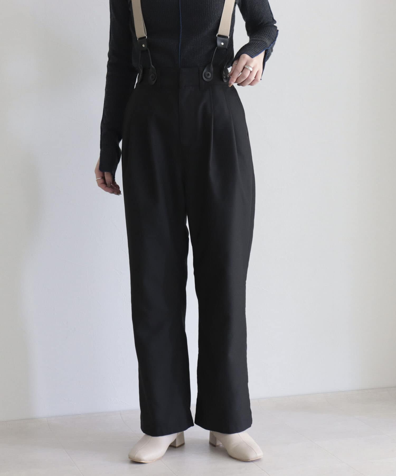 ・サスペンダーは取り外し可能なので、シンプルパンツとして綺麗めにも◎