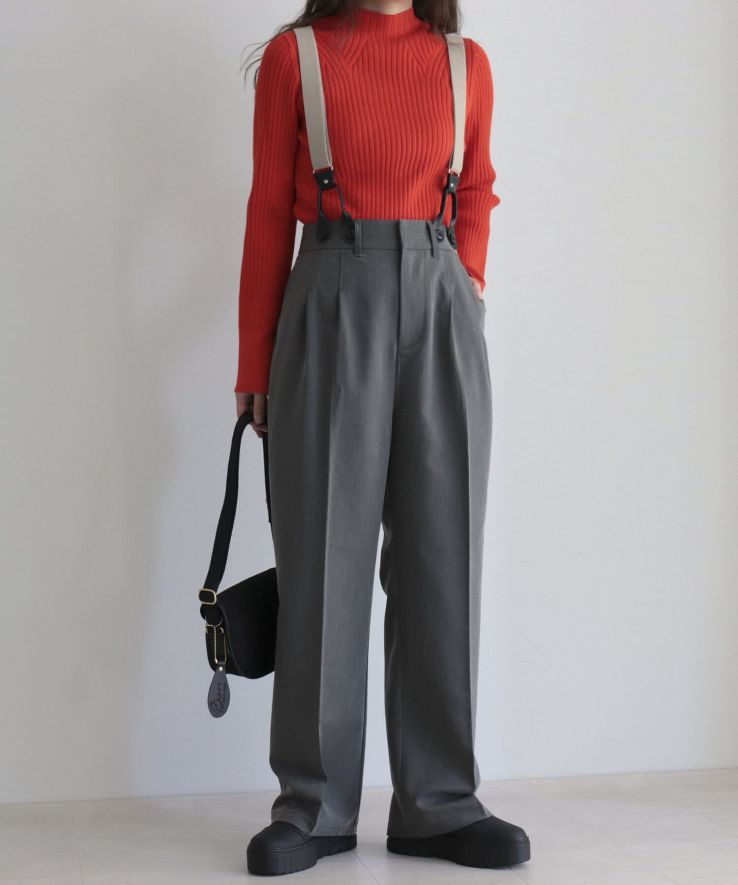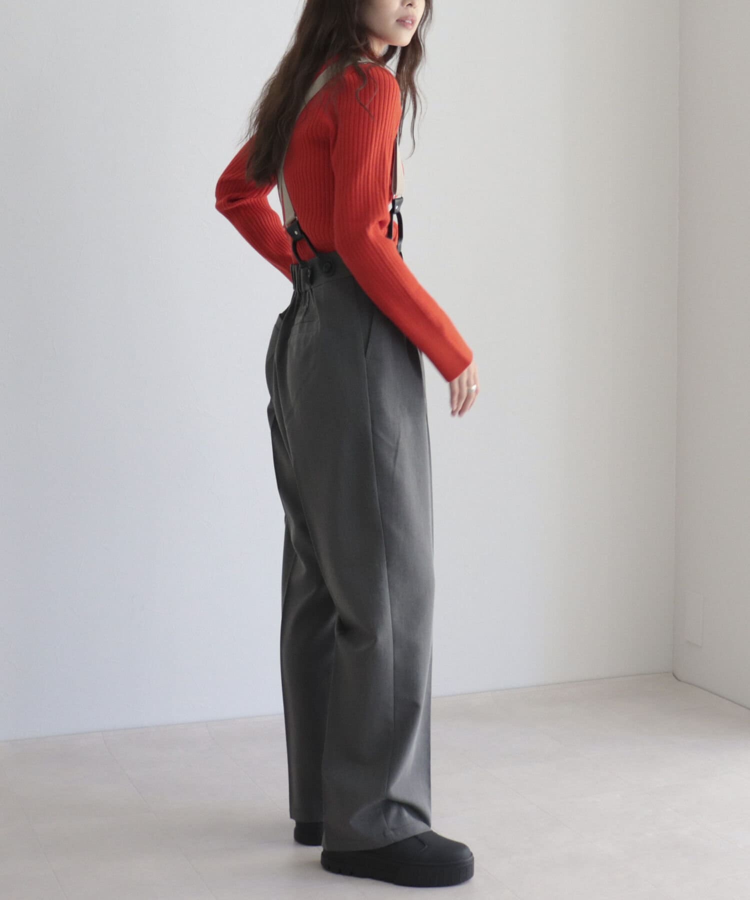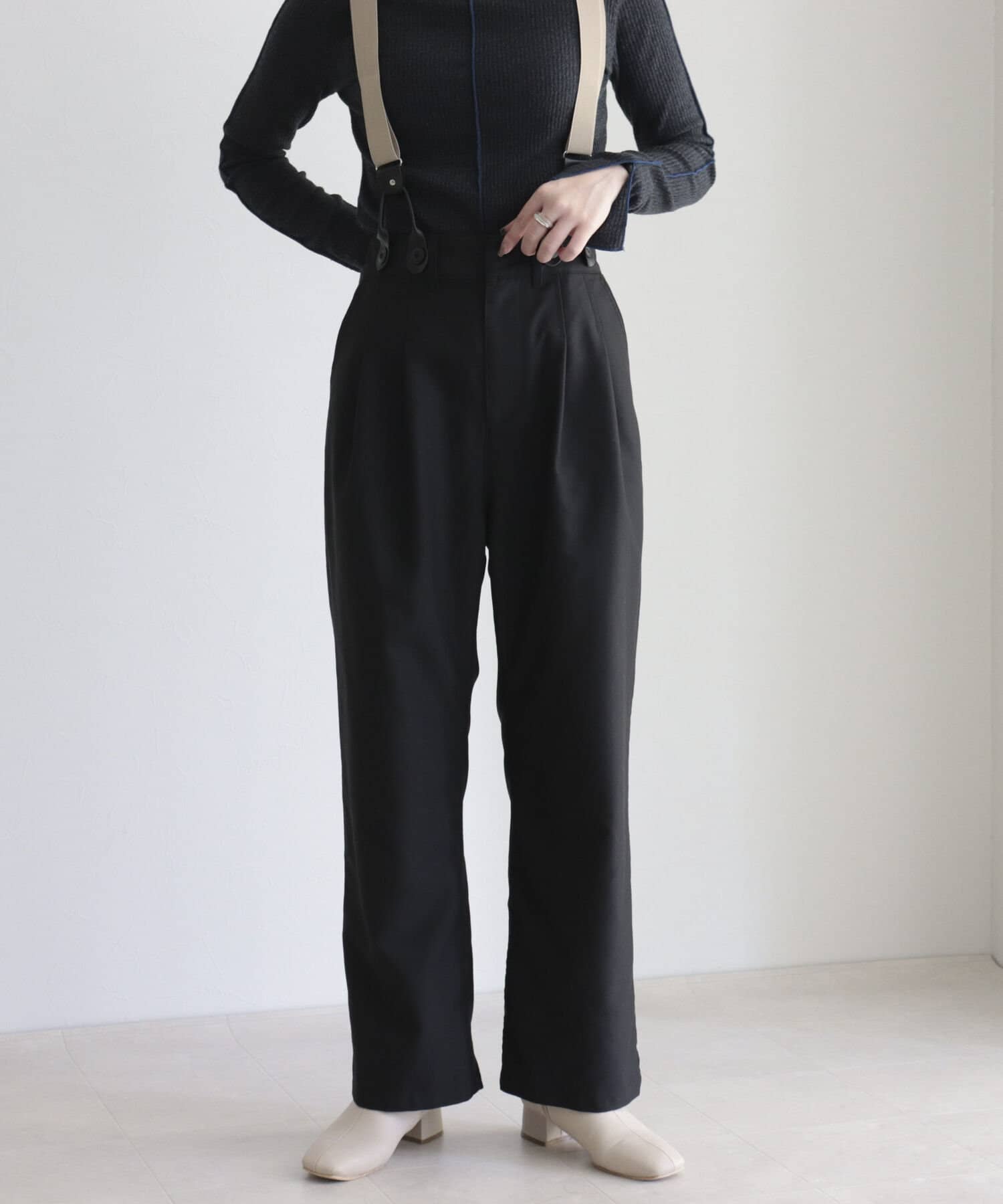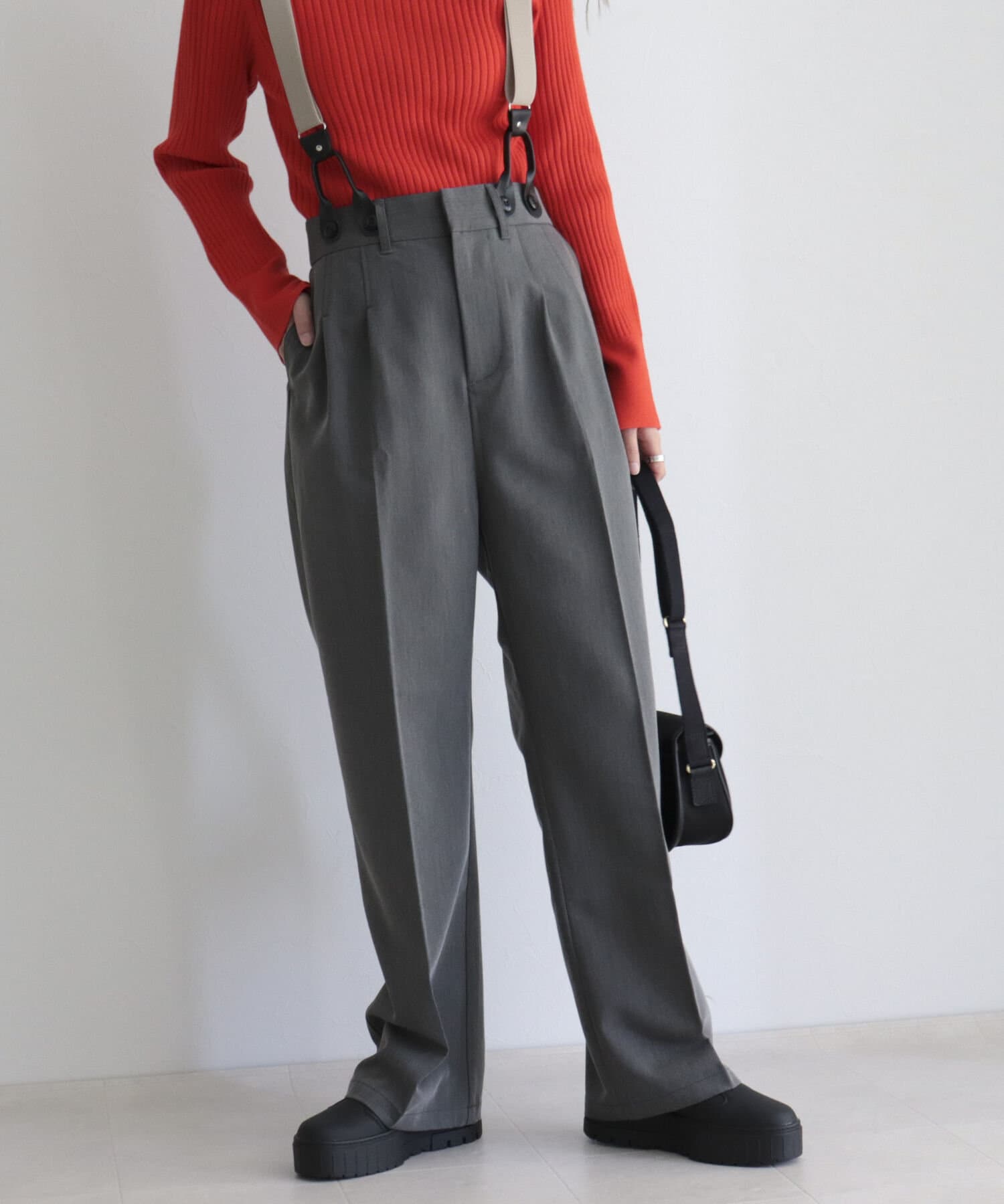 ・サスペンダーは取り外し可能なので、シンプルパンツとして綺麗めにも◎