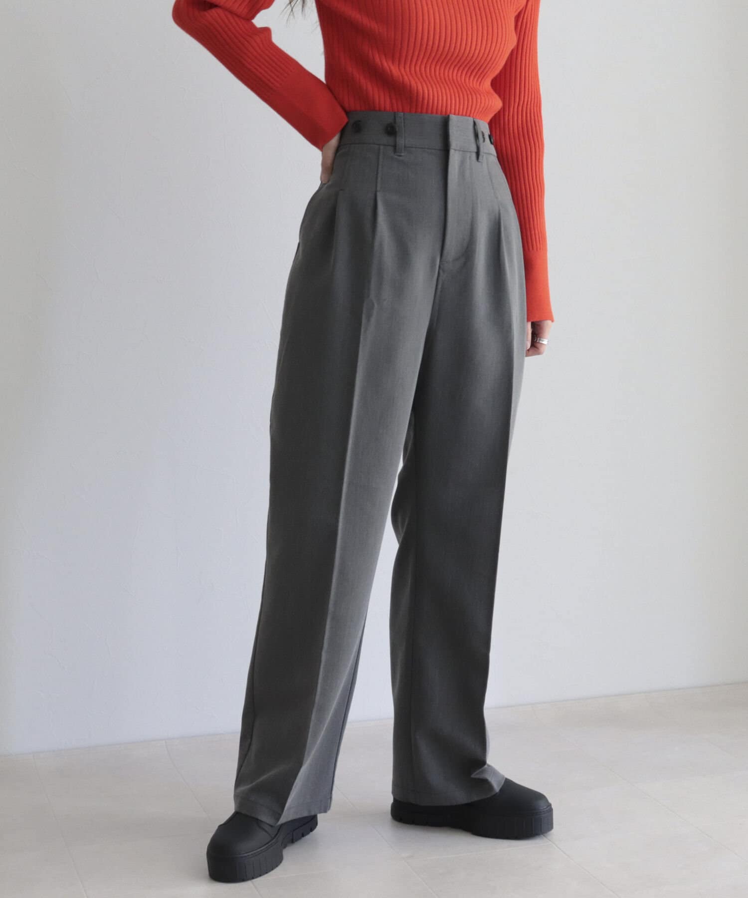 ・ハイウエストのシルエットでカジュアルにも綺麗めにもスタイリングしやすい1品
