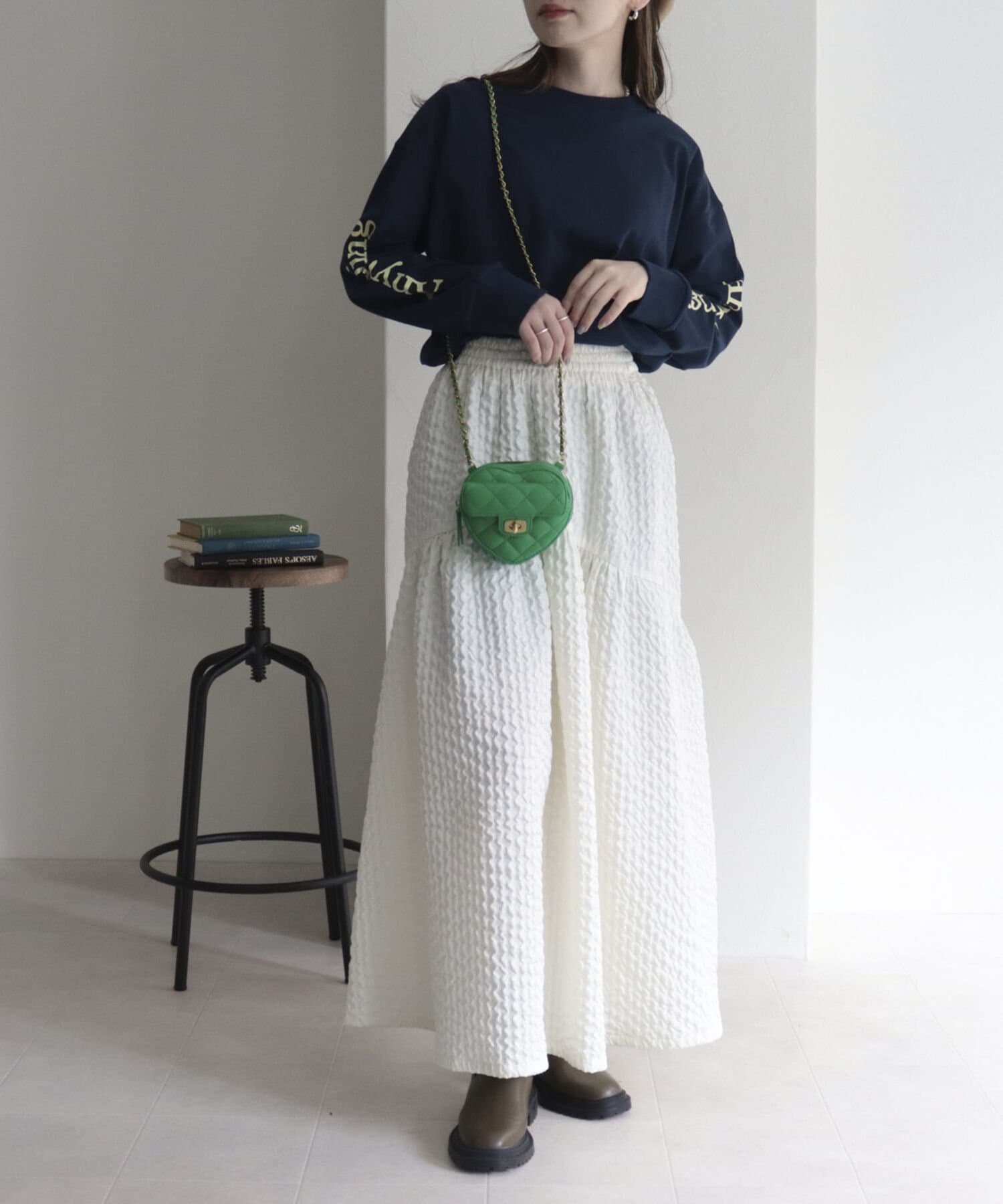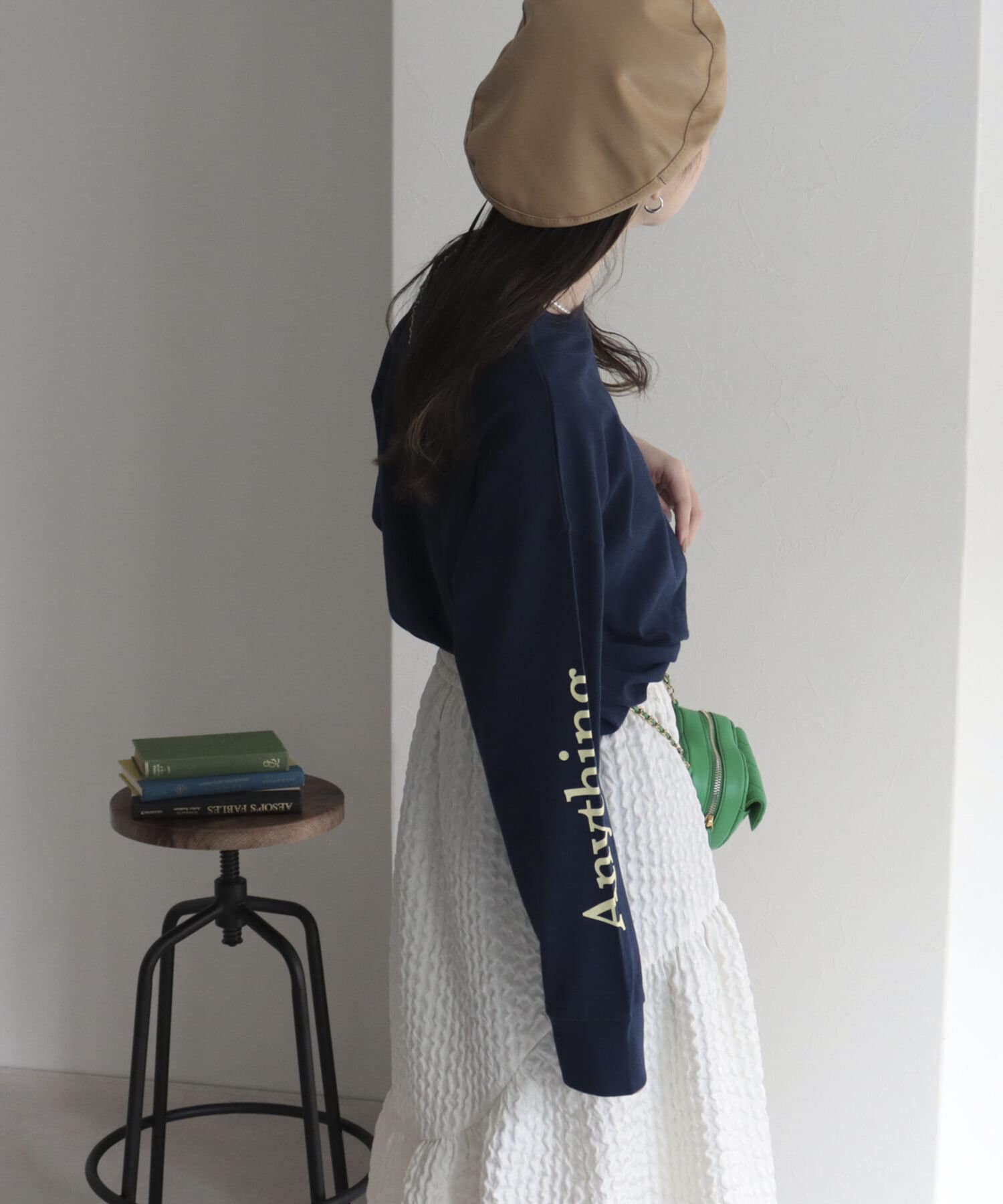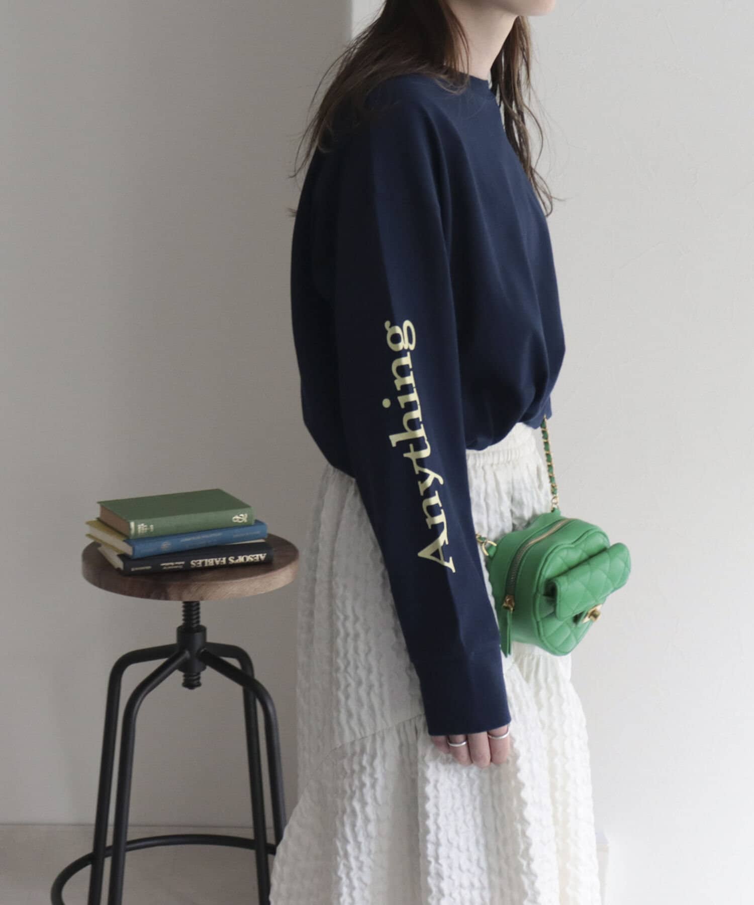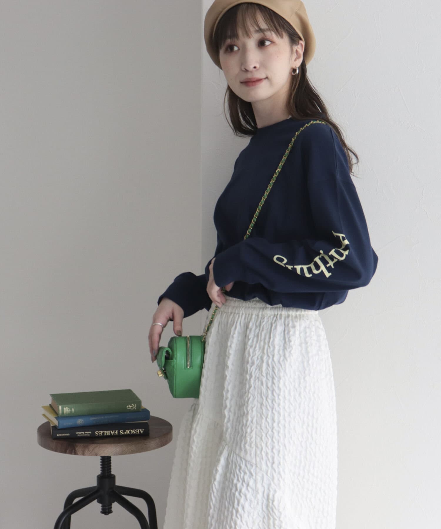 甘めのスカートにも合わせやすいよう、主張しすぎないロゴで仕上げました。