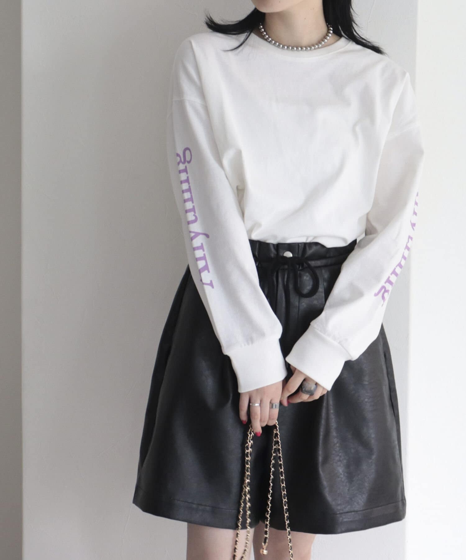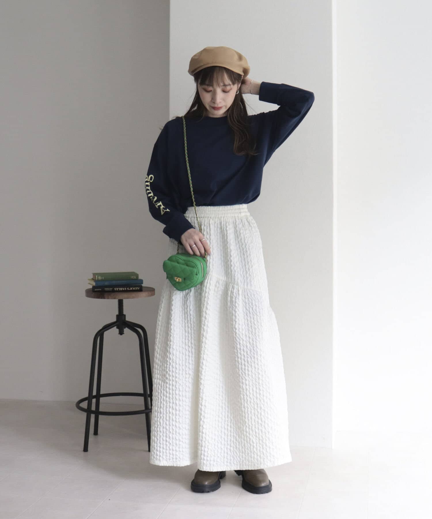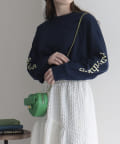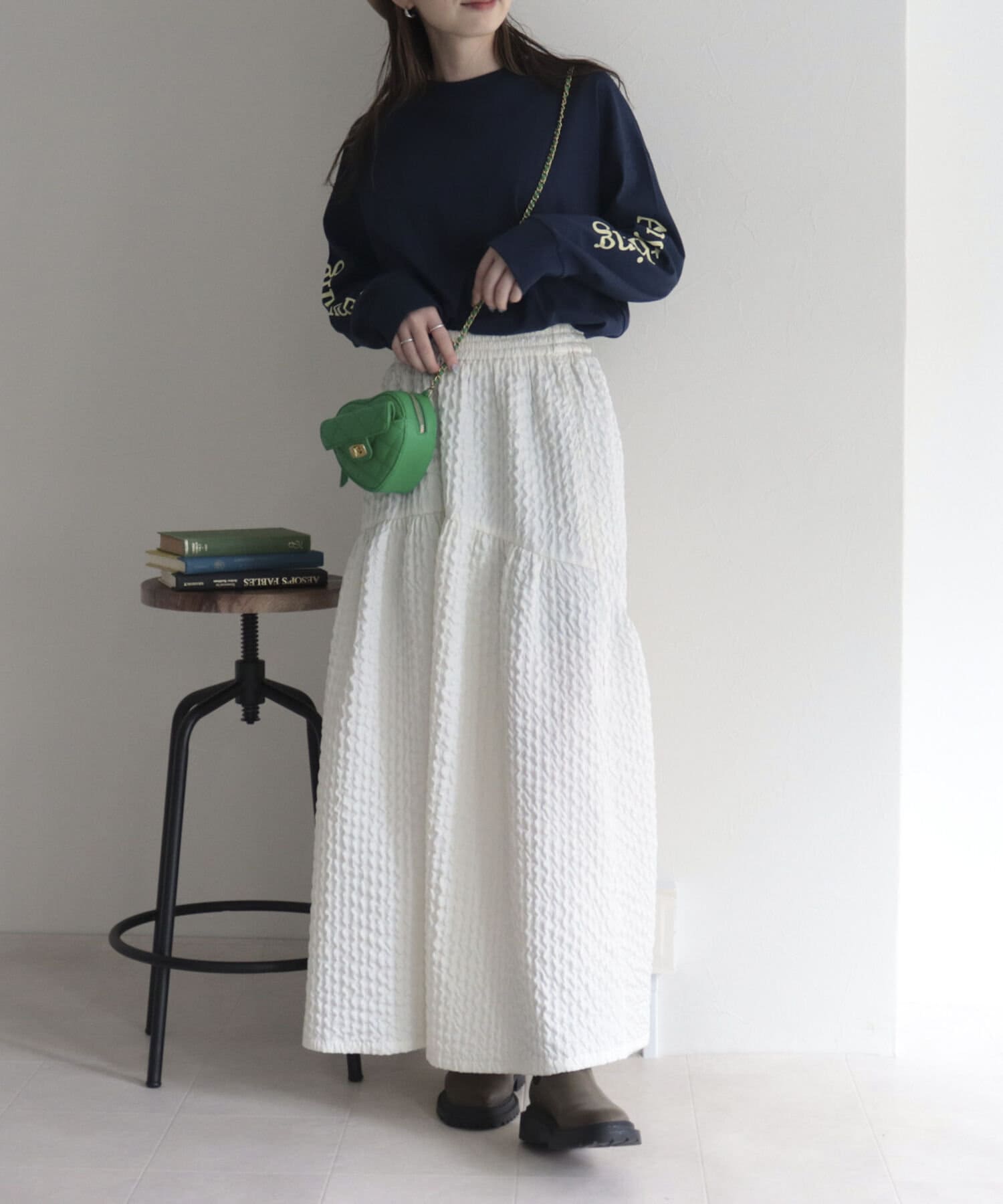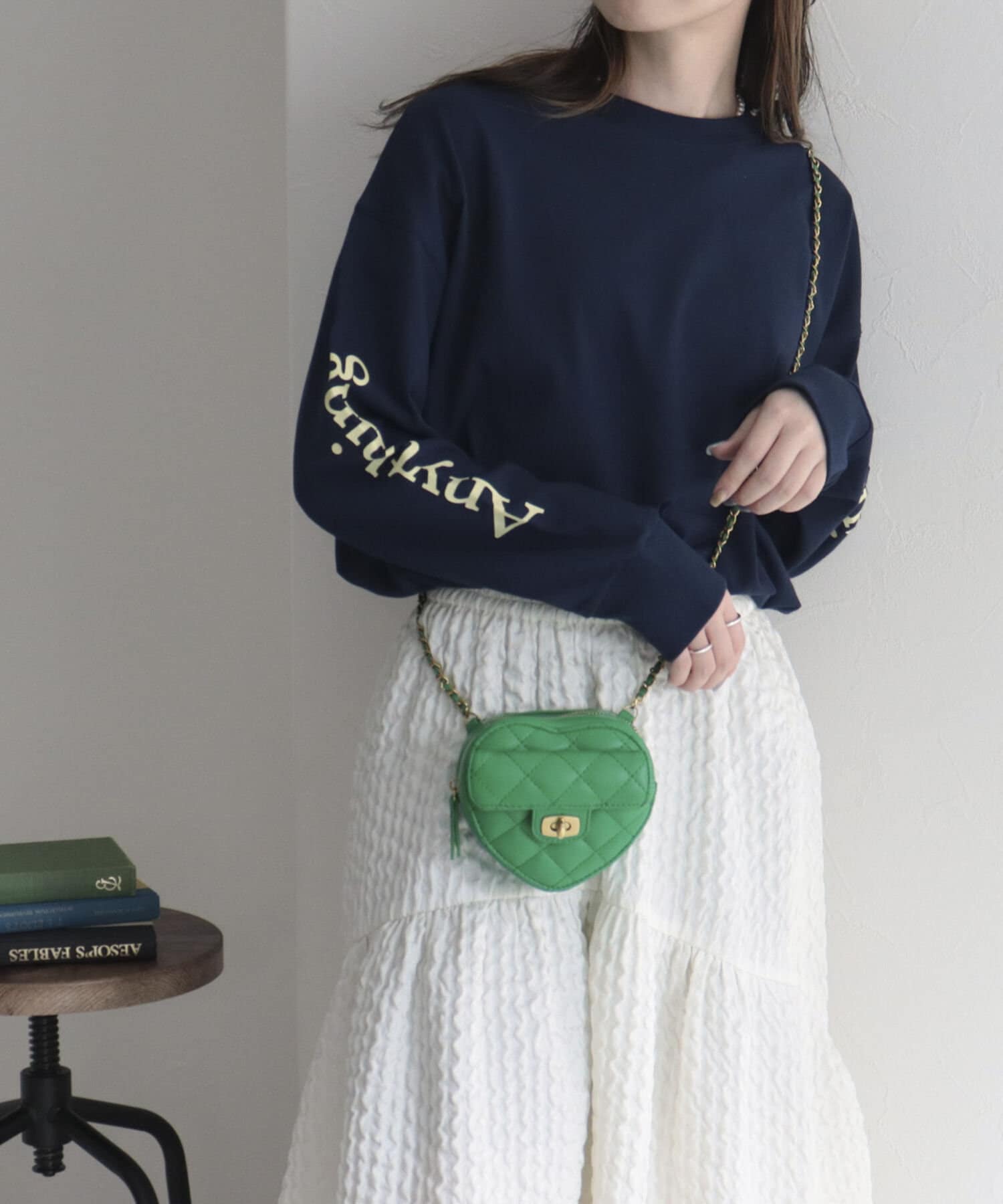 甘めのスカートにも合わせやすいよう、主張しすぎないロゴで仕上げました。