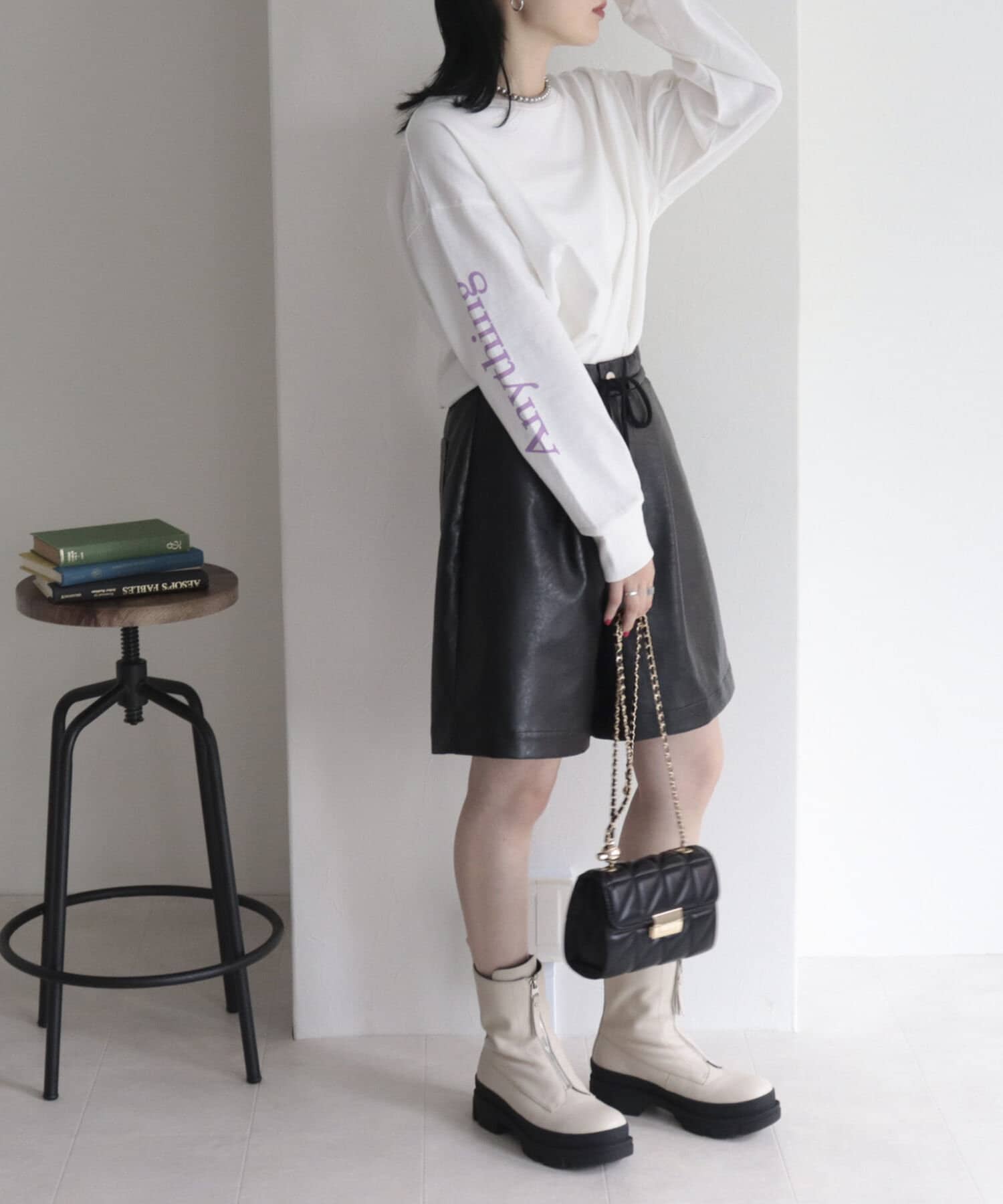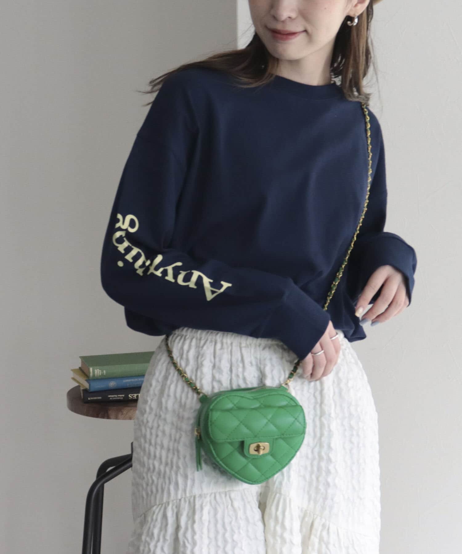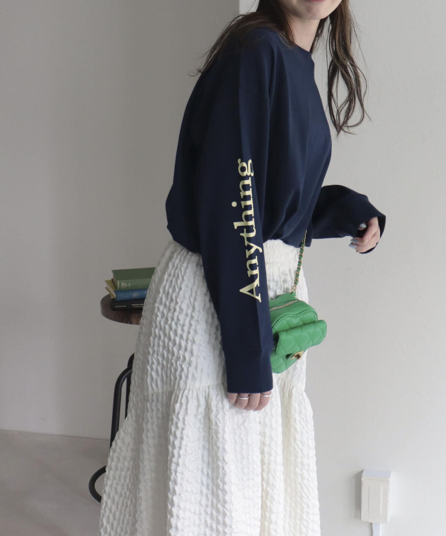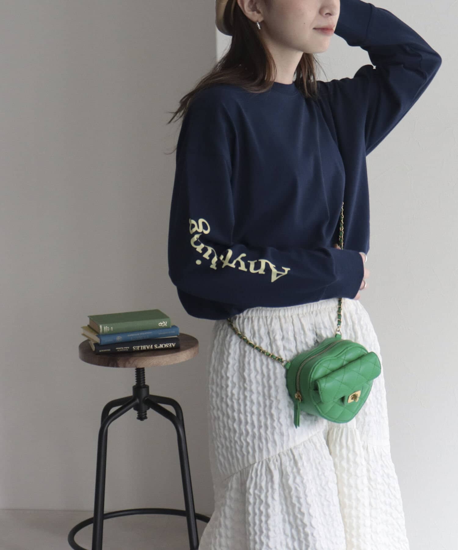 甘めのスカートにも合わせやすいよう、主張しすぎないロゴで仕上げました。