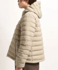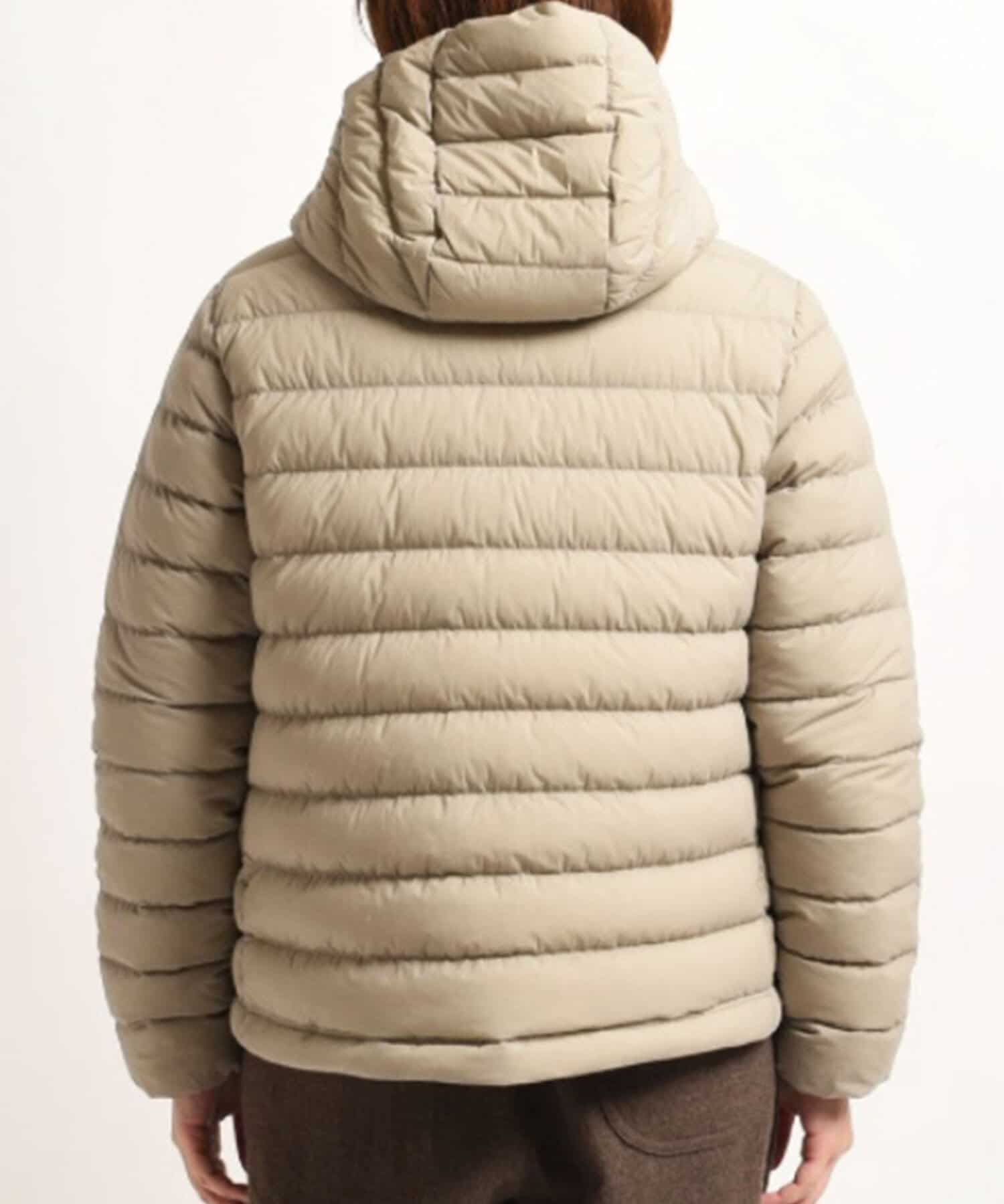 ・緩やかなAラインシルエットのダウンフードジャケット