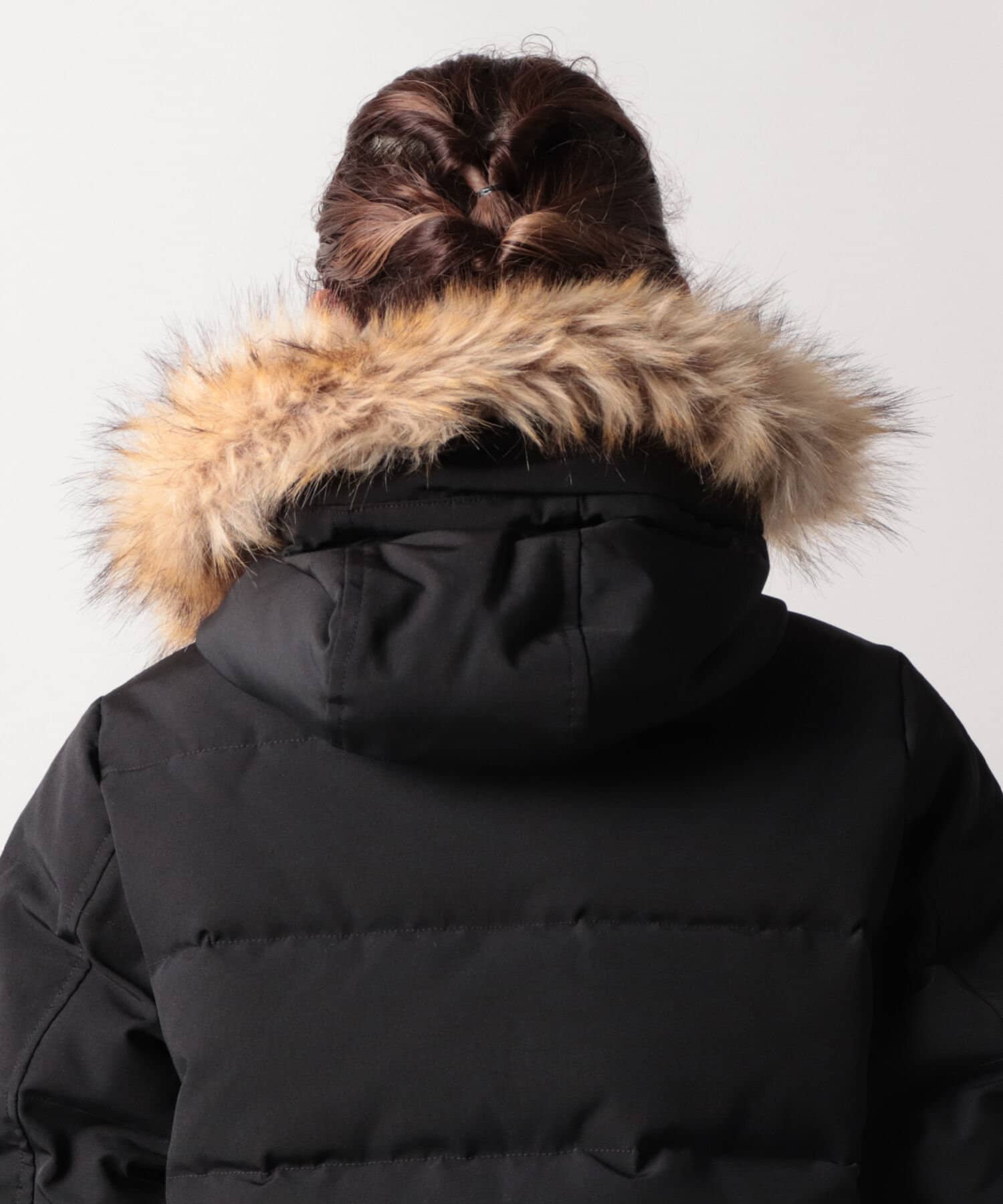 ・裾の内側のドローコードでシルエット調節可能。ファー取り外し可能。