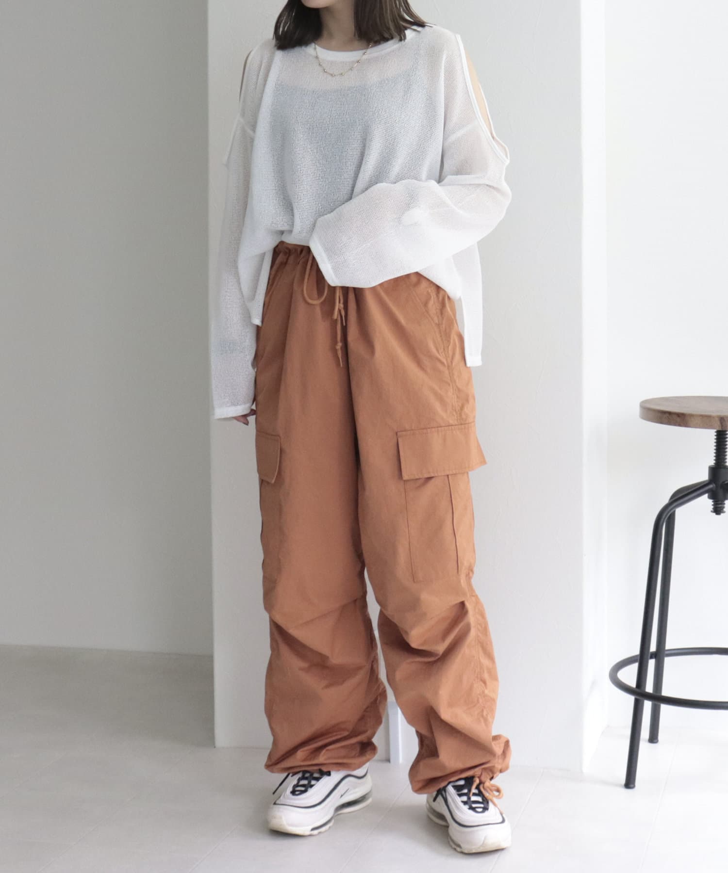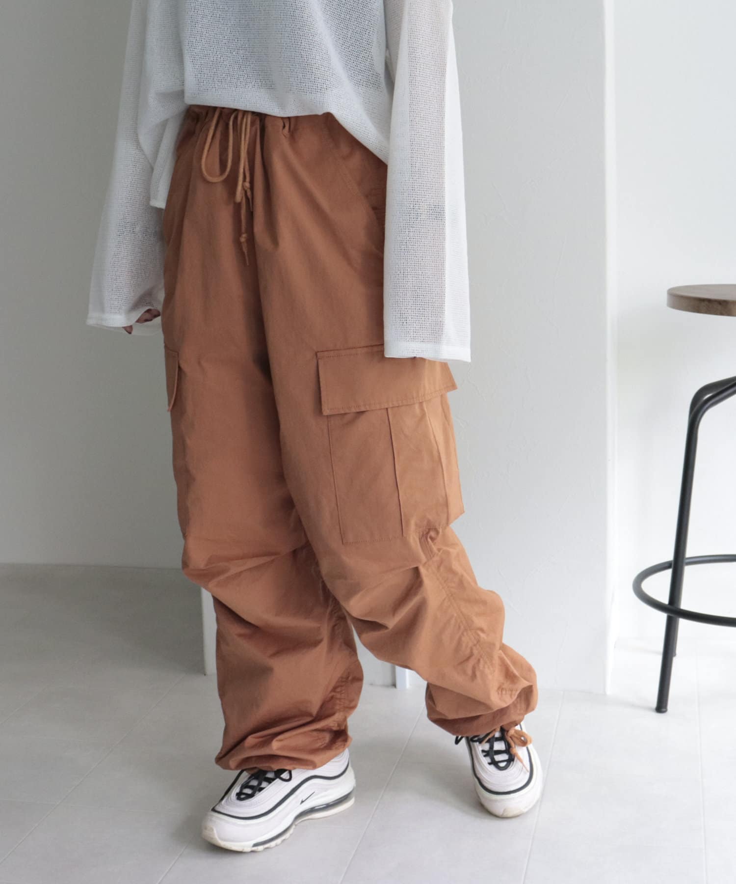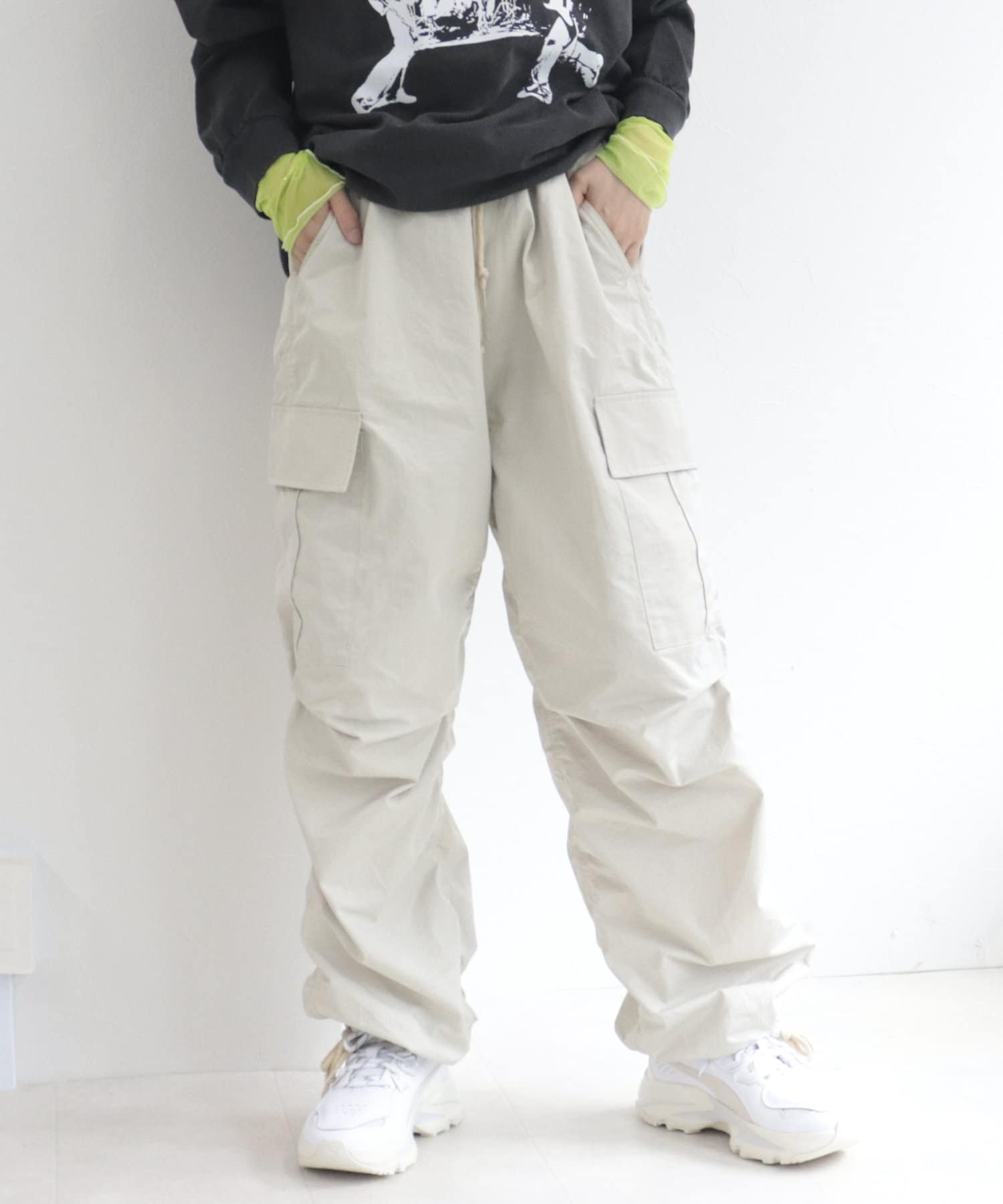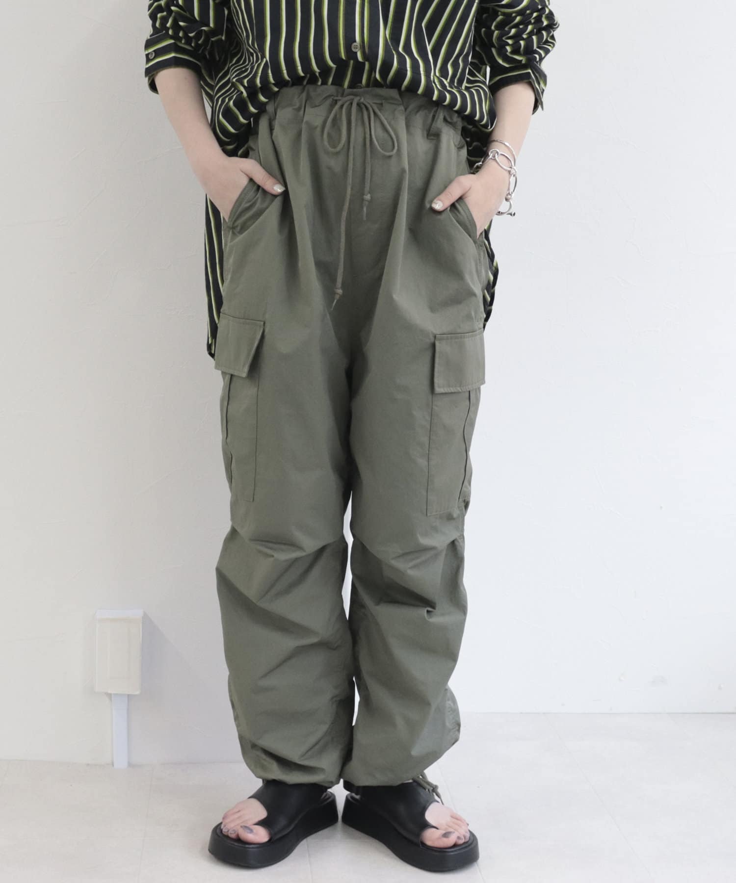 ワイドシルエットが特徴的なミリタリーバルーンパンツ