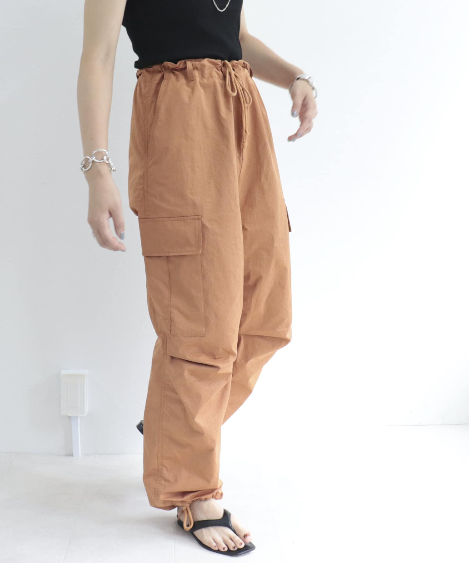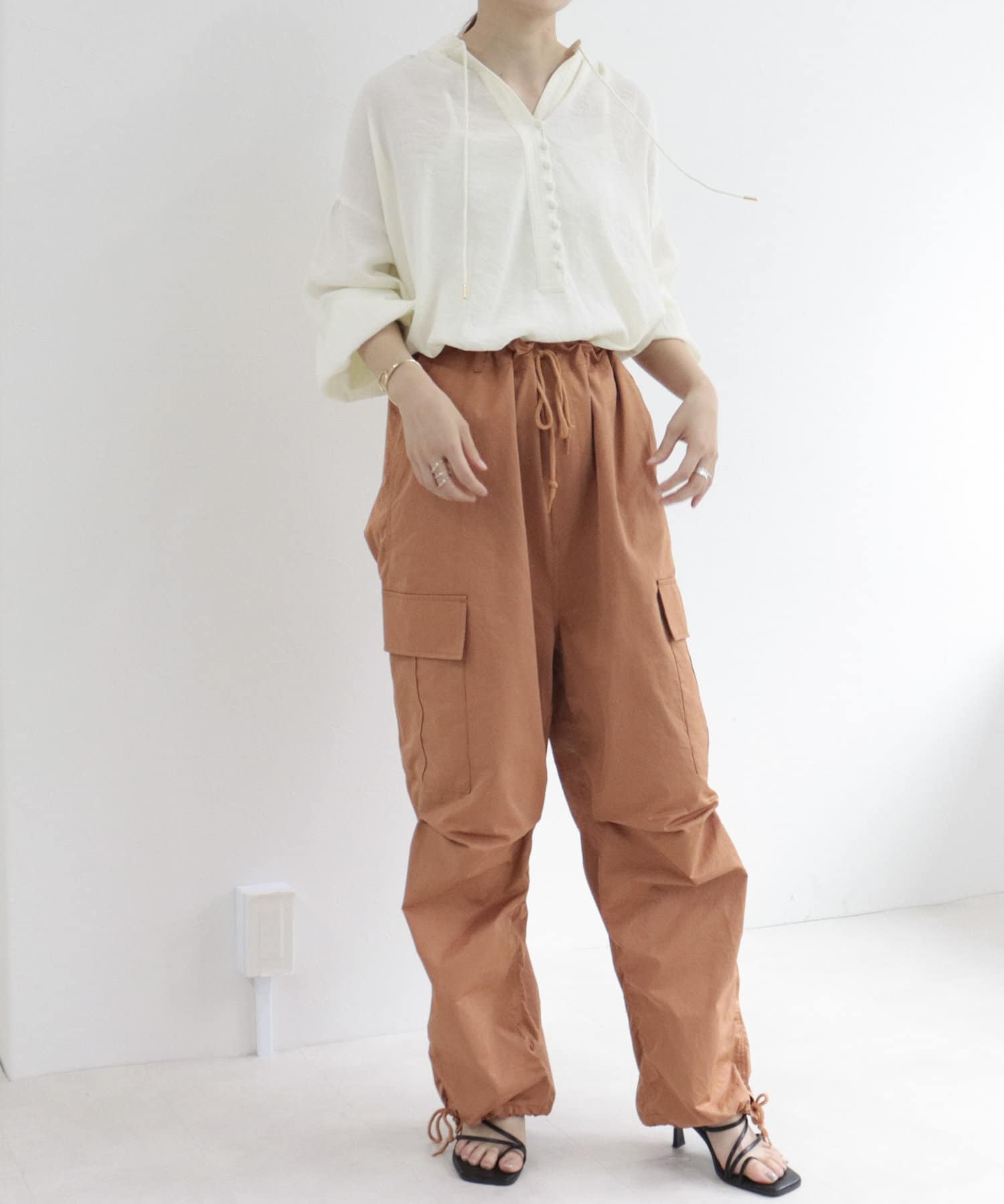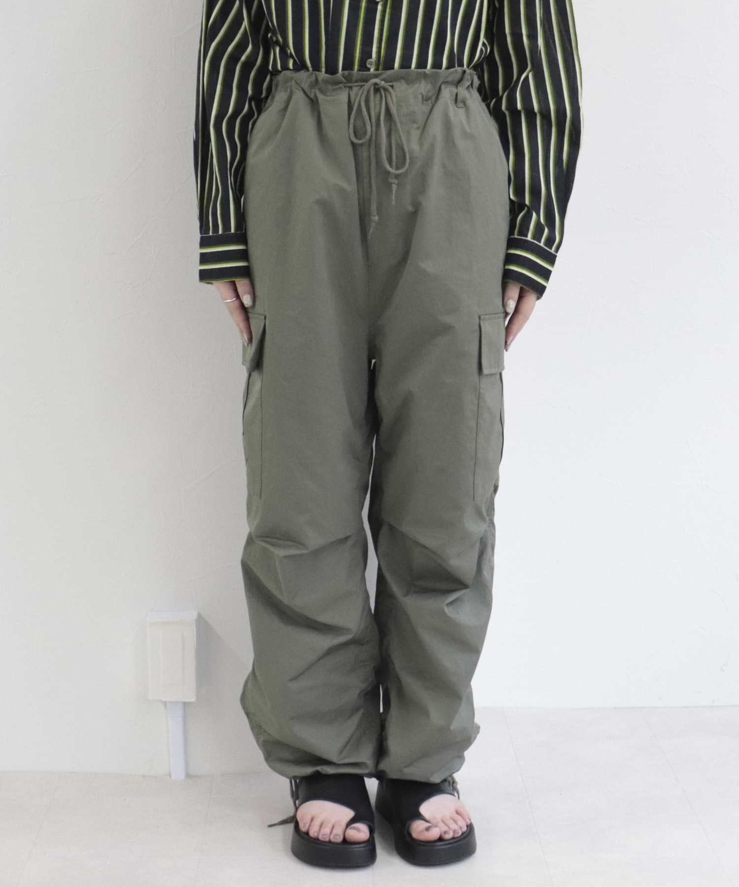 ・存在感のあるワイドシルエットですが、裾を絞れるので小柄な方でも挑戦しやすいです