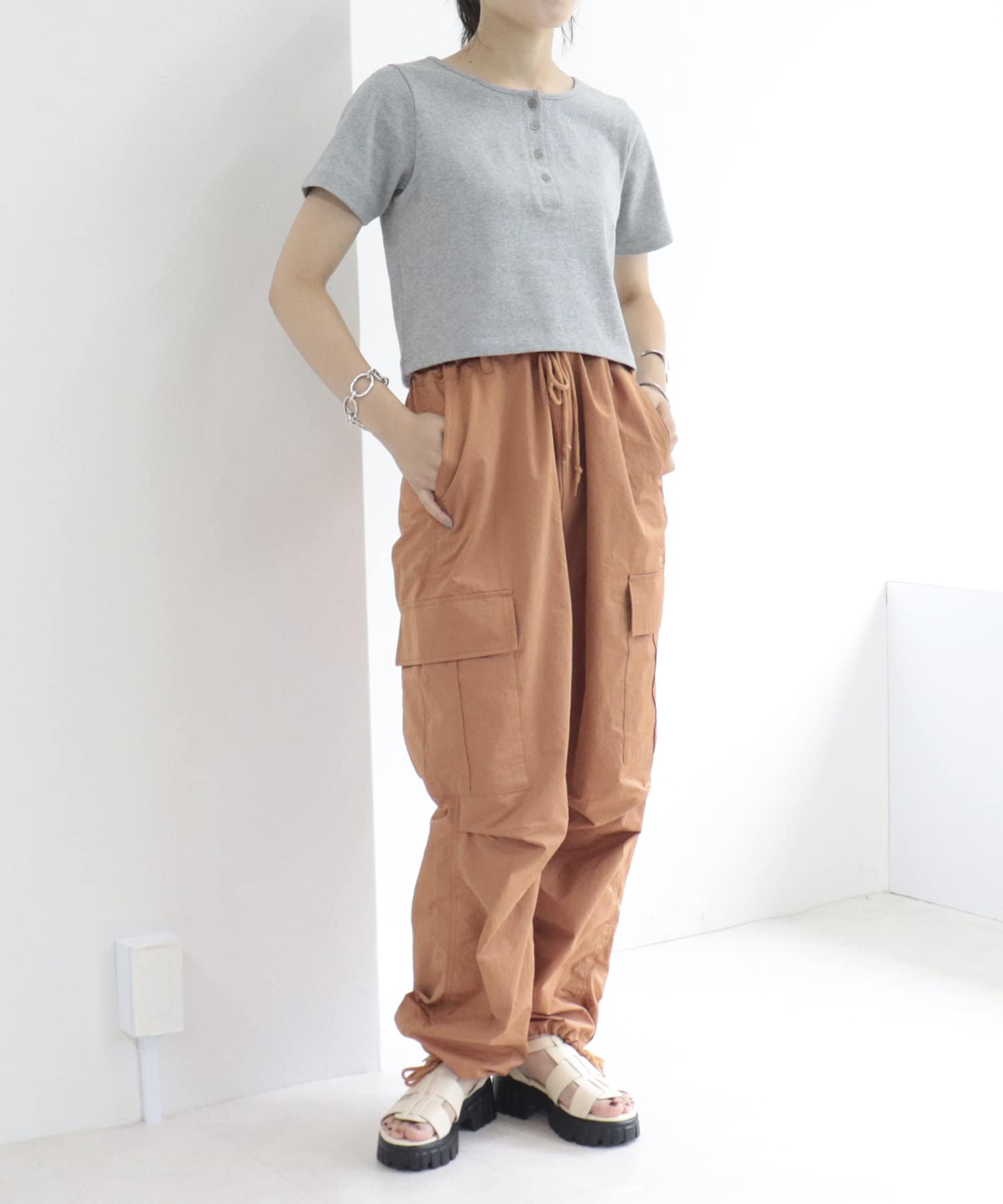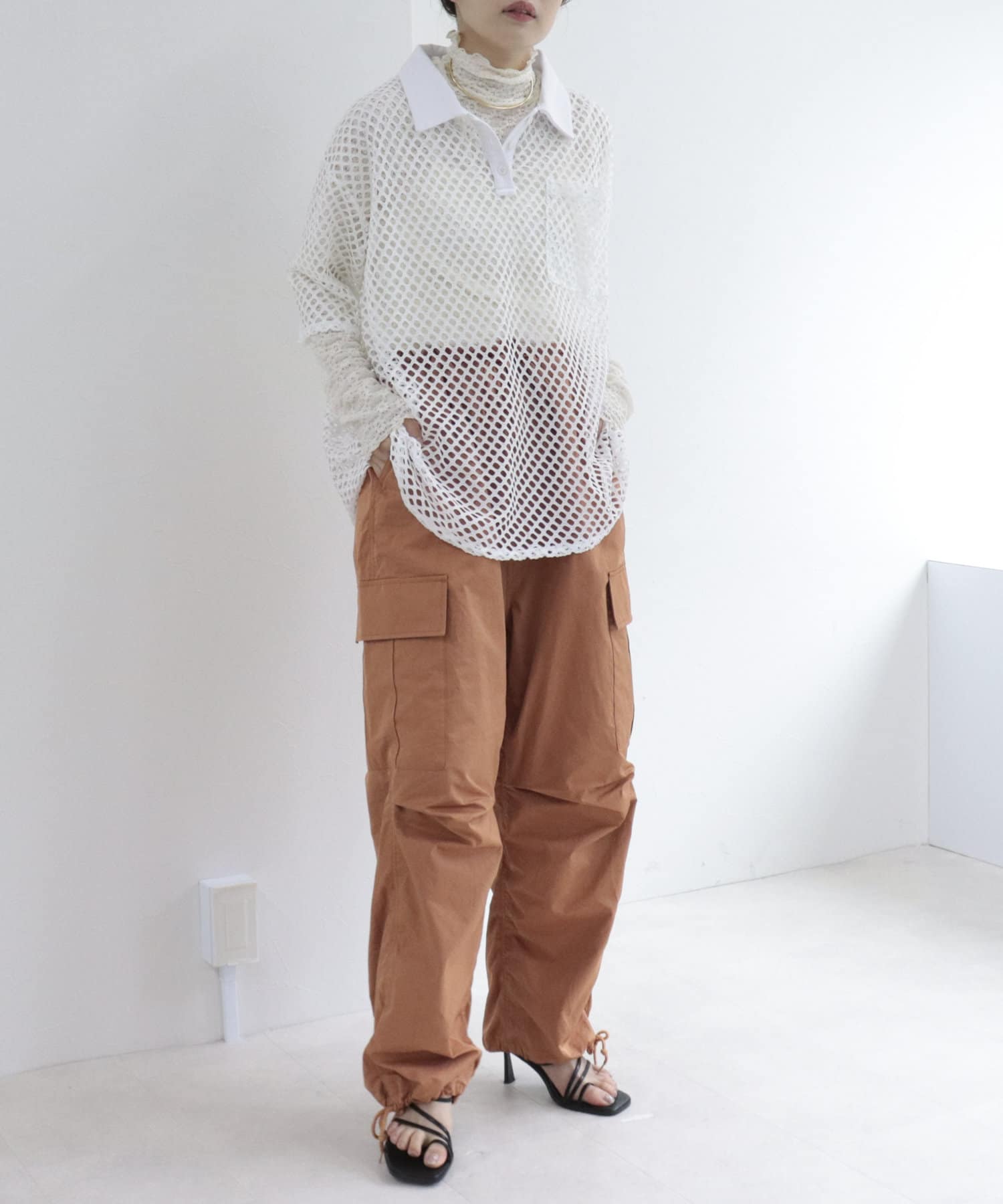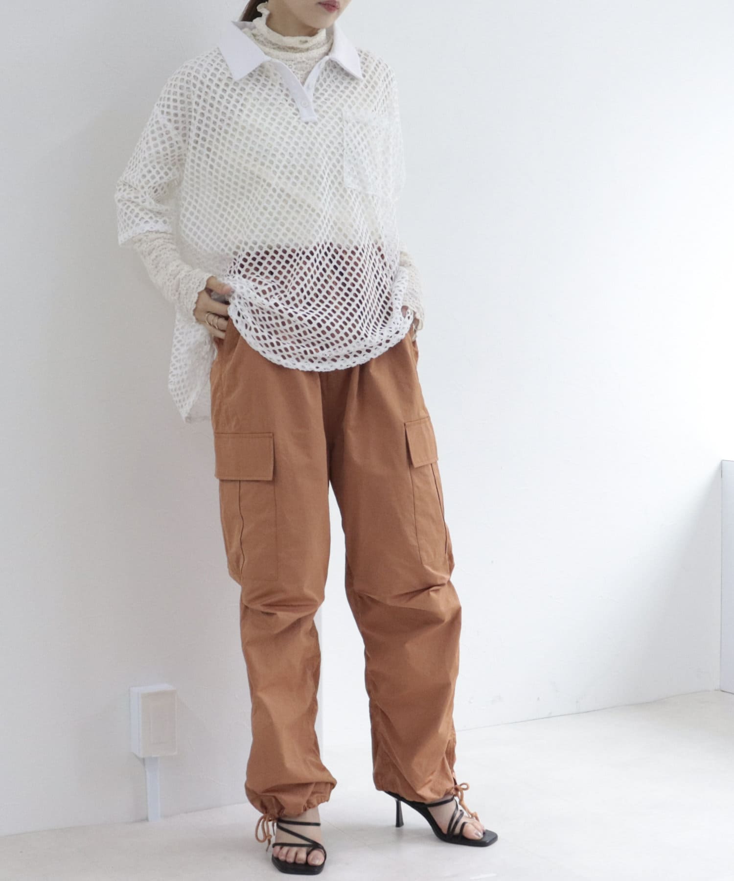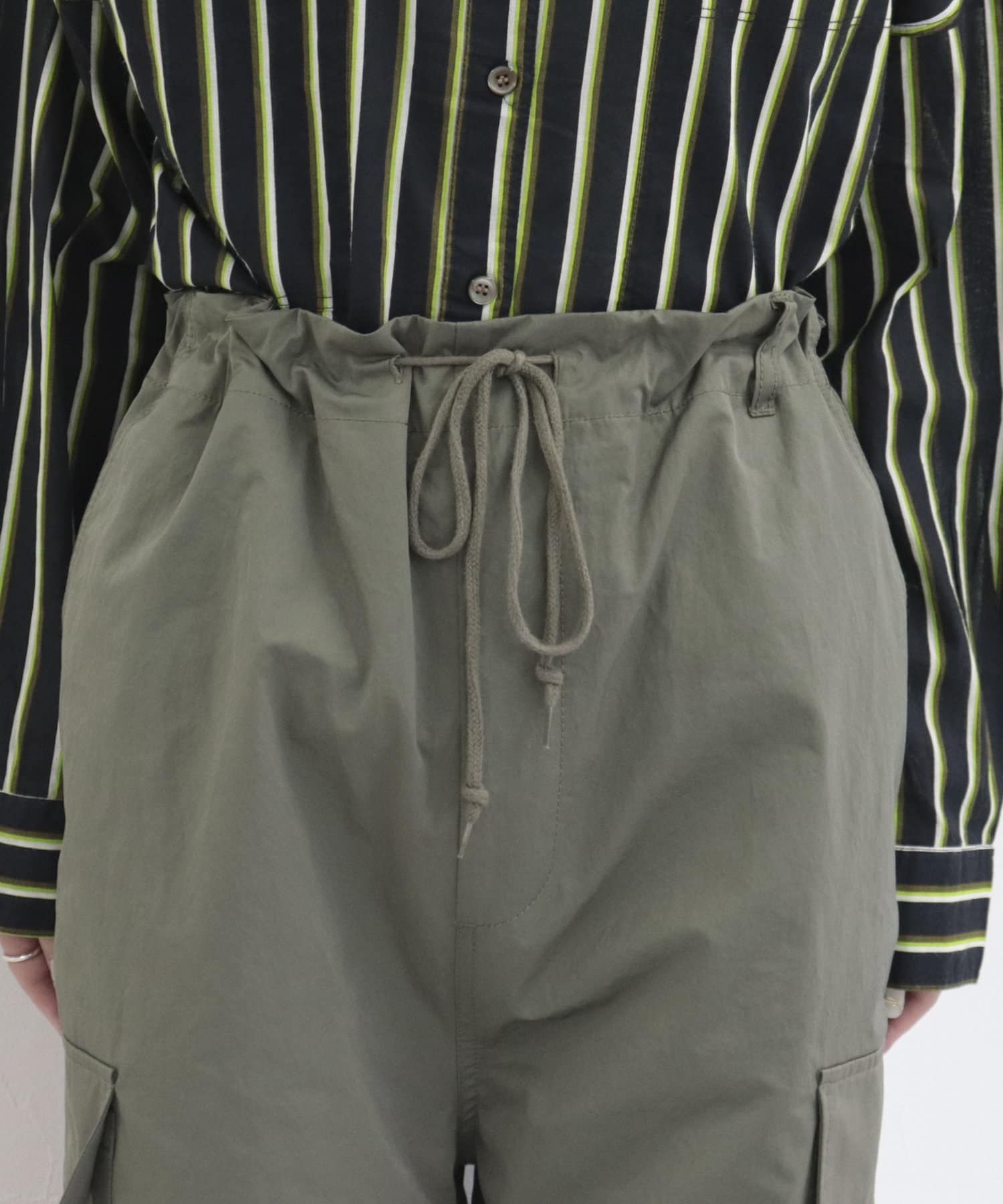 ・存在感のあるワイドシルエットですが、裾を絞れるので小柄な方でも挑戦しやすいです