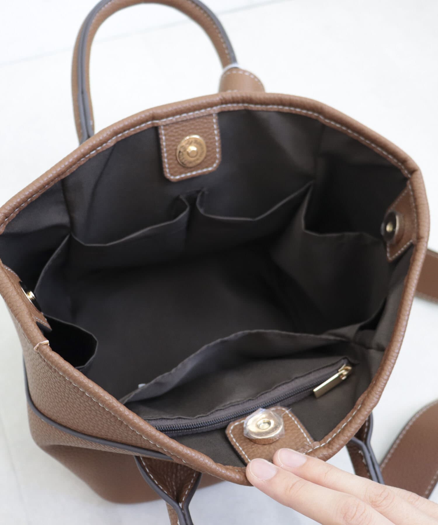 ・ざっくりとした構造ながらフェイクレザーで上品さをプラスしたトートバッグ