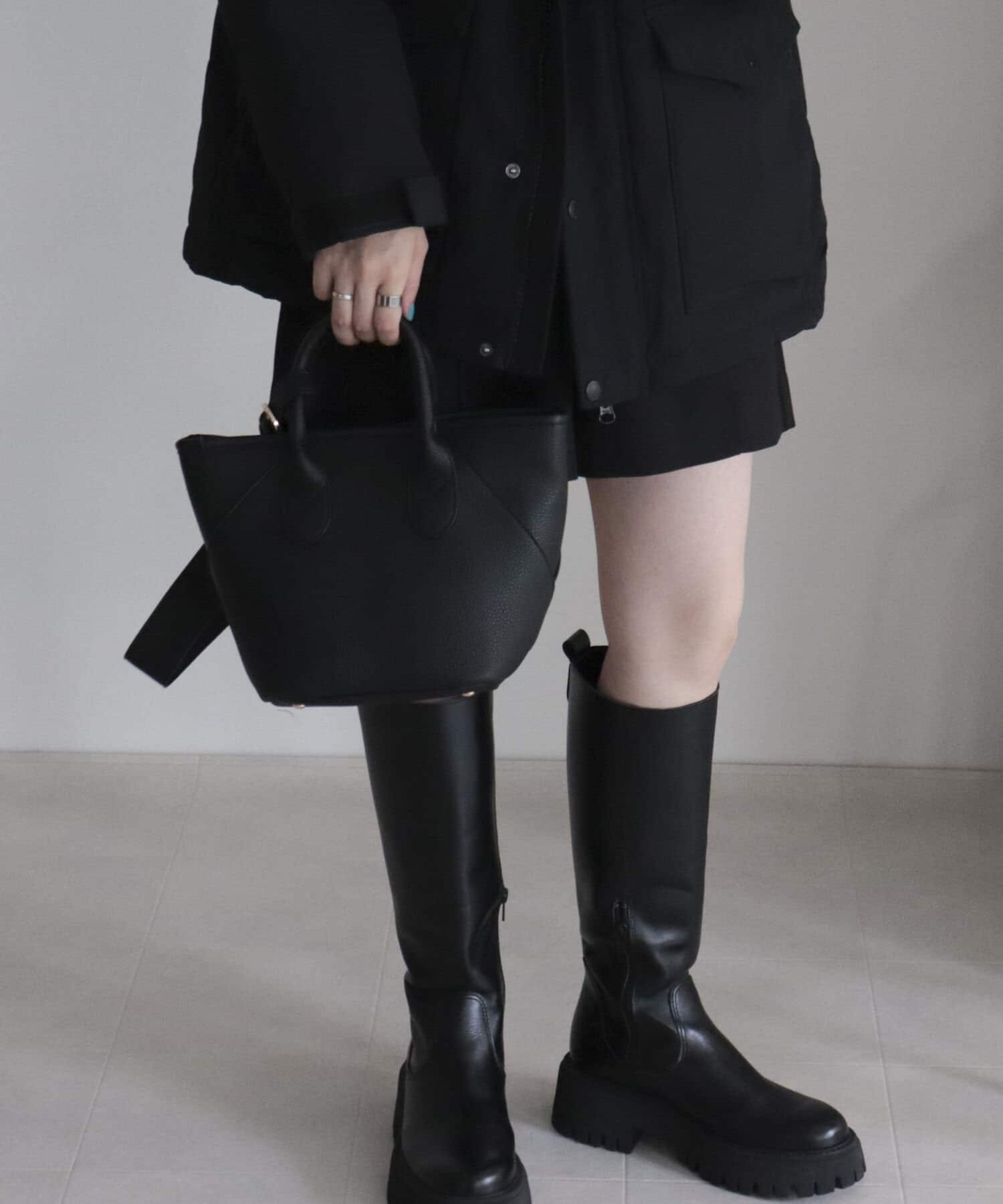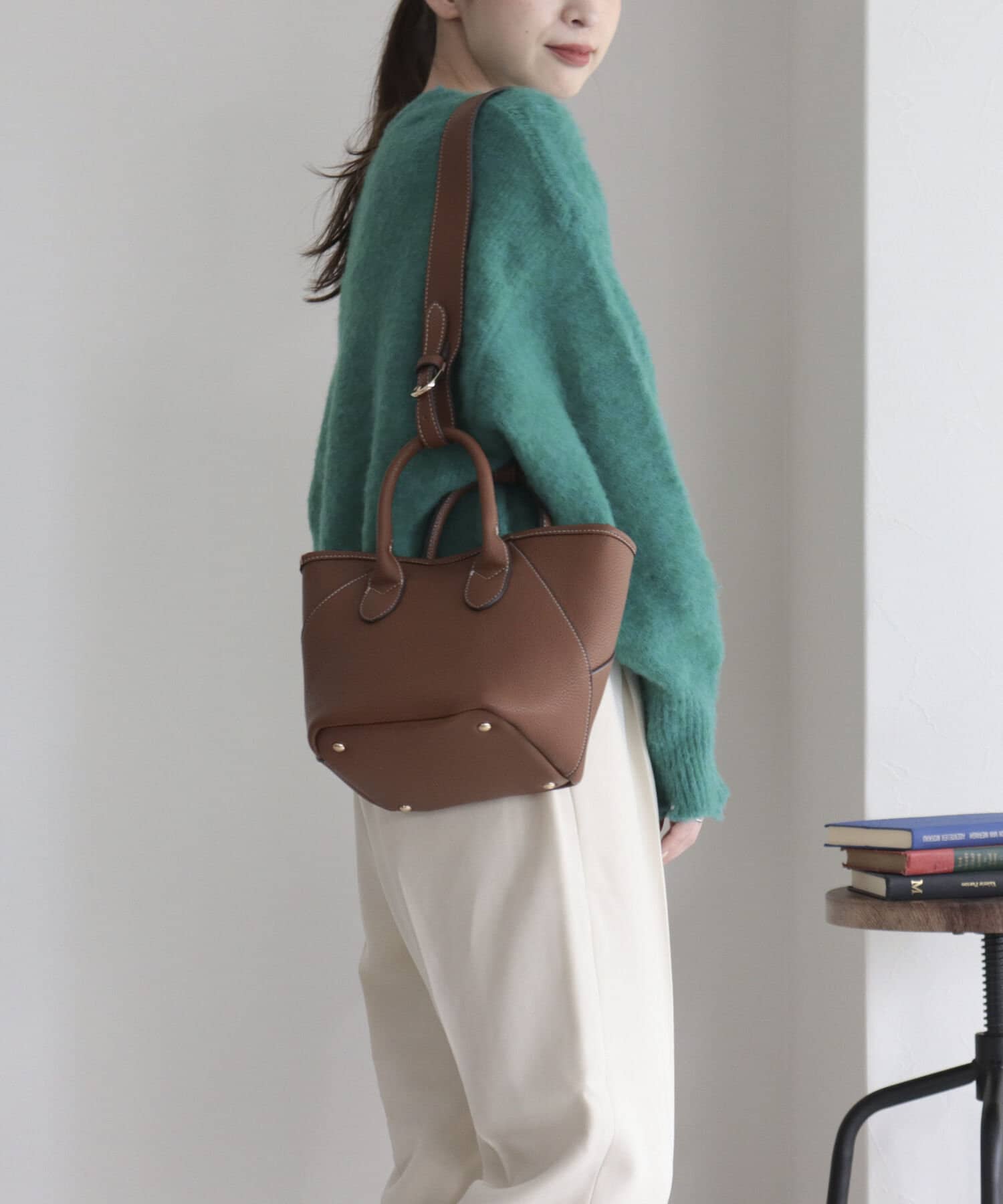 ・ハンドルを持った時のシルエットと、ショルダーバッグとして持った時のシルエットが変わり、印象も大きく変化
