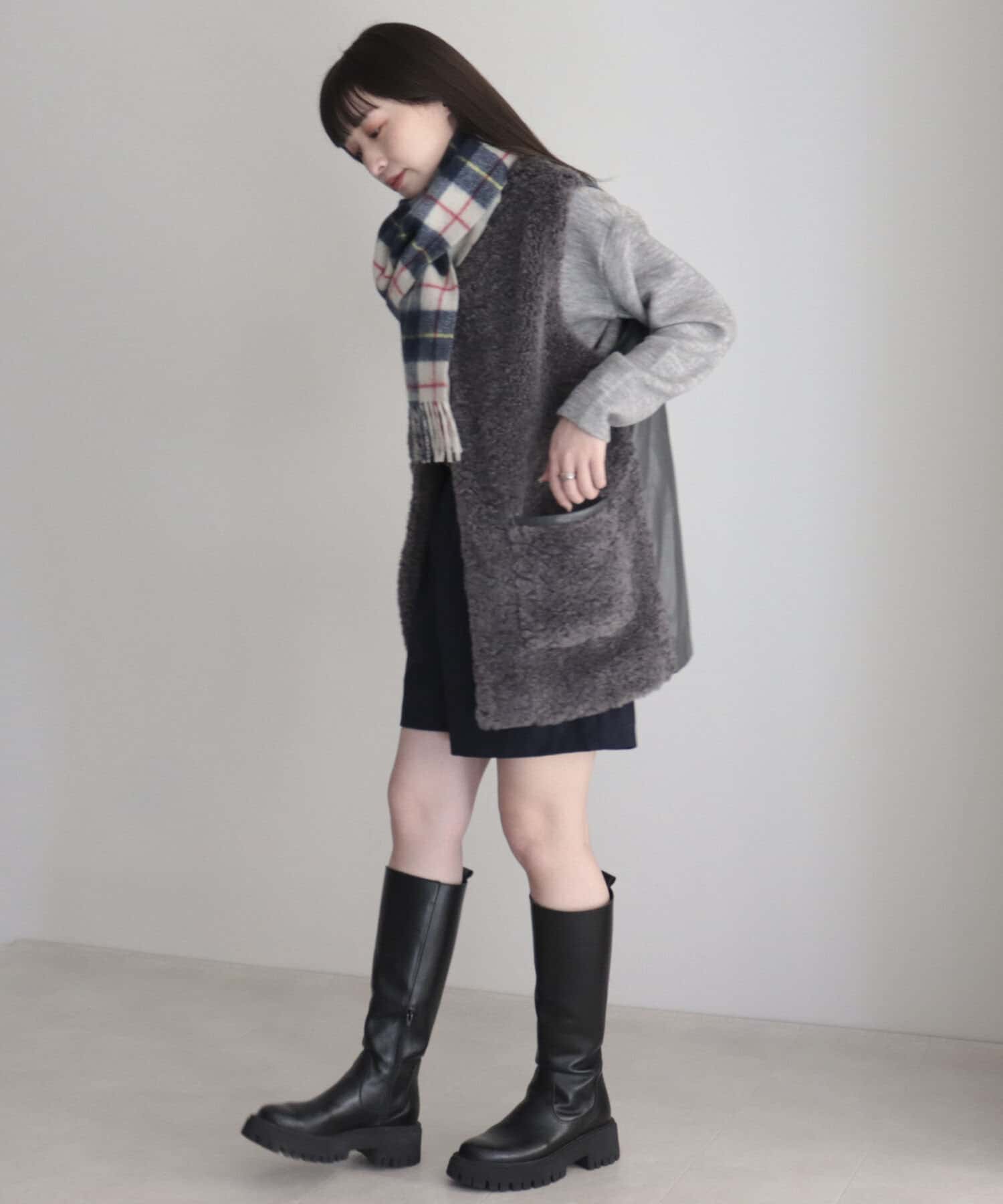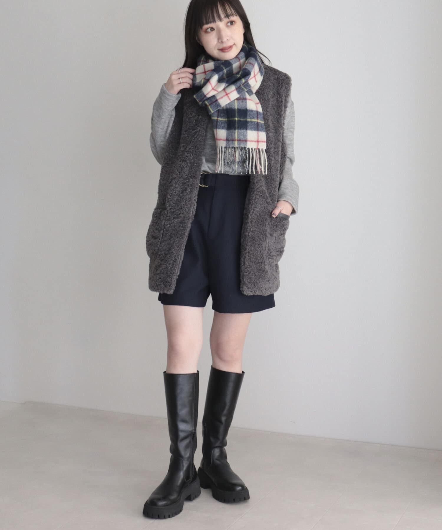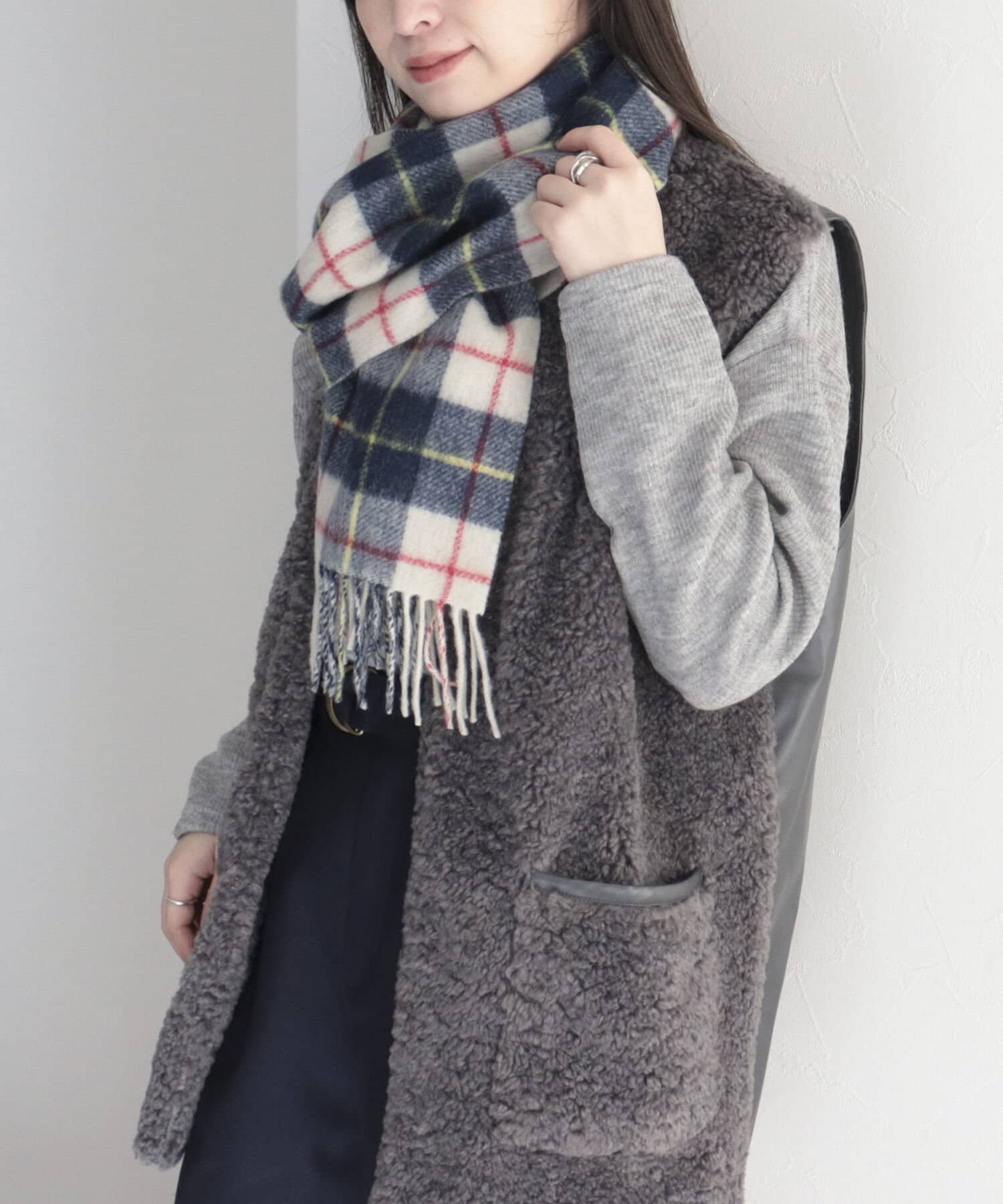 カシミヤ混チェックマフラー