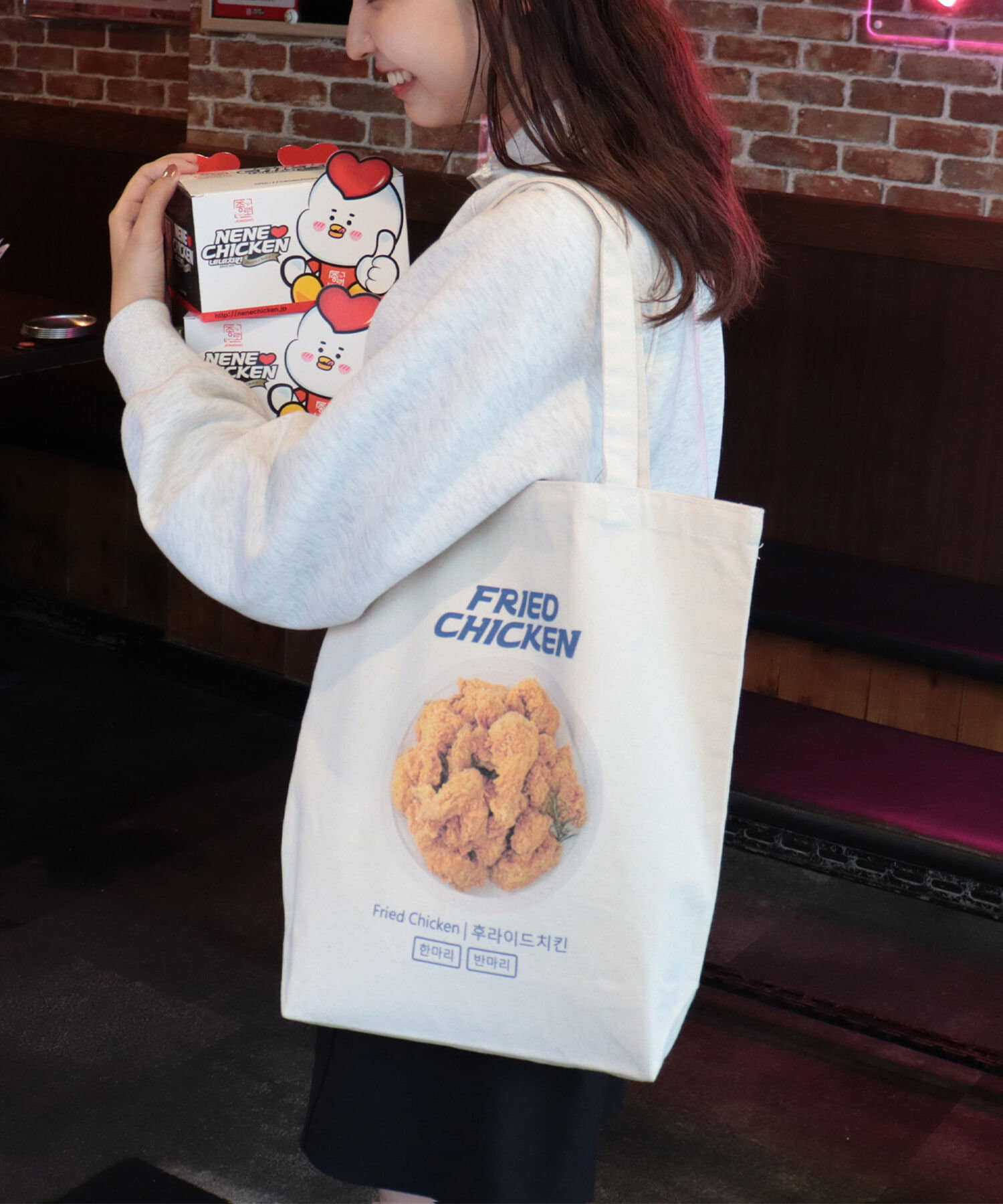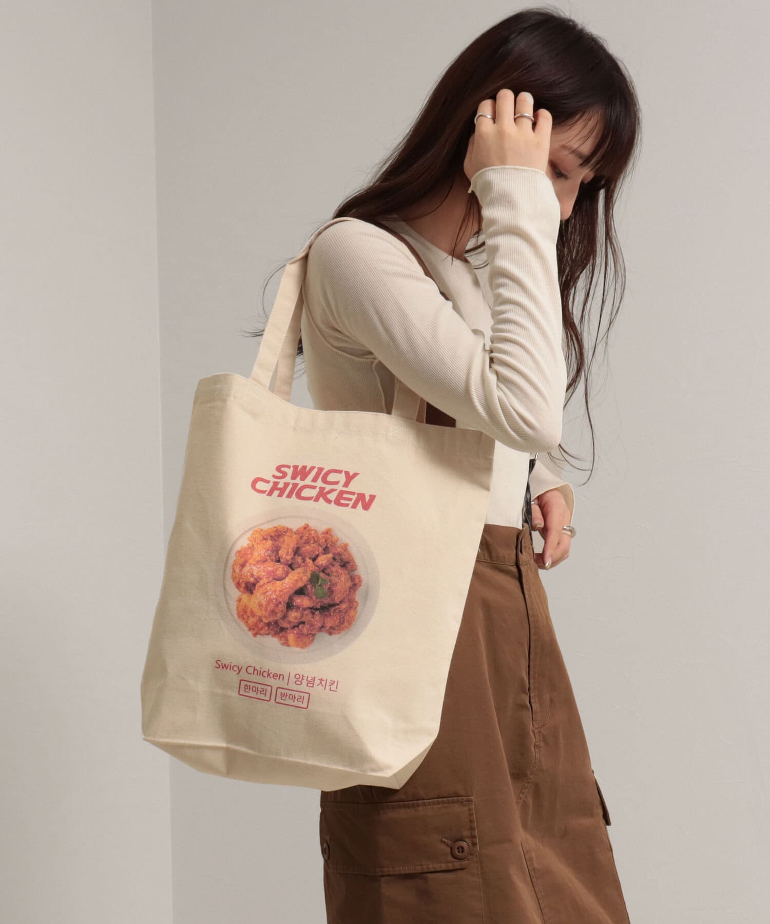 ・チキン好き・韓国好きにはたまらないプリントが目を惹くトートバッグ