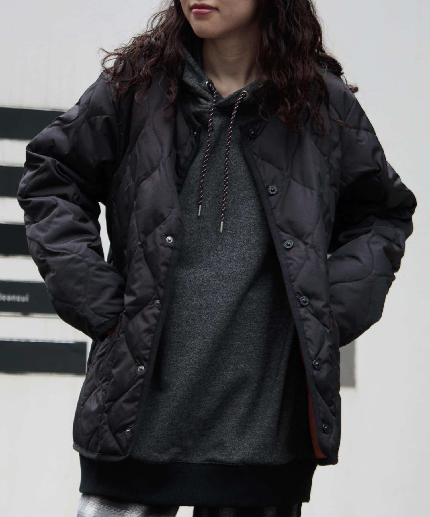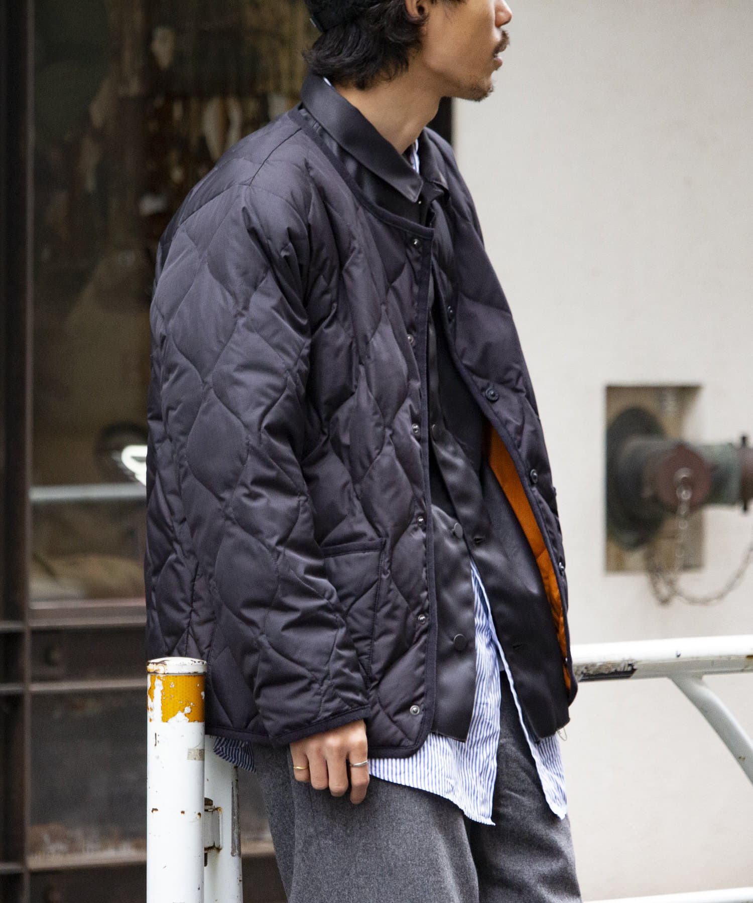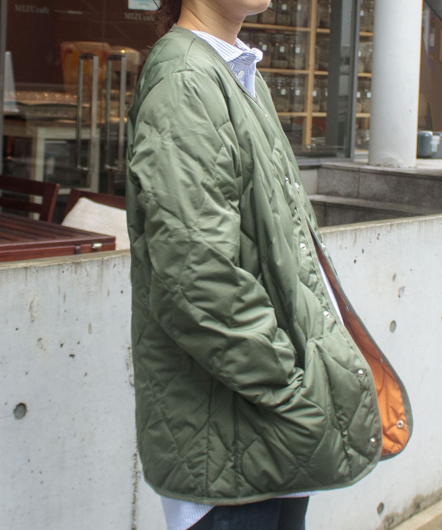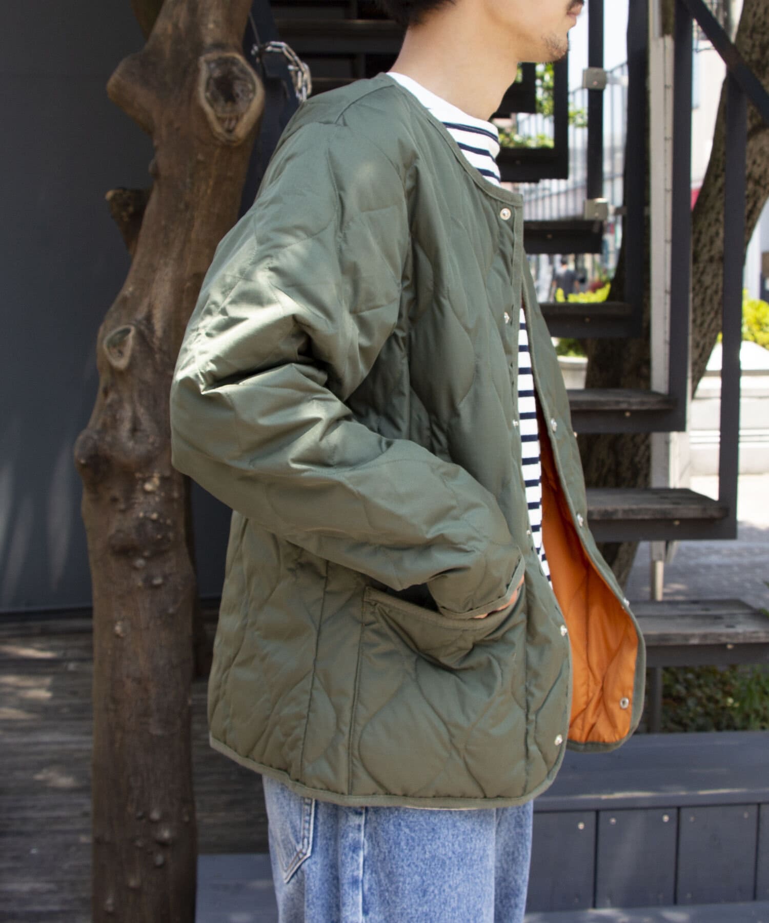 ややオーバーサイズのシルエットに裏地がオレンジなので、MA-1のようなブルゾン感覚での着用はもちろん、インナーダウンのようにコートのインでも活躍する1着に仕上がっています。