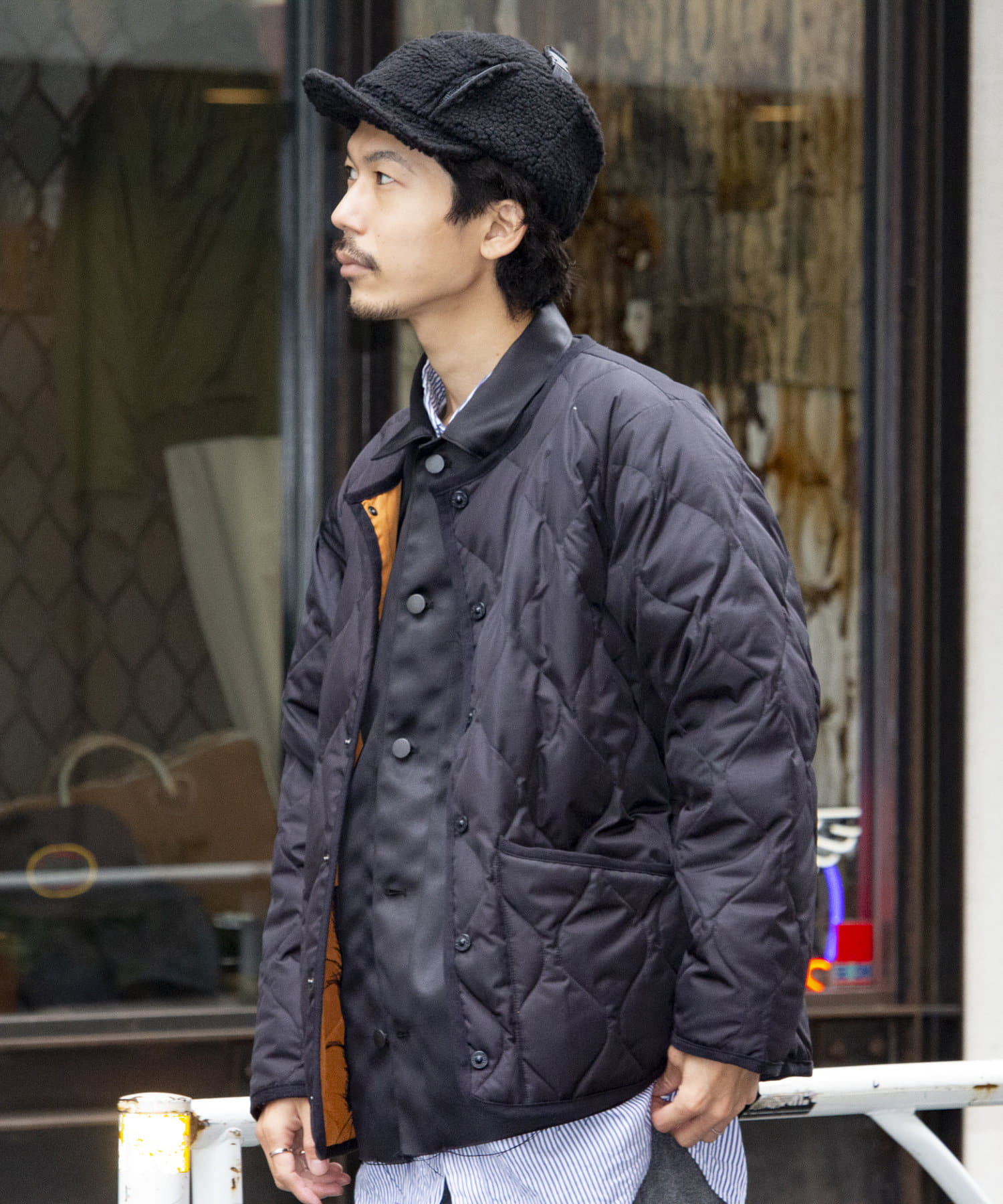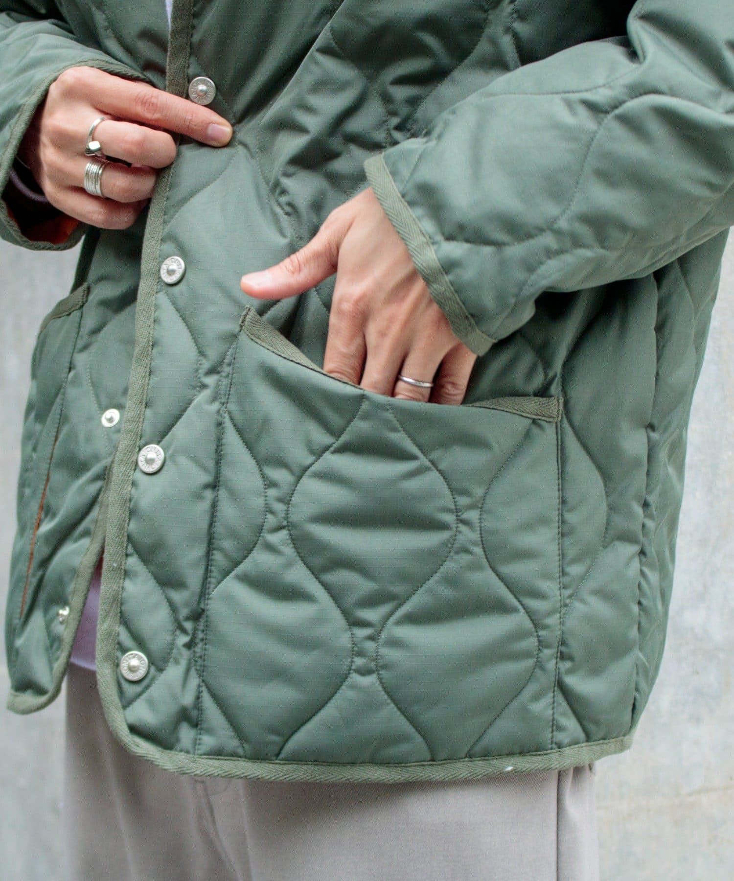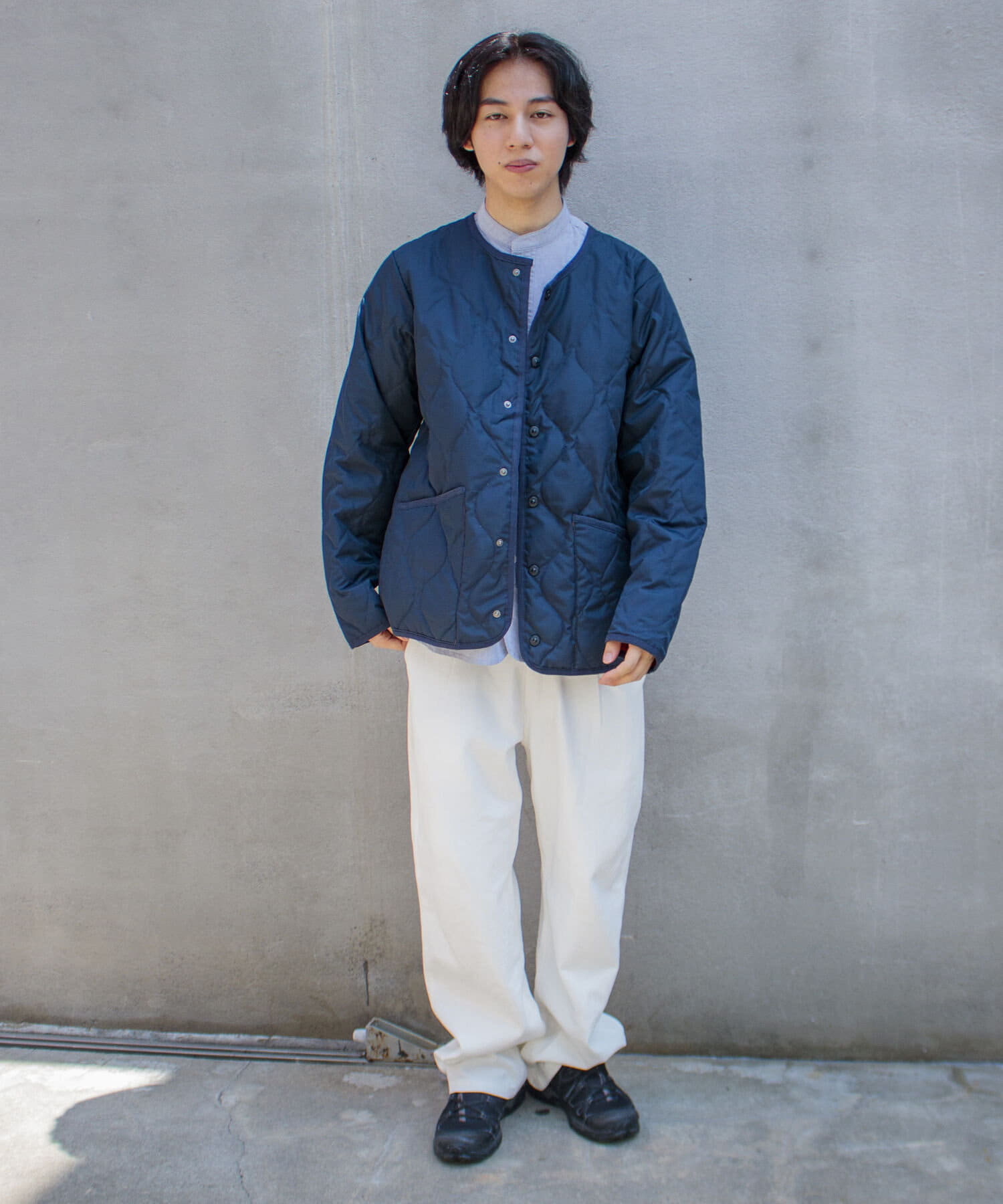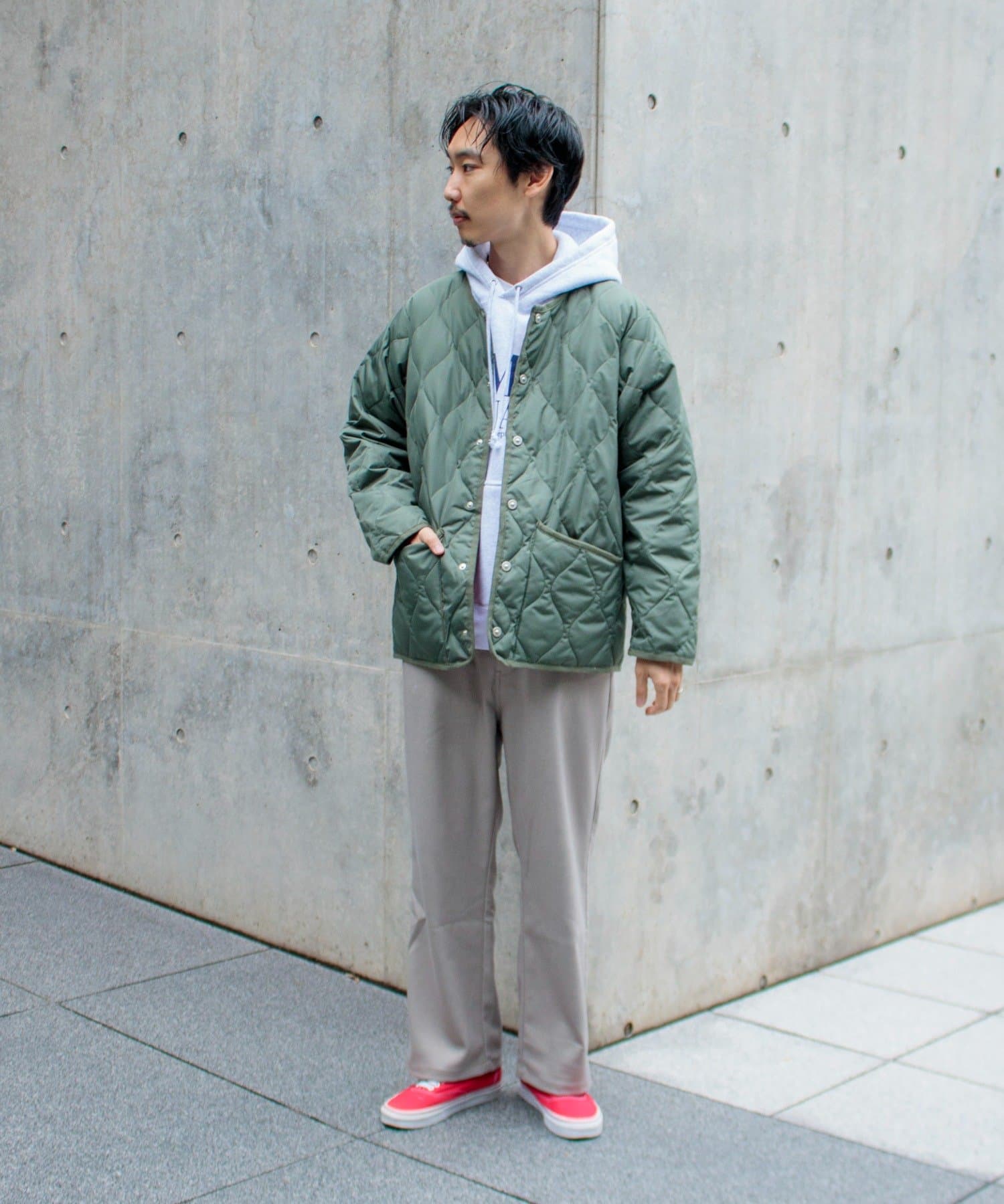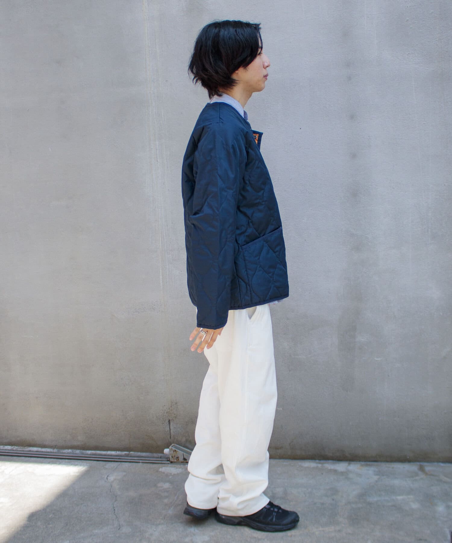 ややオーバーサイズのシルエットに裏地がオレンジなので、MA-1のようなブルゾン感覚での着用はもちろん、インナーダウンのようにコートのインでも活躍する1着に仕上がっています。
