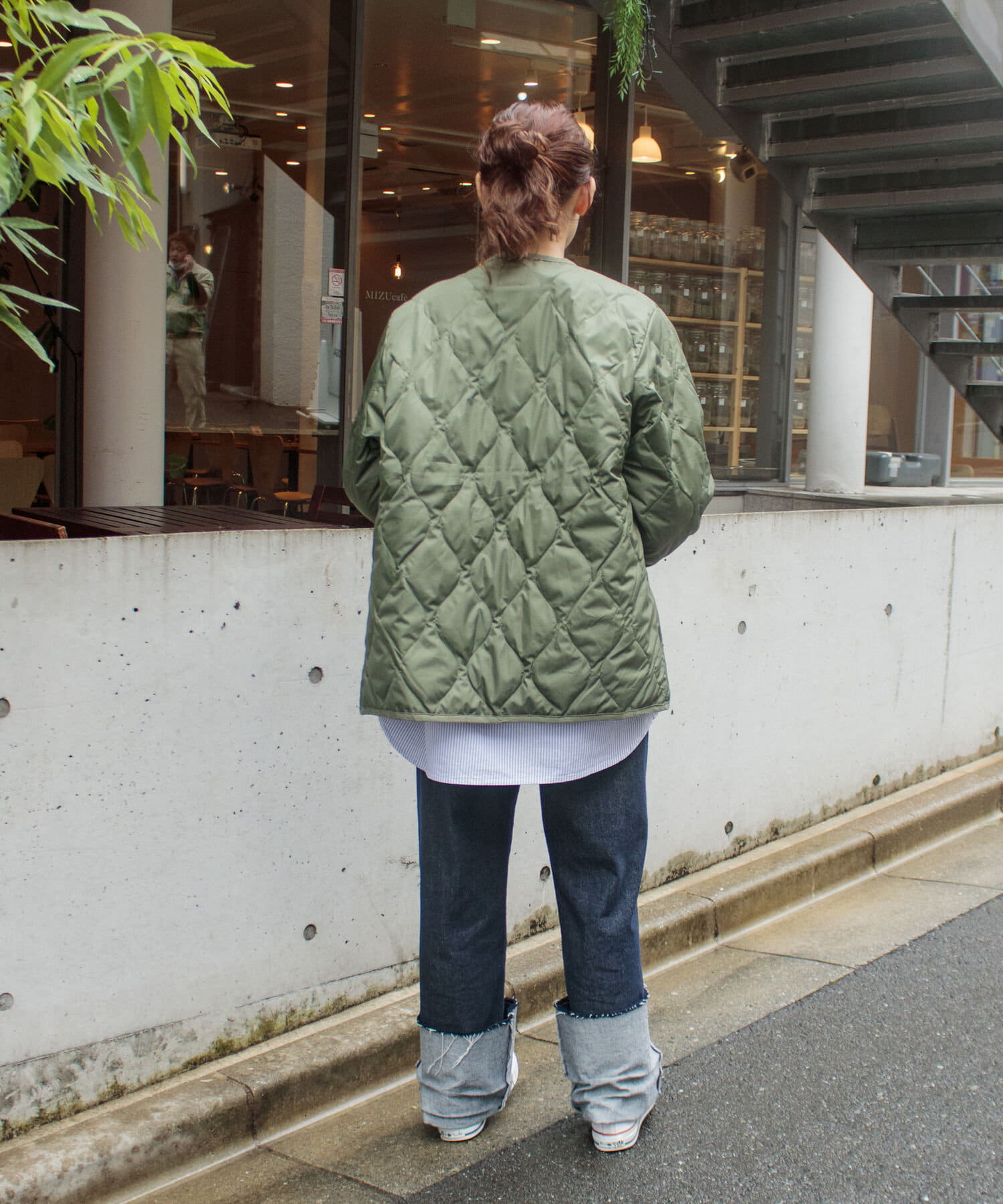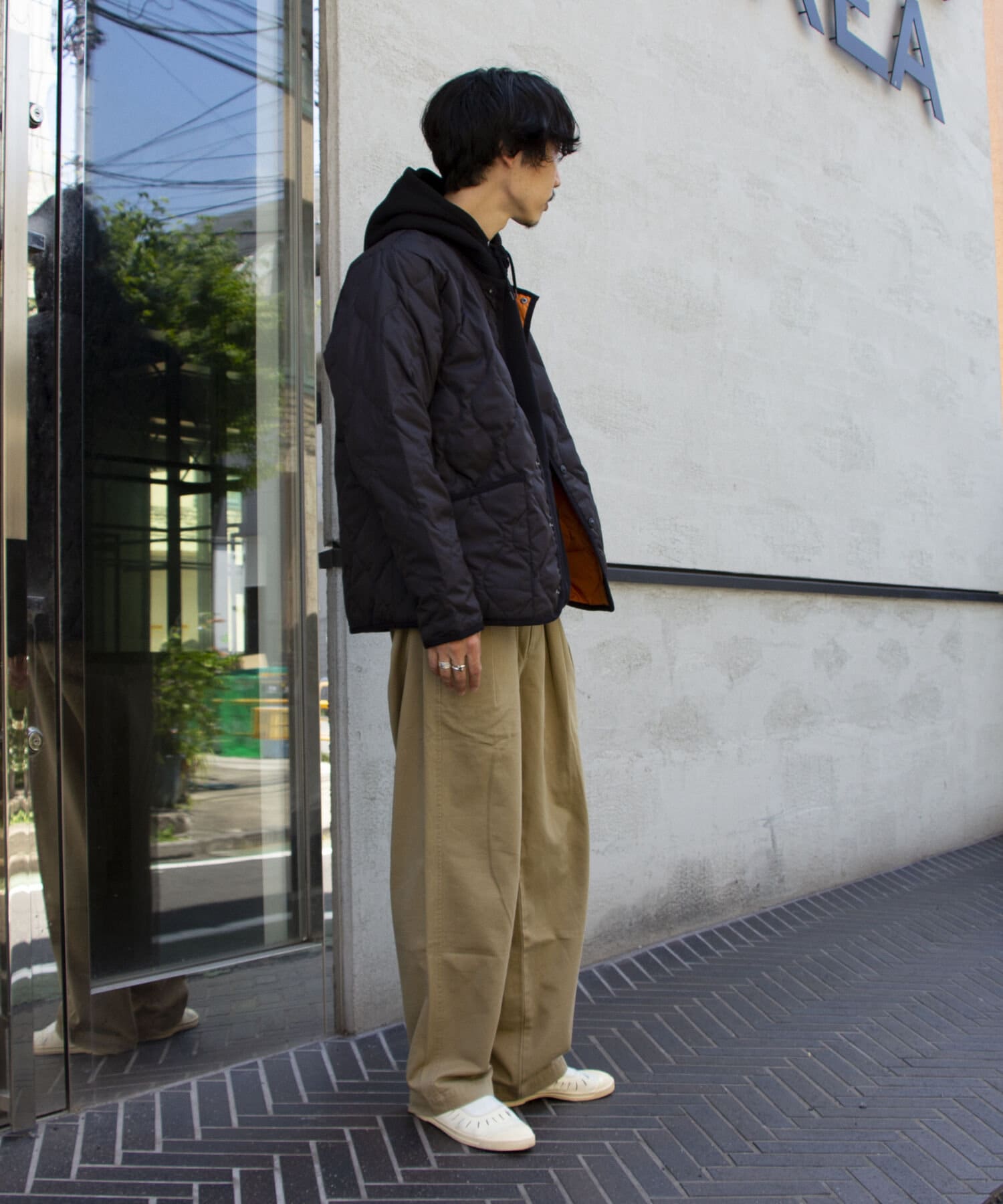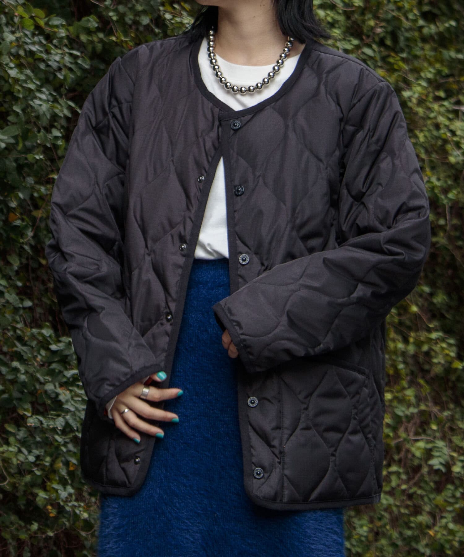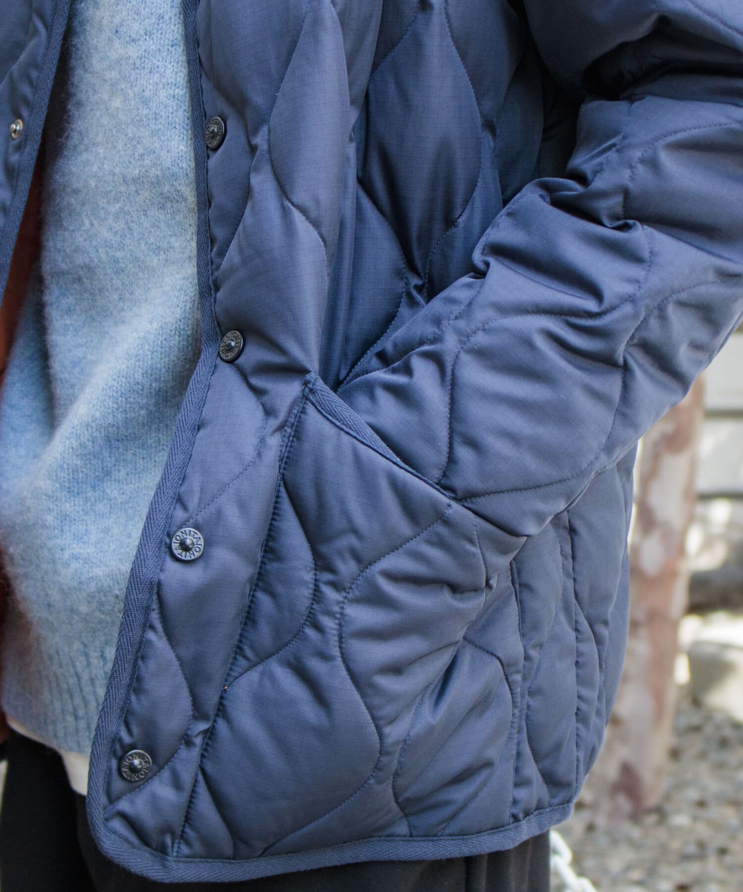 ややオーバーサイズのシルエットに裏地がオレンジなので、MA-1のようなブルゾン感覚での着用はもちろん、インナーダウンのようにコートのインでも活躍する1着に仕上がっています。
