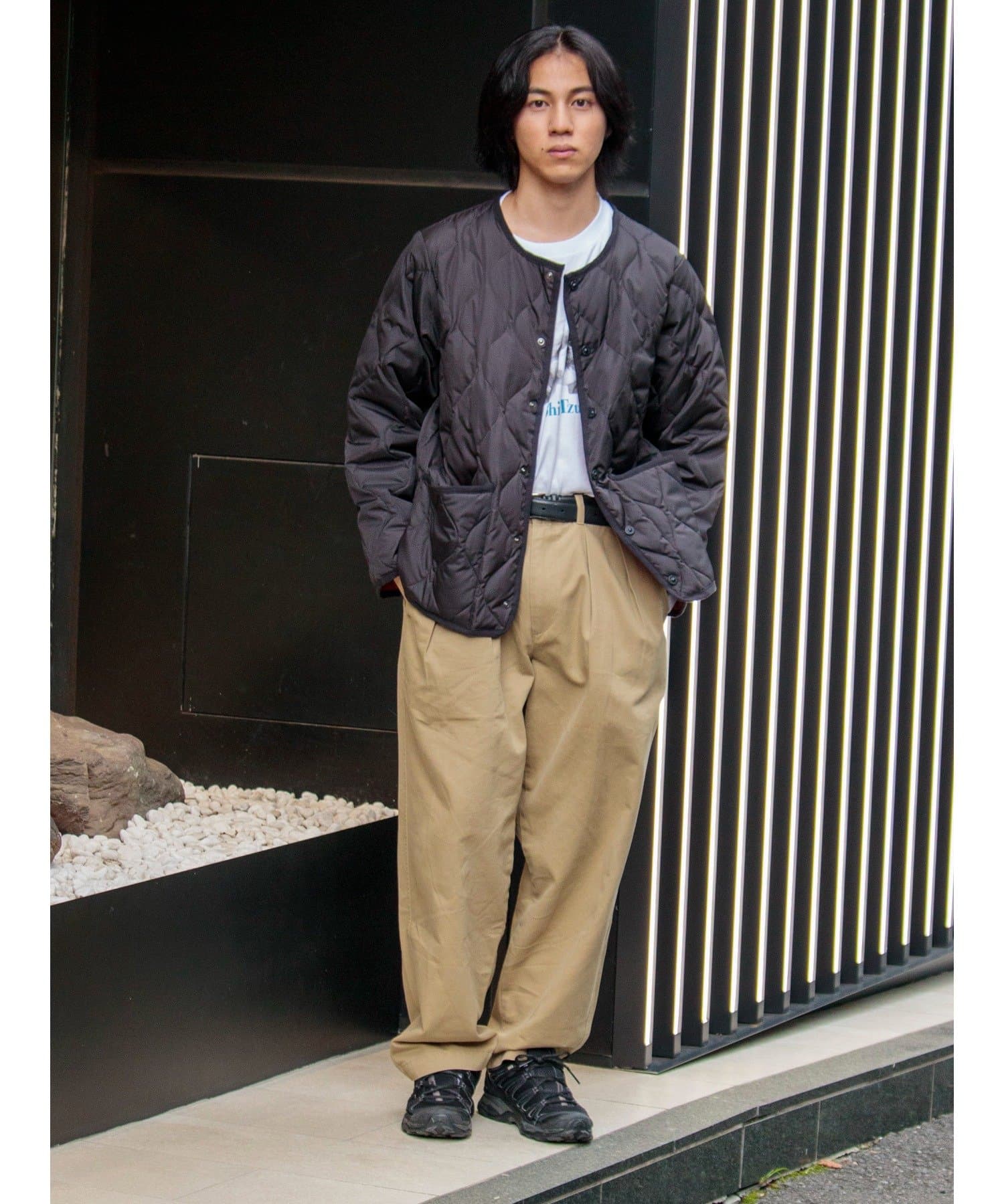 ボーダートップスやパーカー、ニットとのカジュアルなスタイリングはもちろん、シャツやタートルネックにスラックスを合わせるきれいめカジュアルにも最適です。