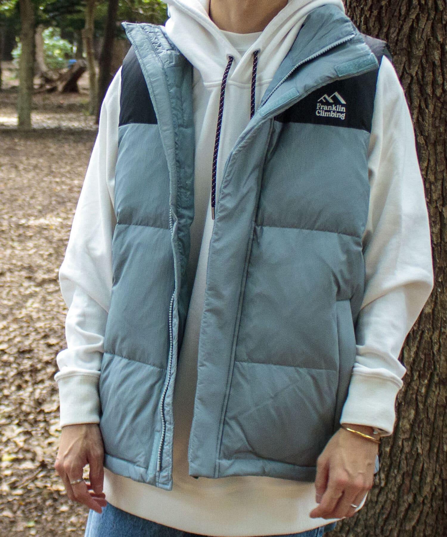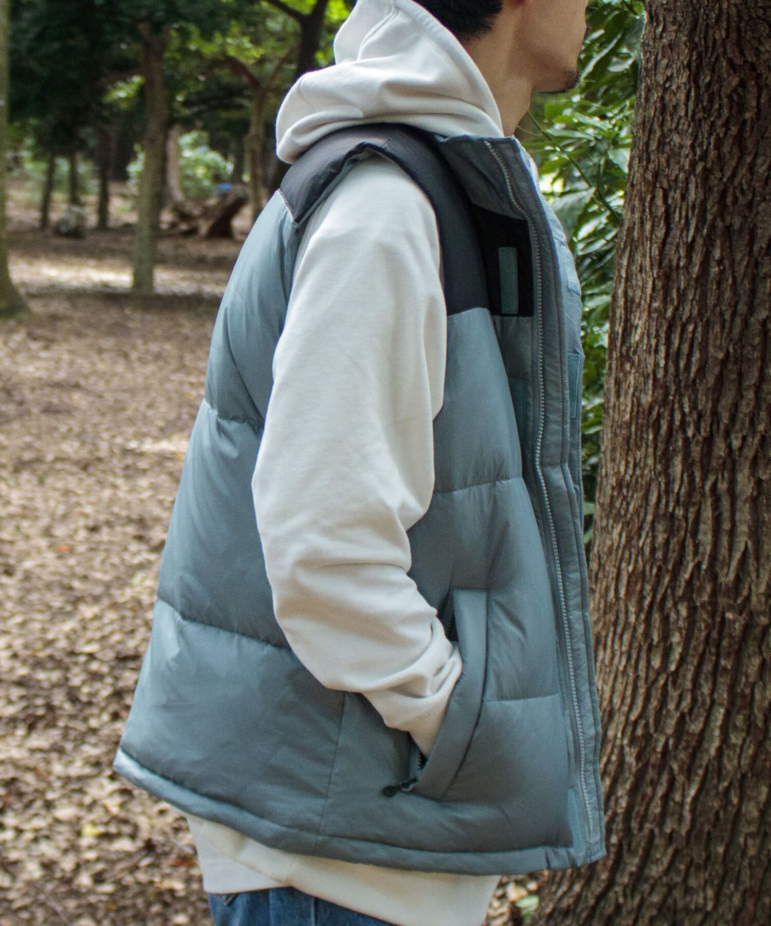 UV・撥水・防風の機能があり幅広い天候に対応するダウンベストです。