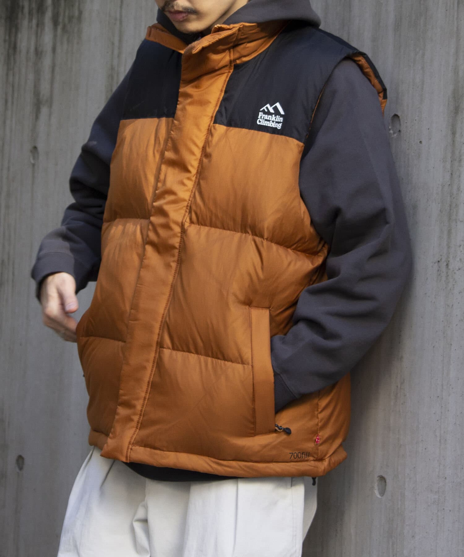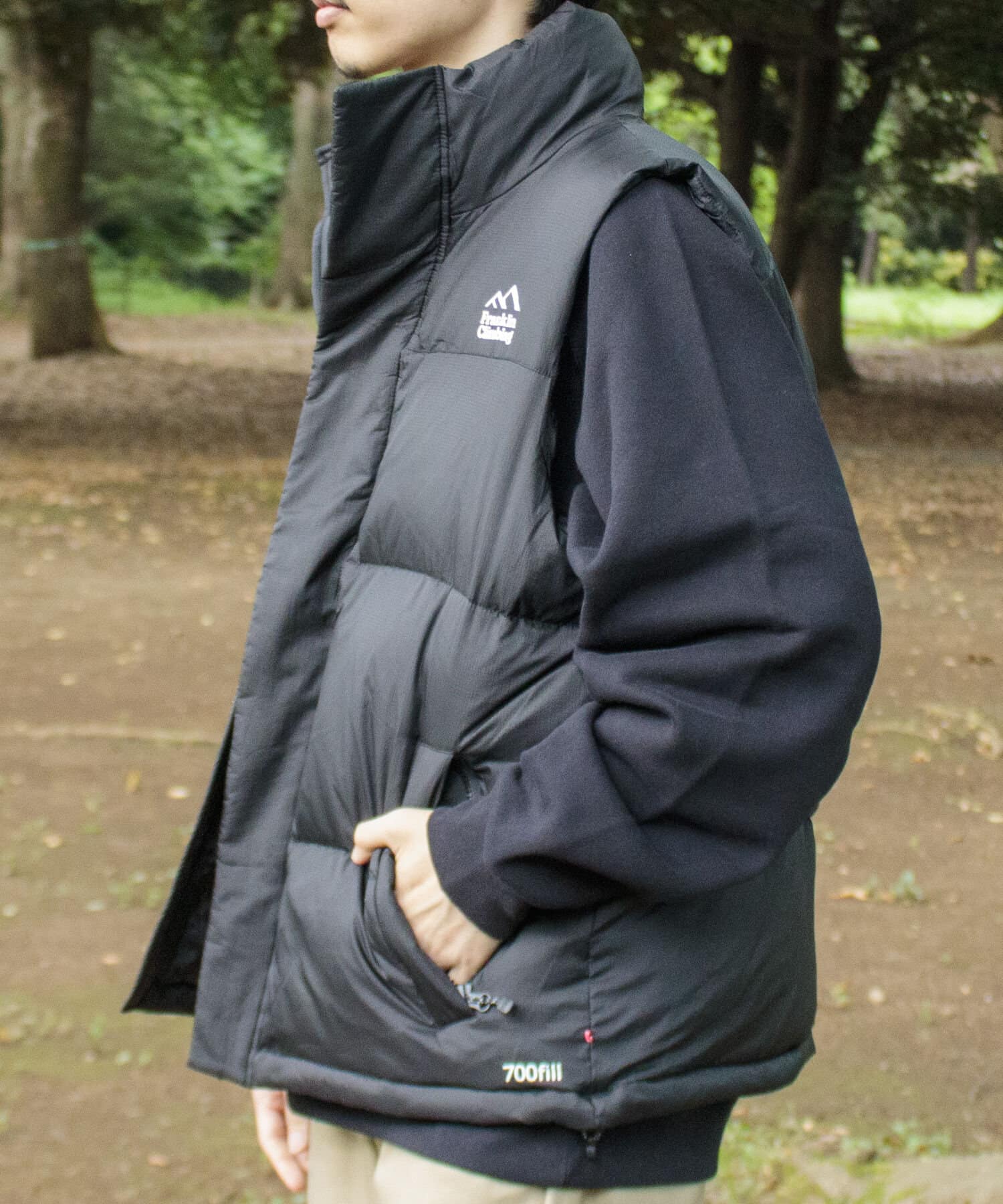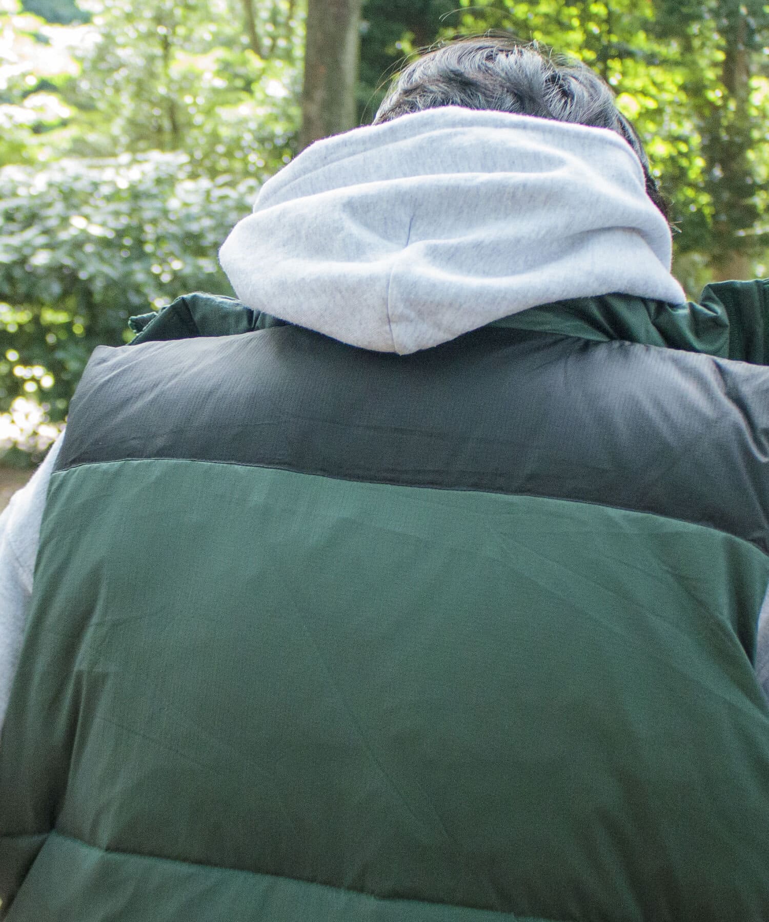 700 FP(フィルパワー)の高機能ダウンは気候が激しいアウトドアシーンでも活躍します。