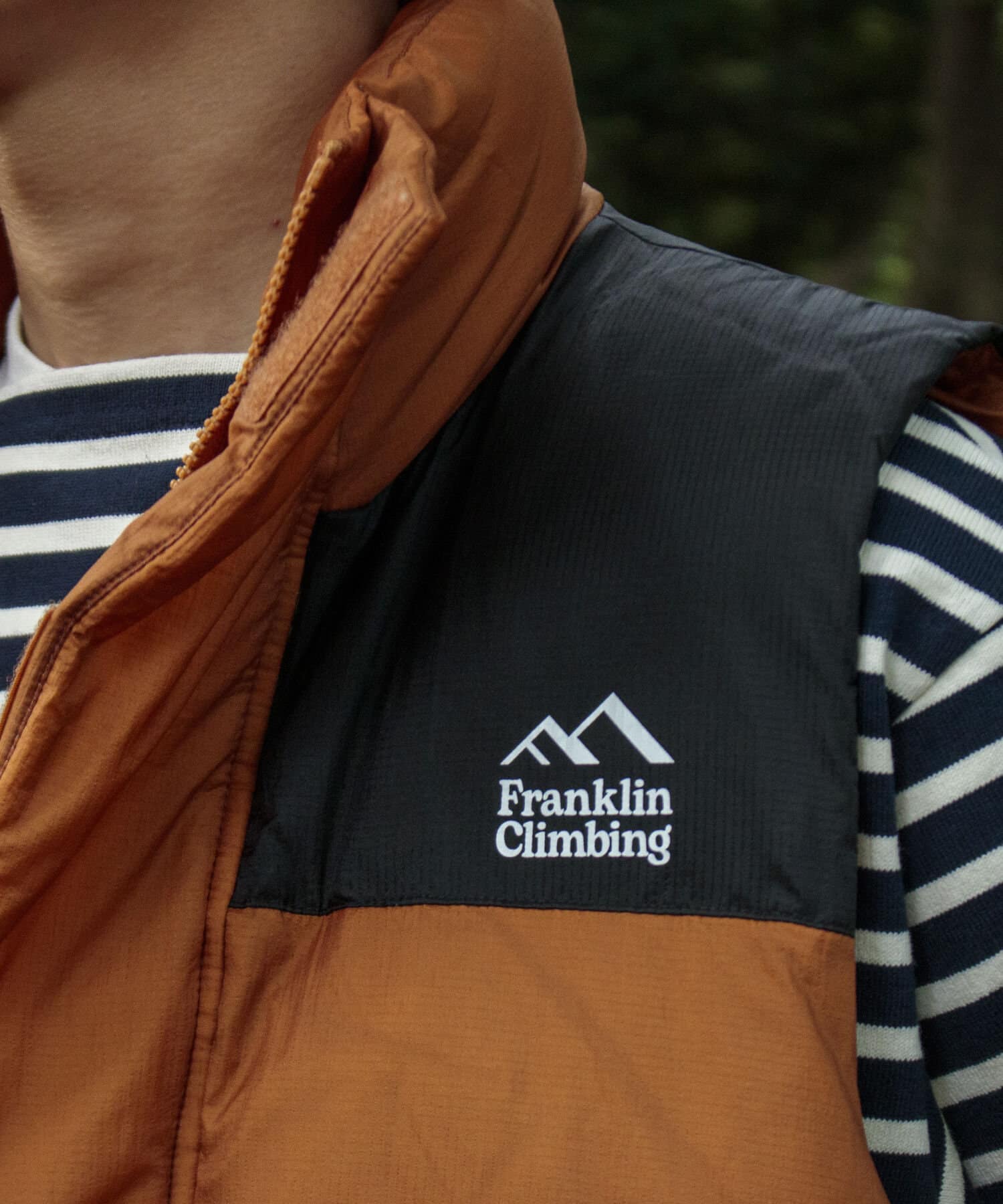 フランクリンクライミングは、1995年アメリカのオレゴン州にて誕生しました。クライミングホールドやギアの制作、販売を行い世界中のクライマーから支持を集めました。その後、本国でアパレル商品の販売を開始し、90年代後半から2000年初頭そのデザイン性からギアだけでなくアパレル商品も人気になり一躍有名になりました。2005年には大手クライミングギア会社に統合され消滅したクライミングブランドです。