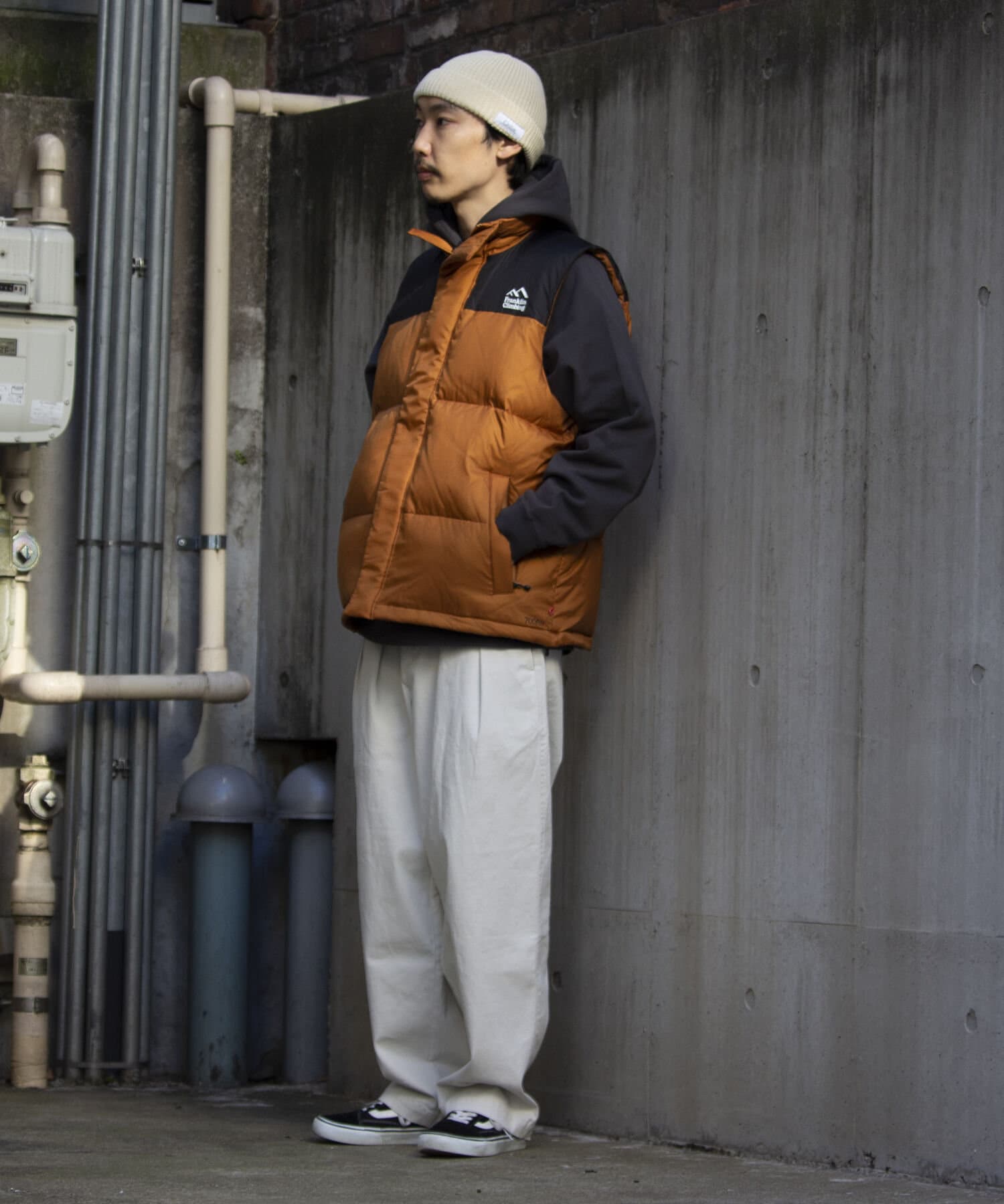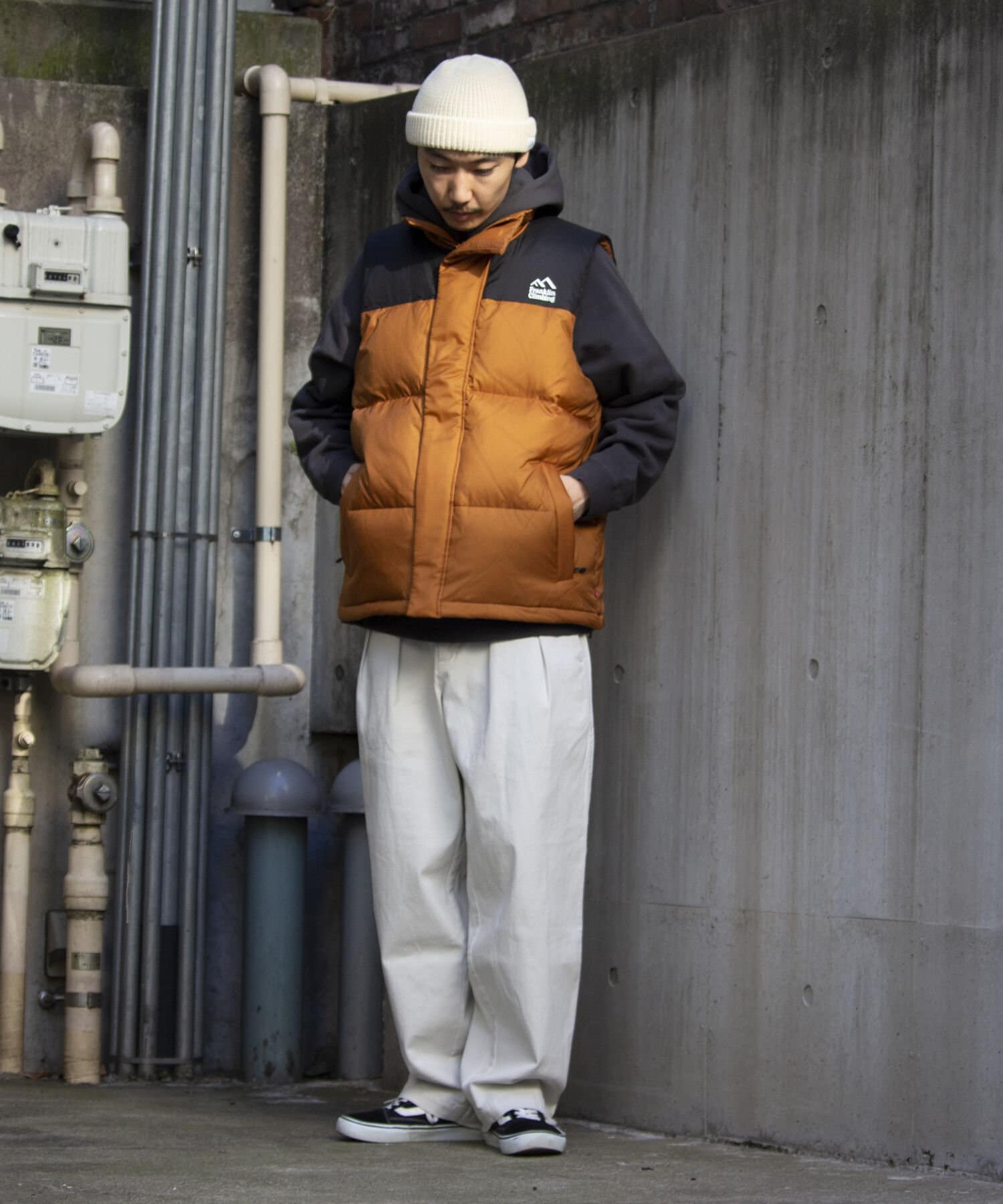 美しい景色にそびえたつカスケード山脈をモチーフにしたネームと袖口の700fill刺繍がデザインポイントです。