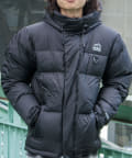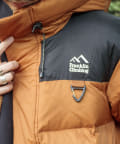 美しい景色にそびえたつカスケード山脈をモチーフにしたネームと袖口の700fill刺繍がデザインポイントです。