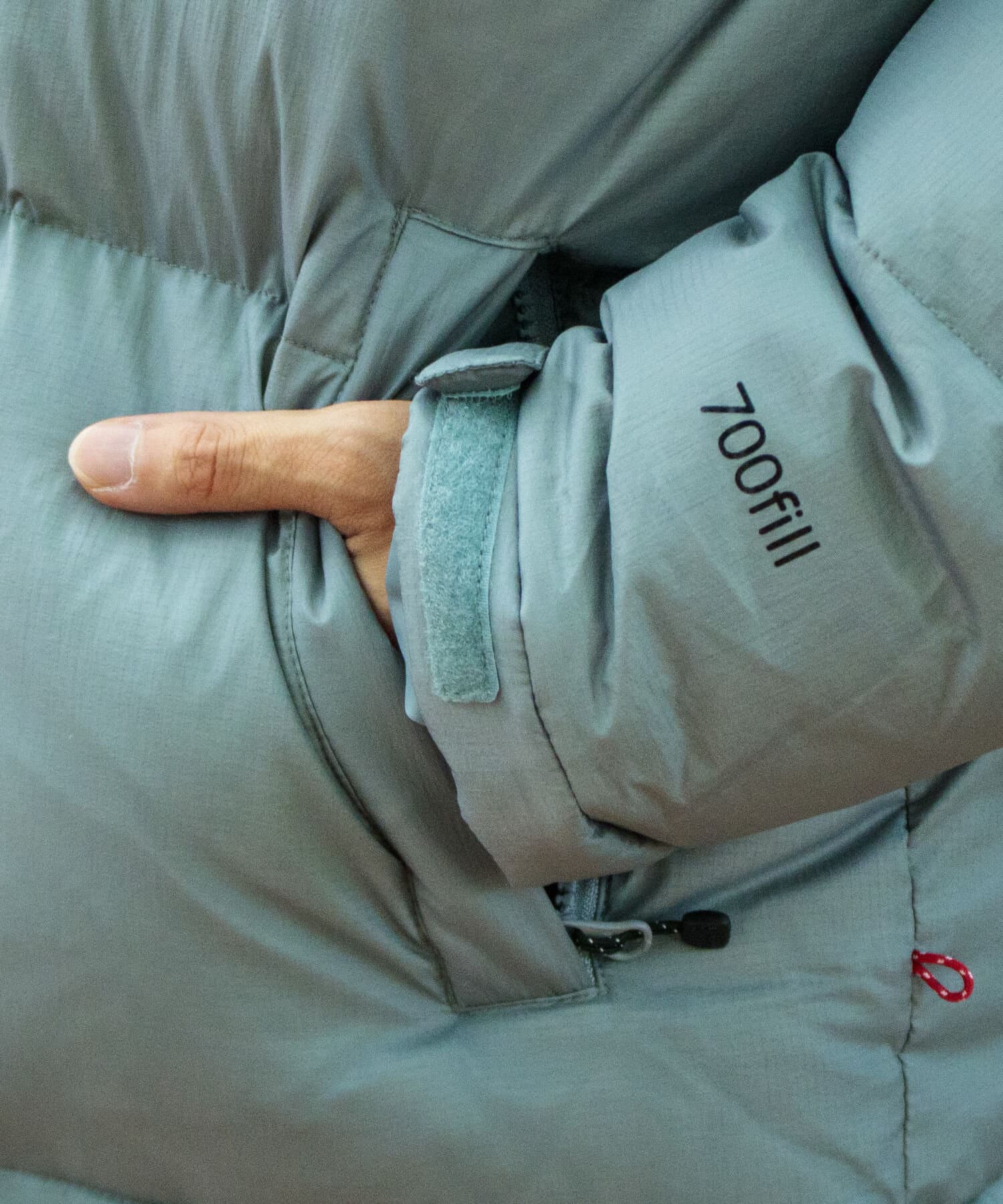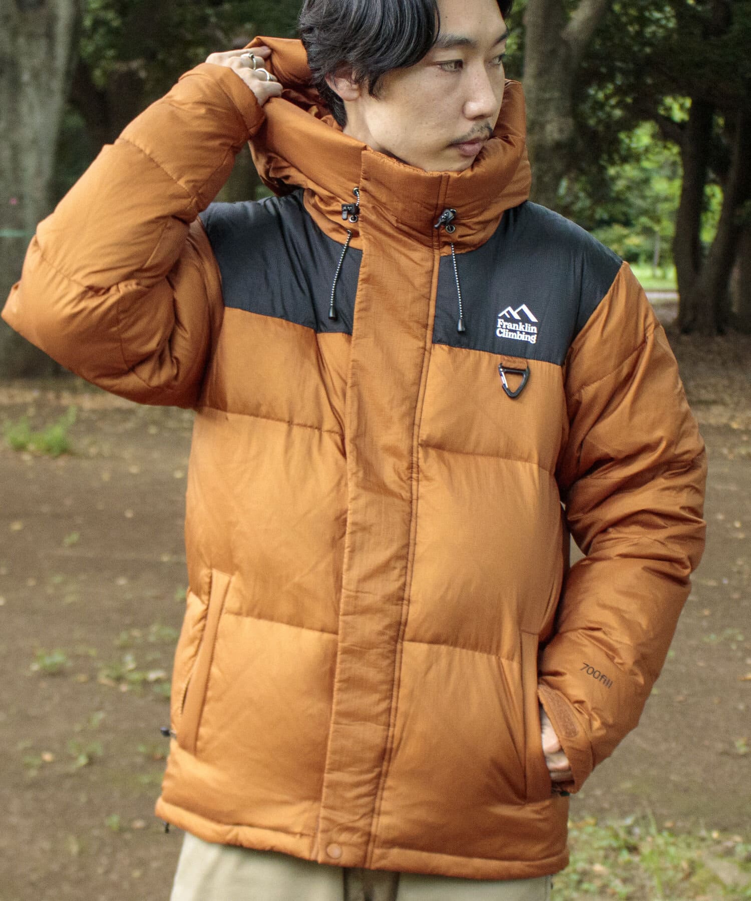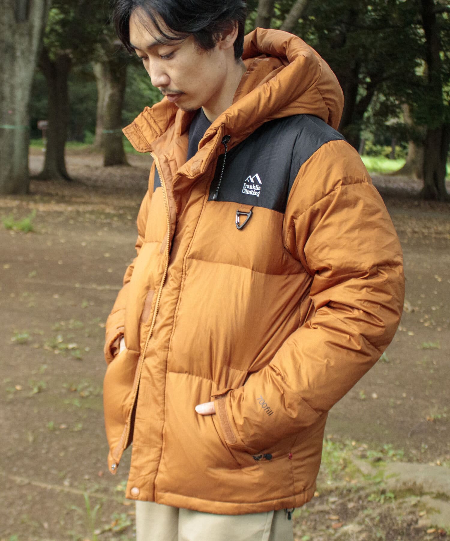 700 FP(フィルパワー)の高機能ダウンは気候が激しいアウトドアシーンでも活躍します。