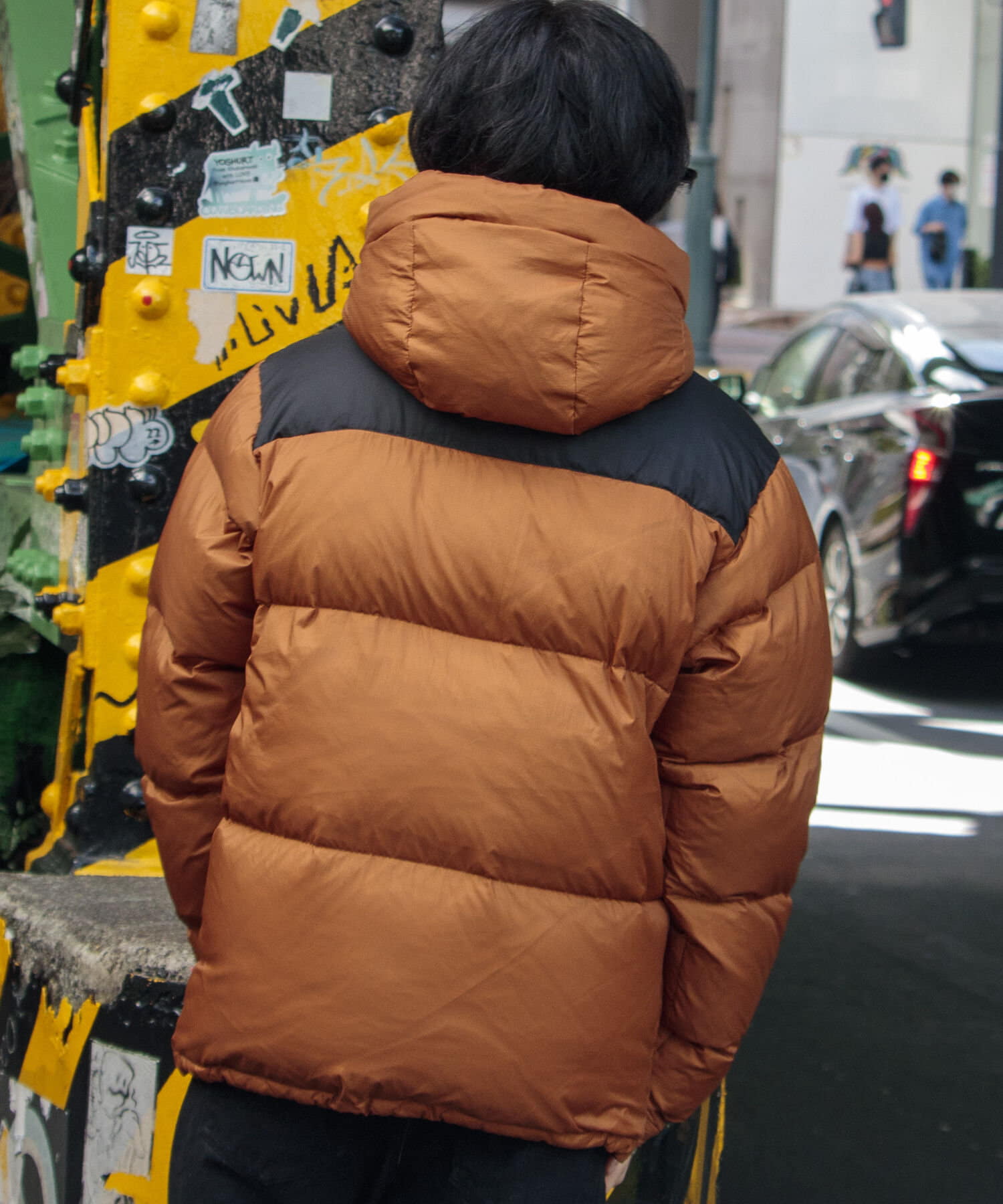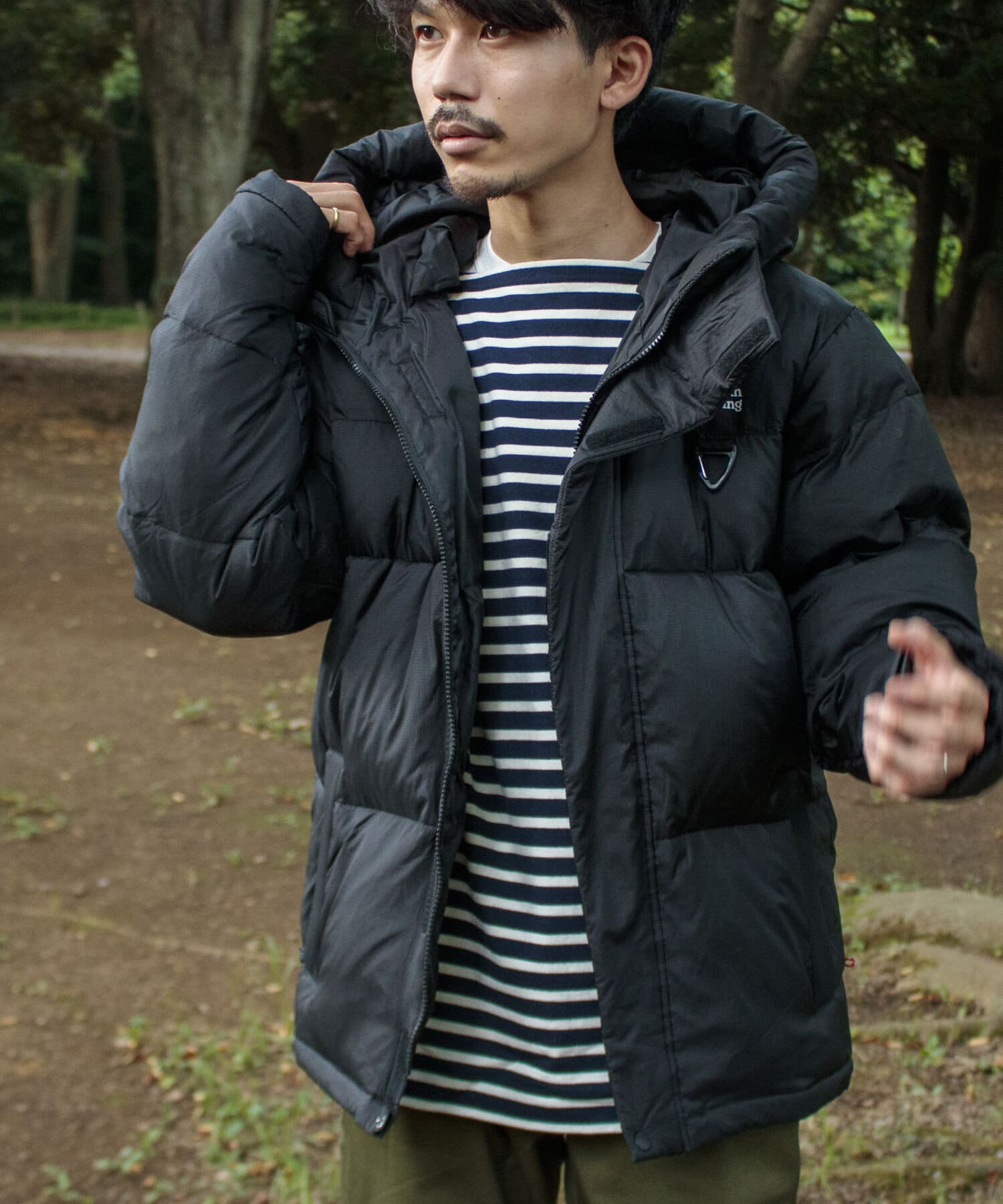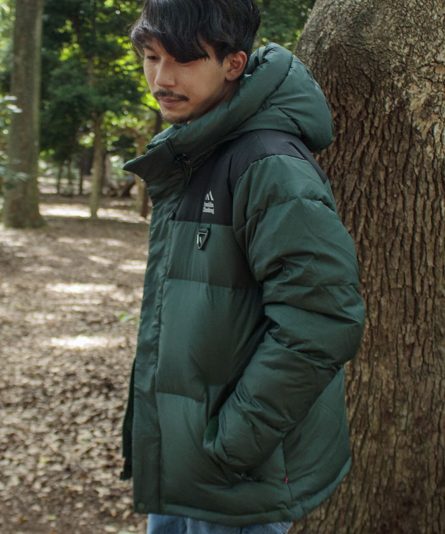 美しい景色にそびえたつカスケード山脈をモチーフにしたネームと袖口の700fill刺繍がデザインポイントです。