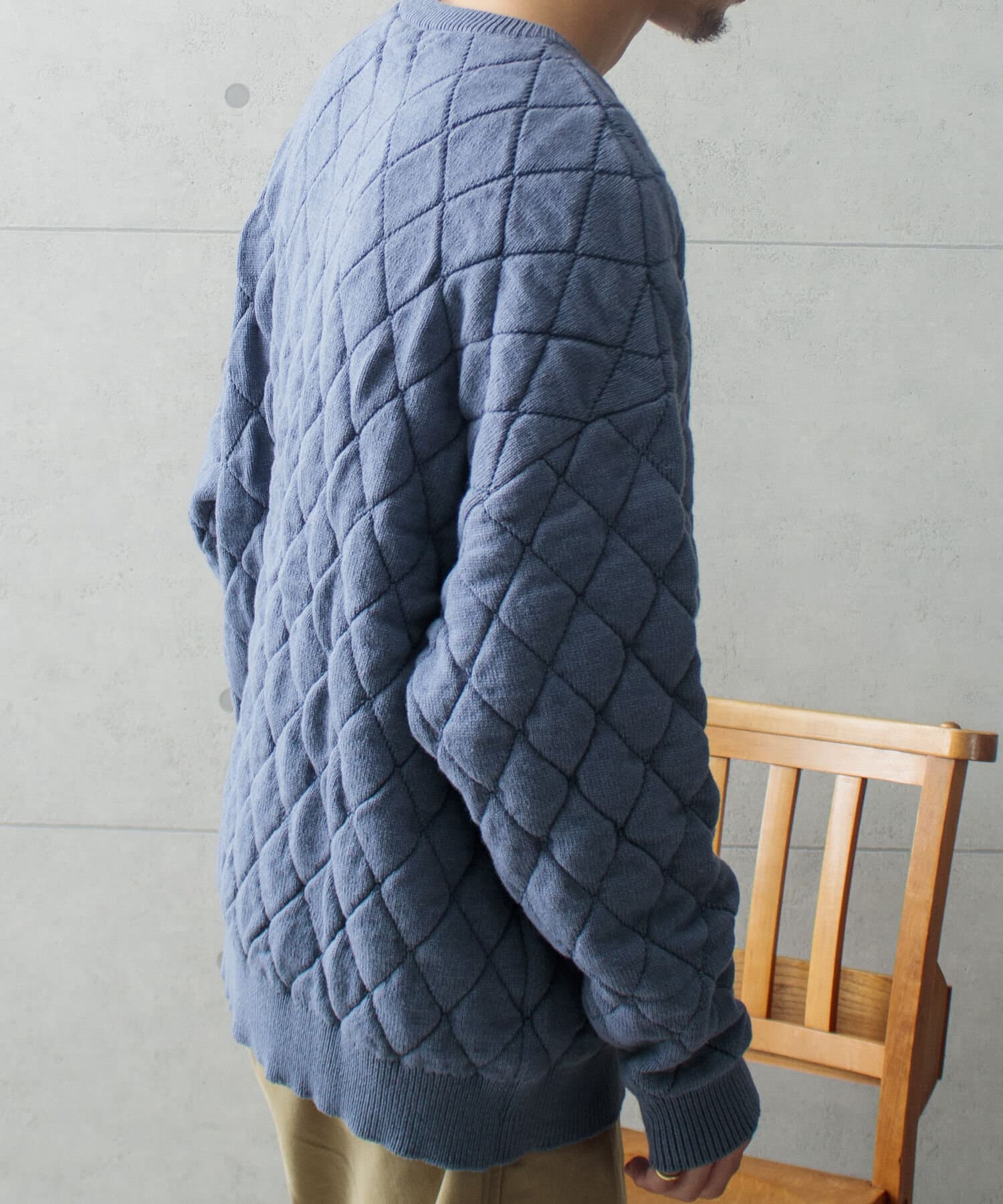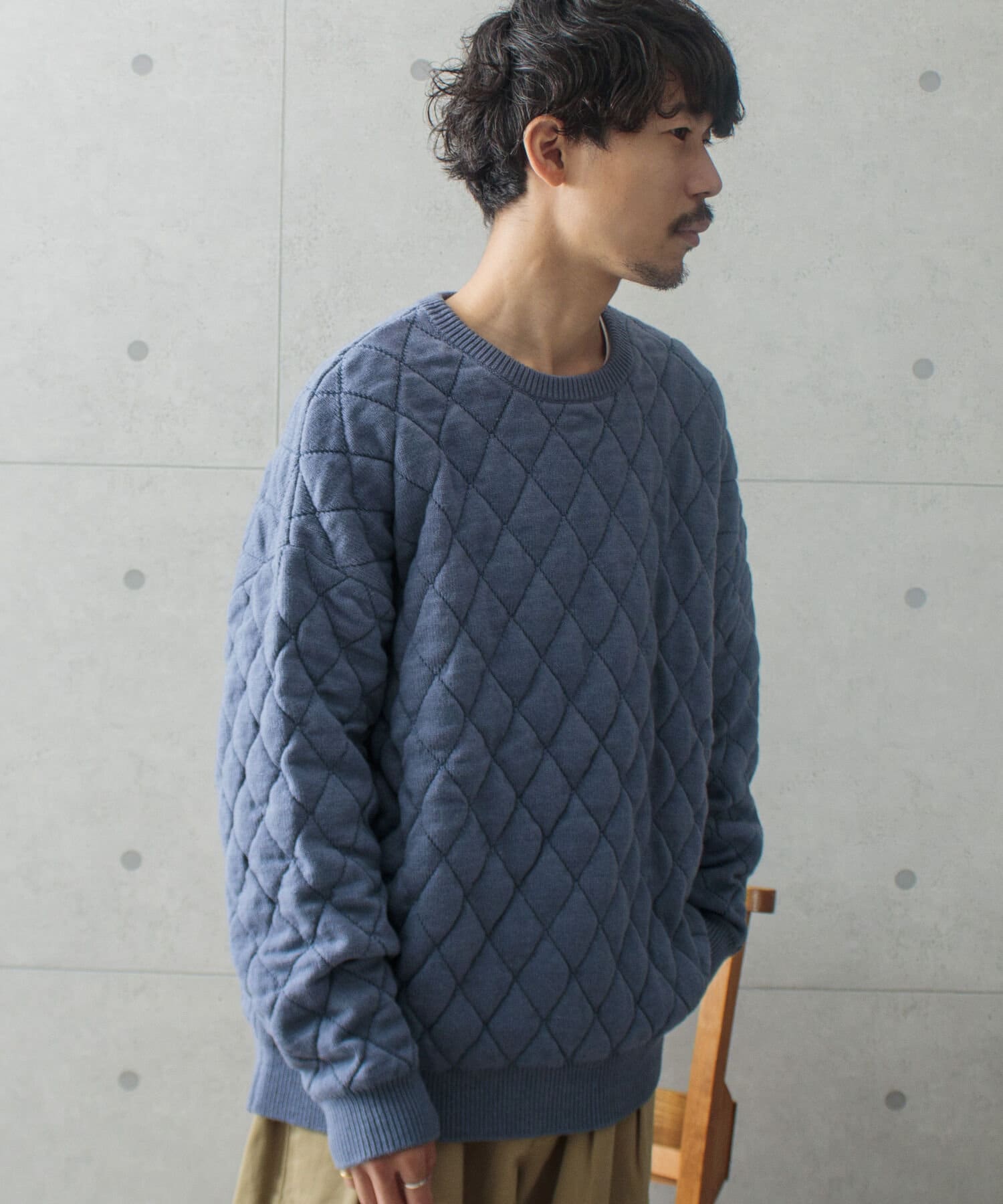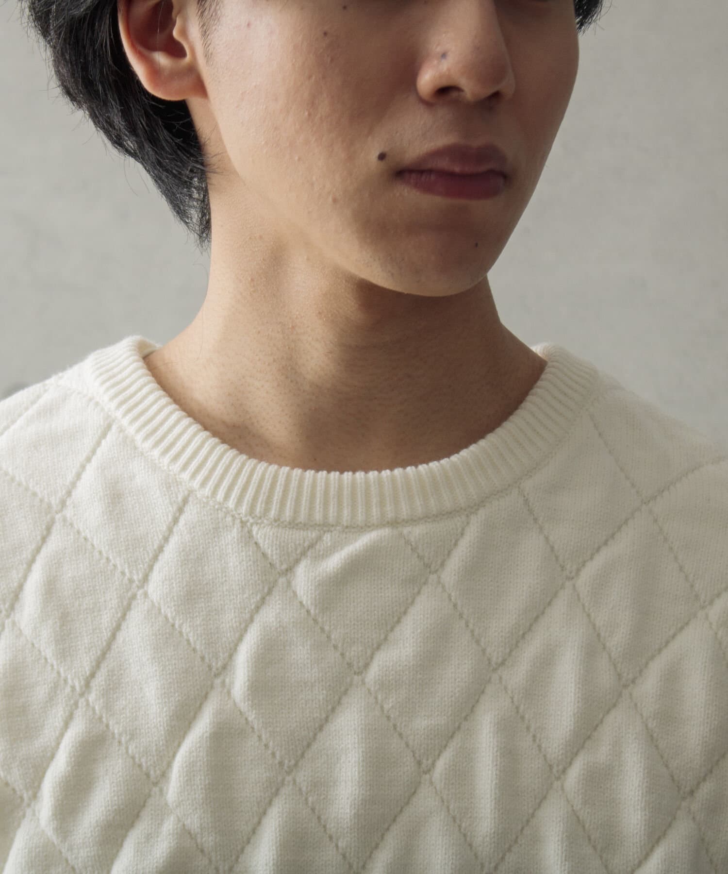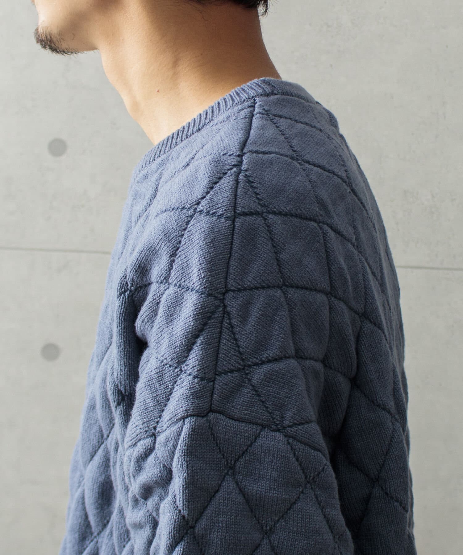 【GLOSTER】キルティングニット プルオーバー アーガイル
