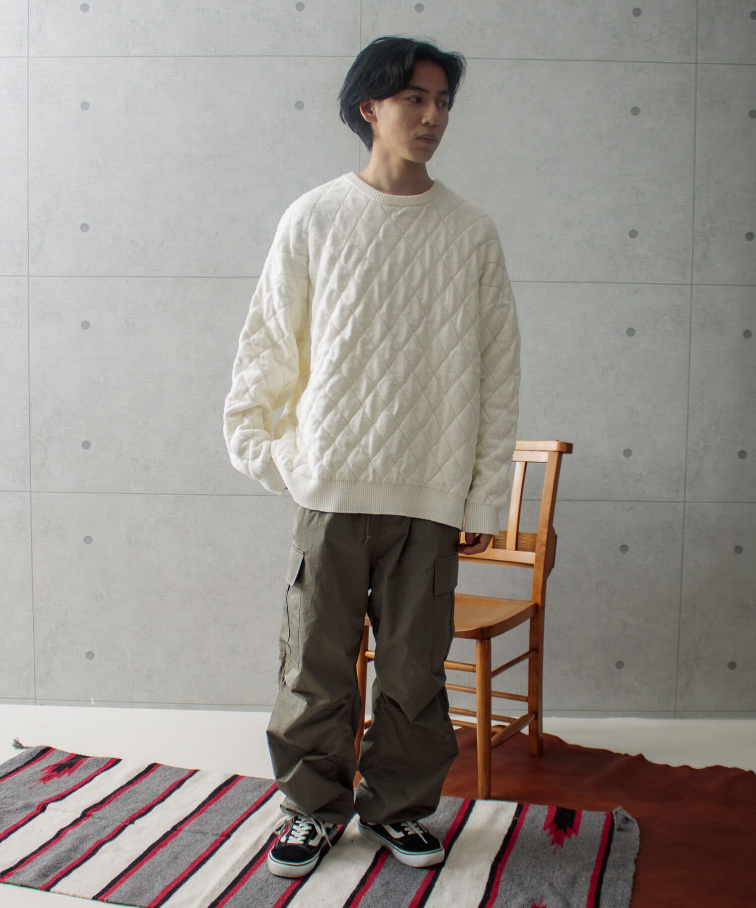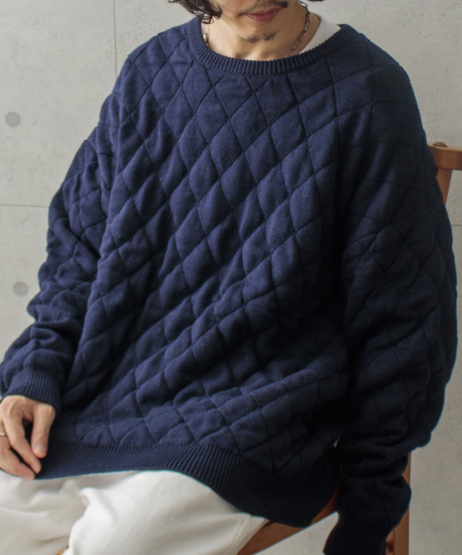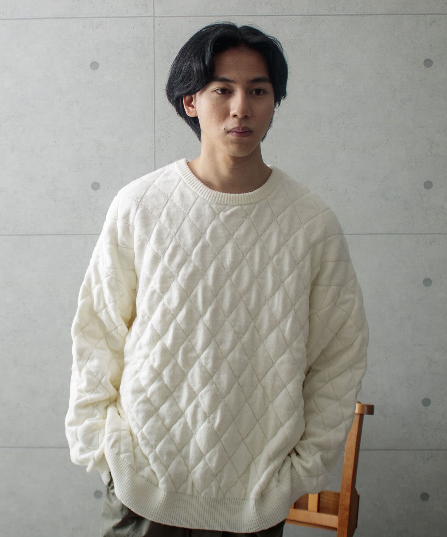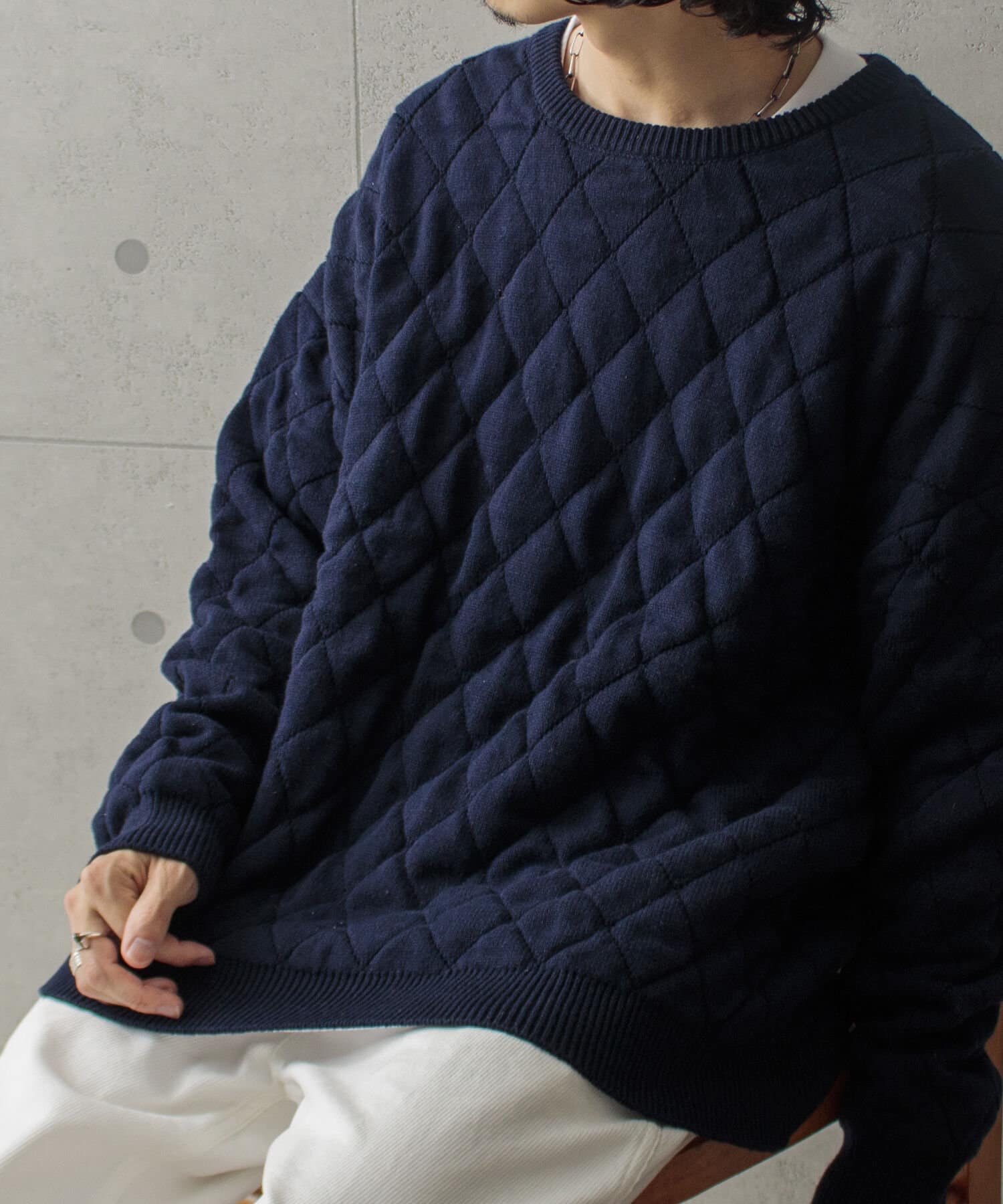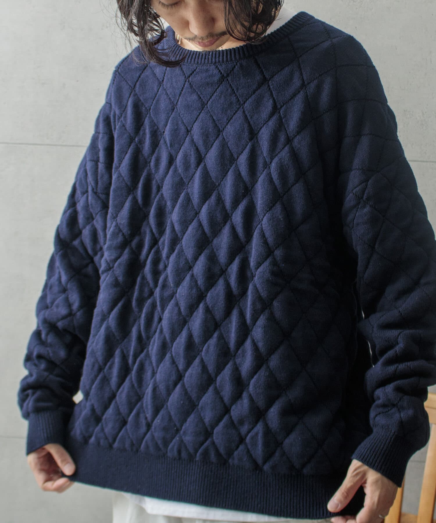 【GLOSTER】キルティングニット プルオーバー アーガイル