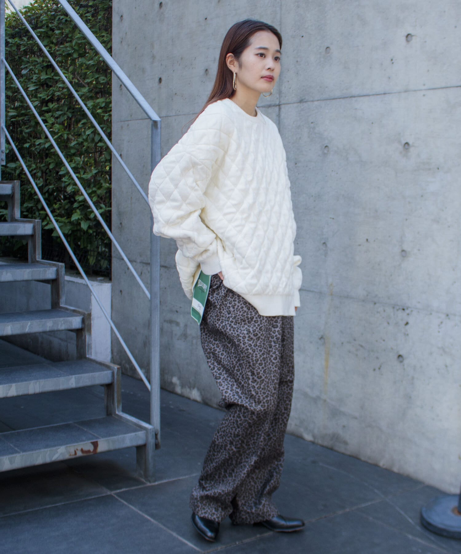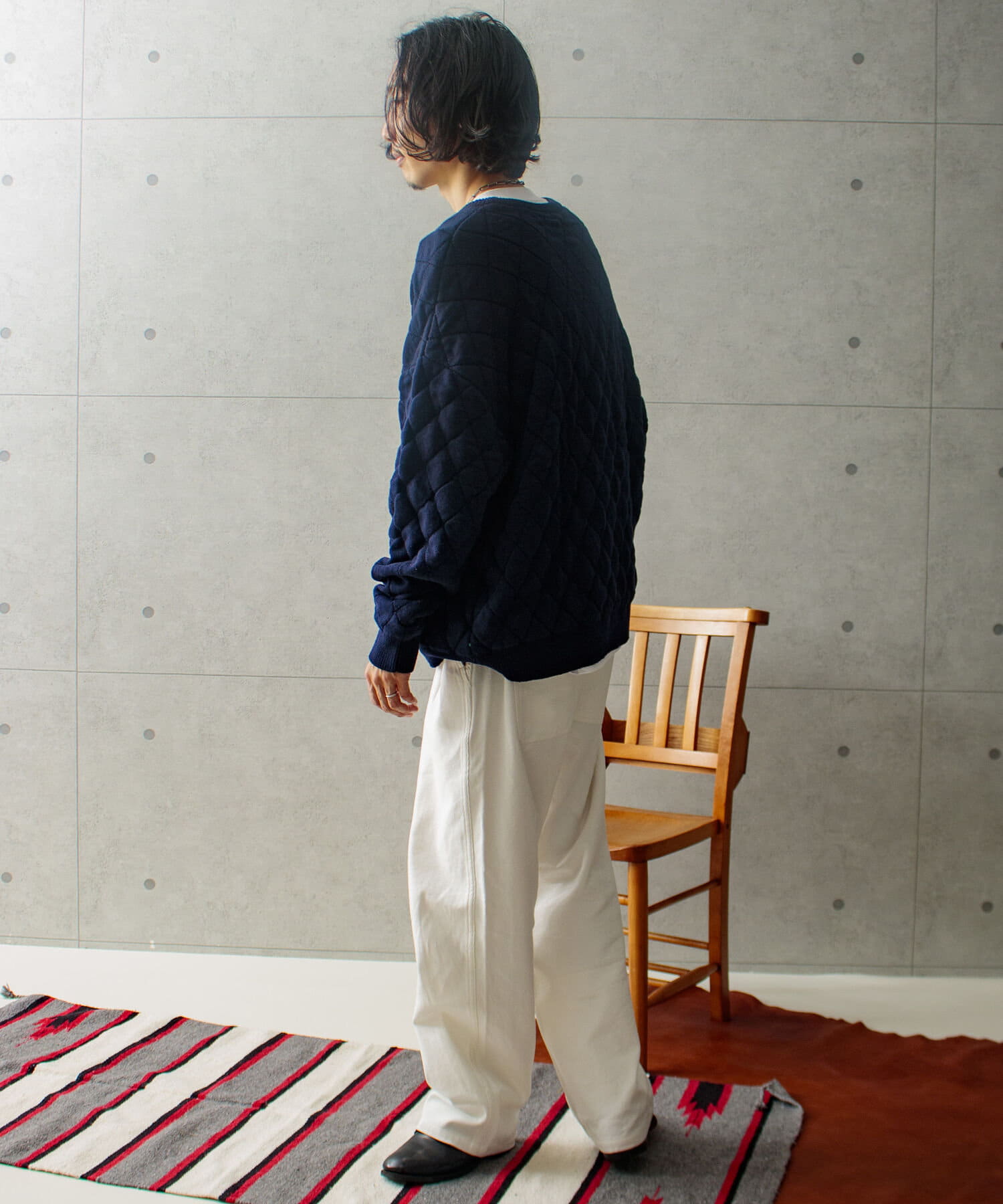 ワイドパンツやスラックスなどと合わせて、全体的にゆるく着こなすスタイリングがおすすめです。