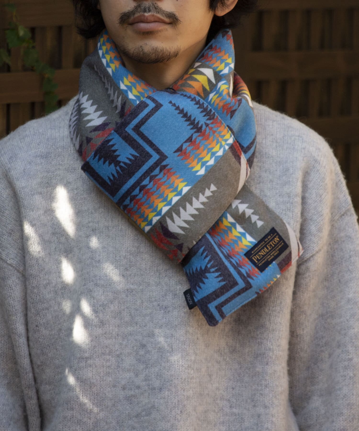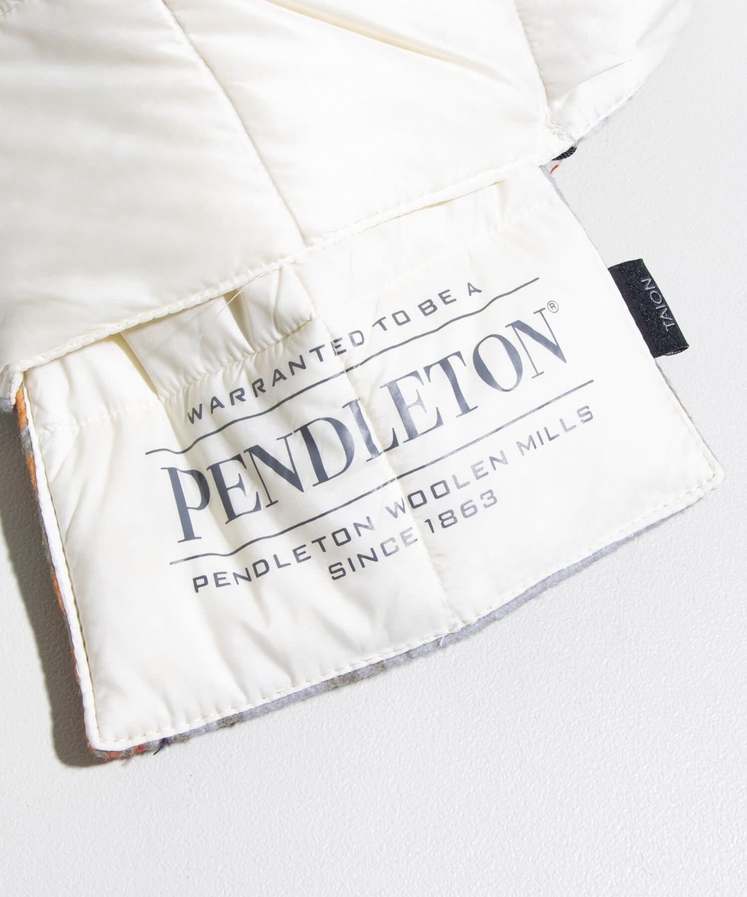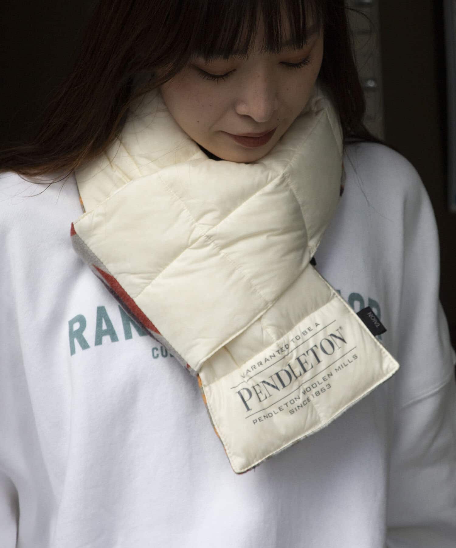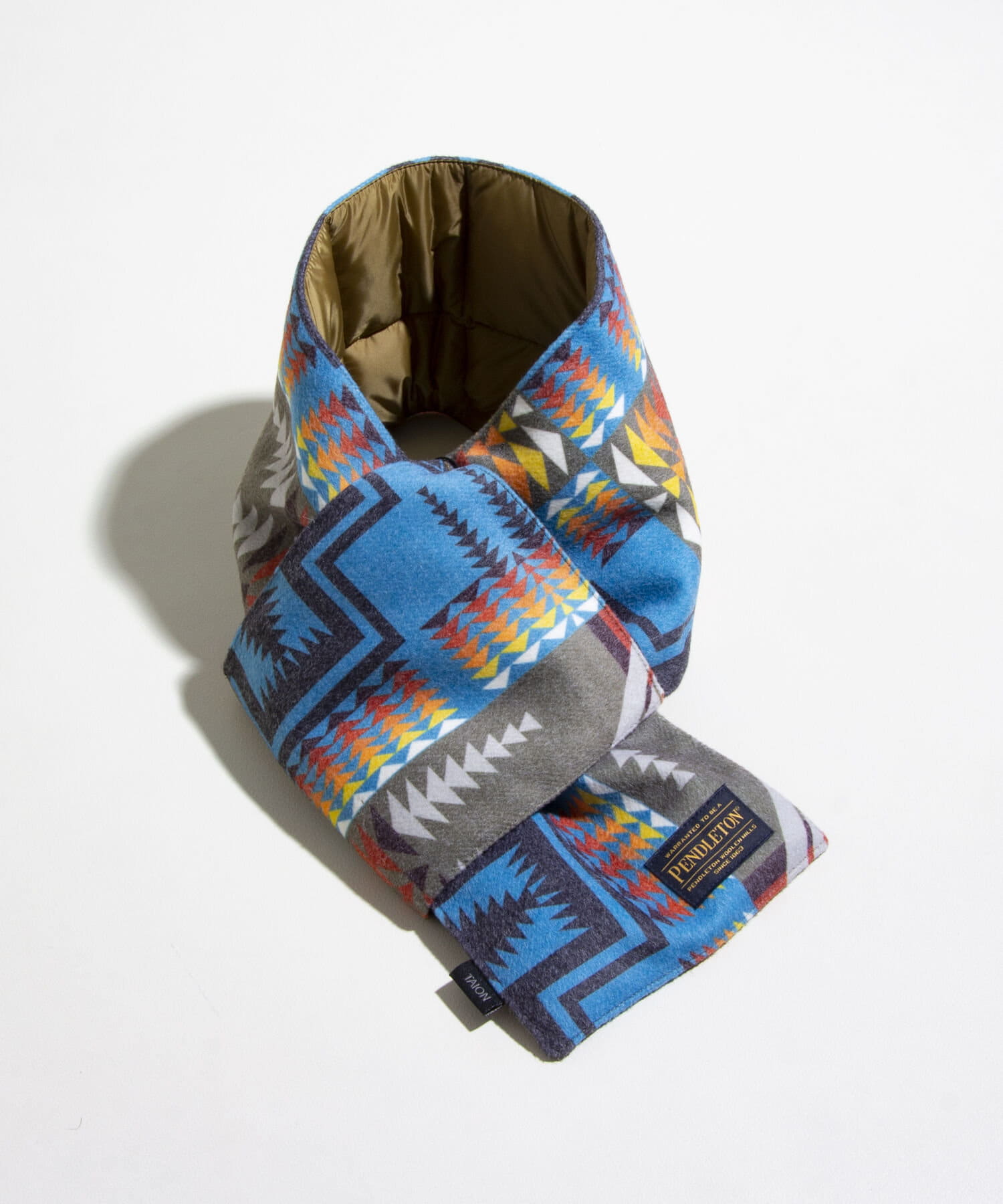 PENDLETONらしいネイティブプリントとTAIONが得意とするスポーティさが同時に楽しめる大人気コラボのダウンマフラー。