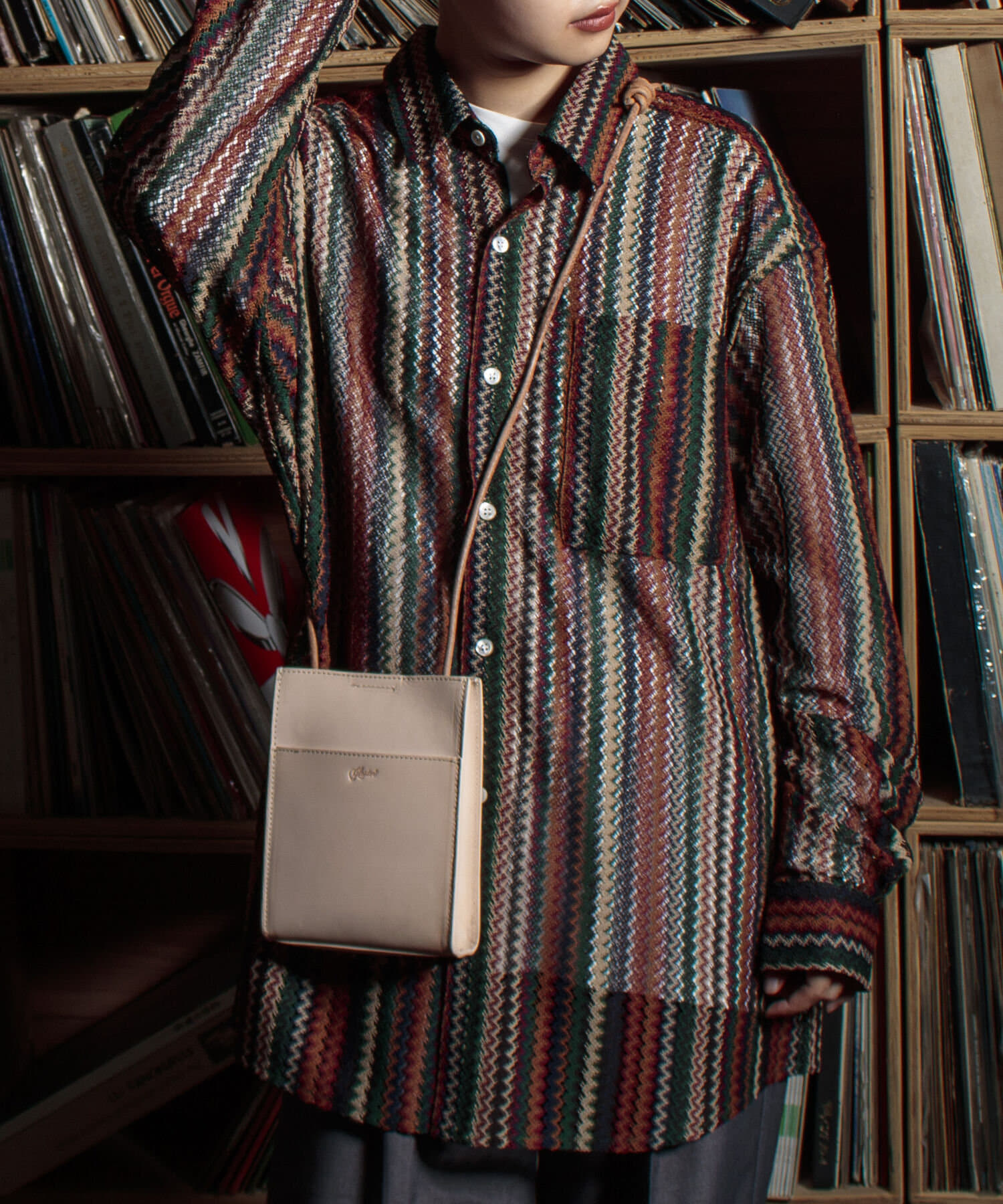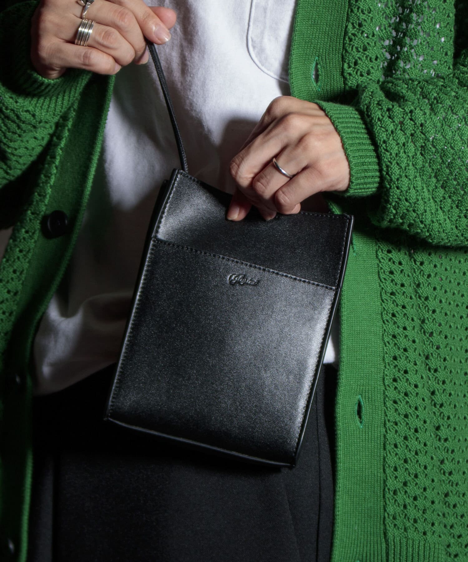 スクエア型のレザーミニショルダーバッグ
