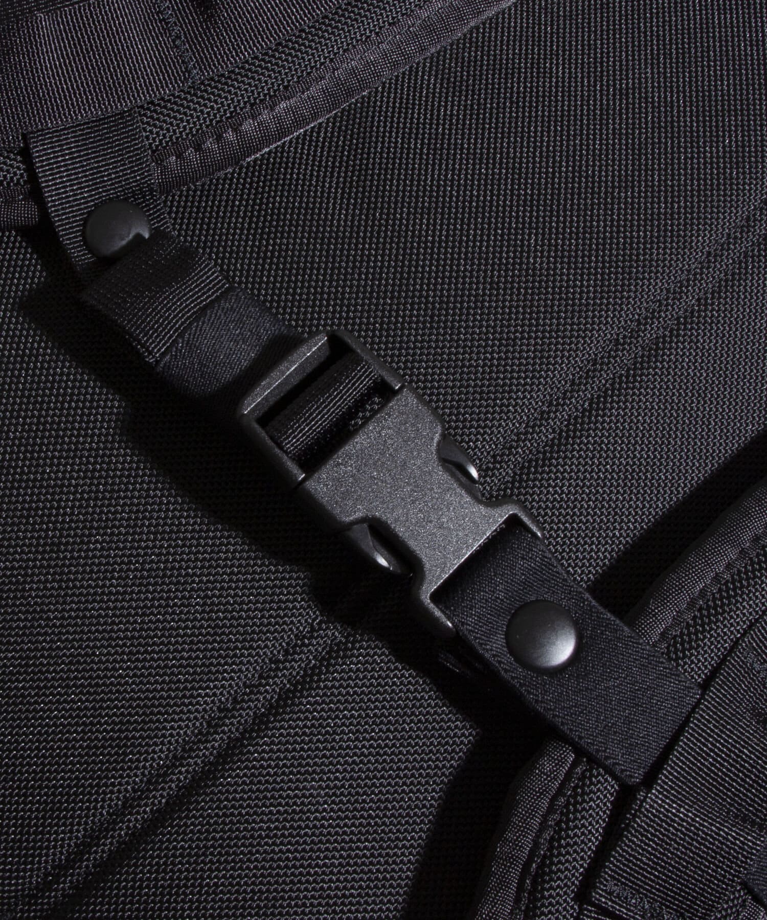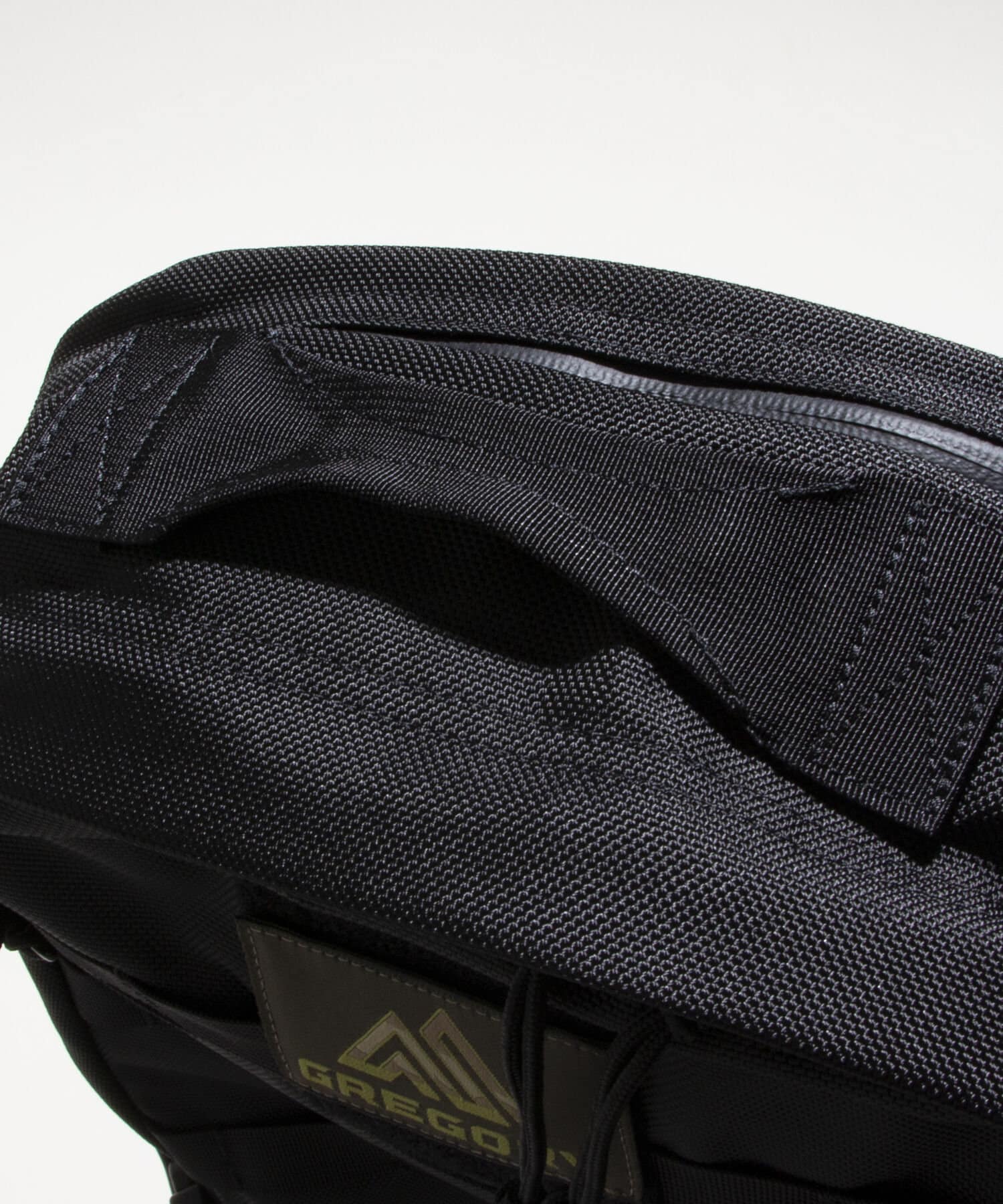 また、持ち運びに便利なウェビングハンドルもトップにつけられています。アサルトパックと同様にロゴラベルの取り外しができますが、これはこのふたつのモデルにのみ用いられた機能です。