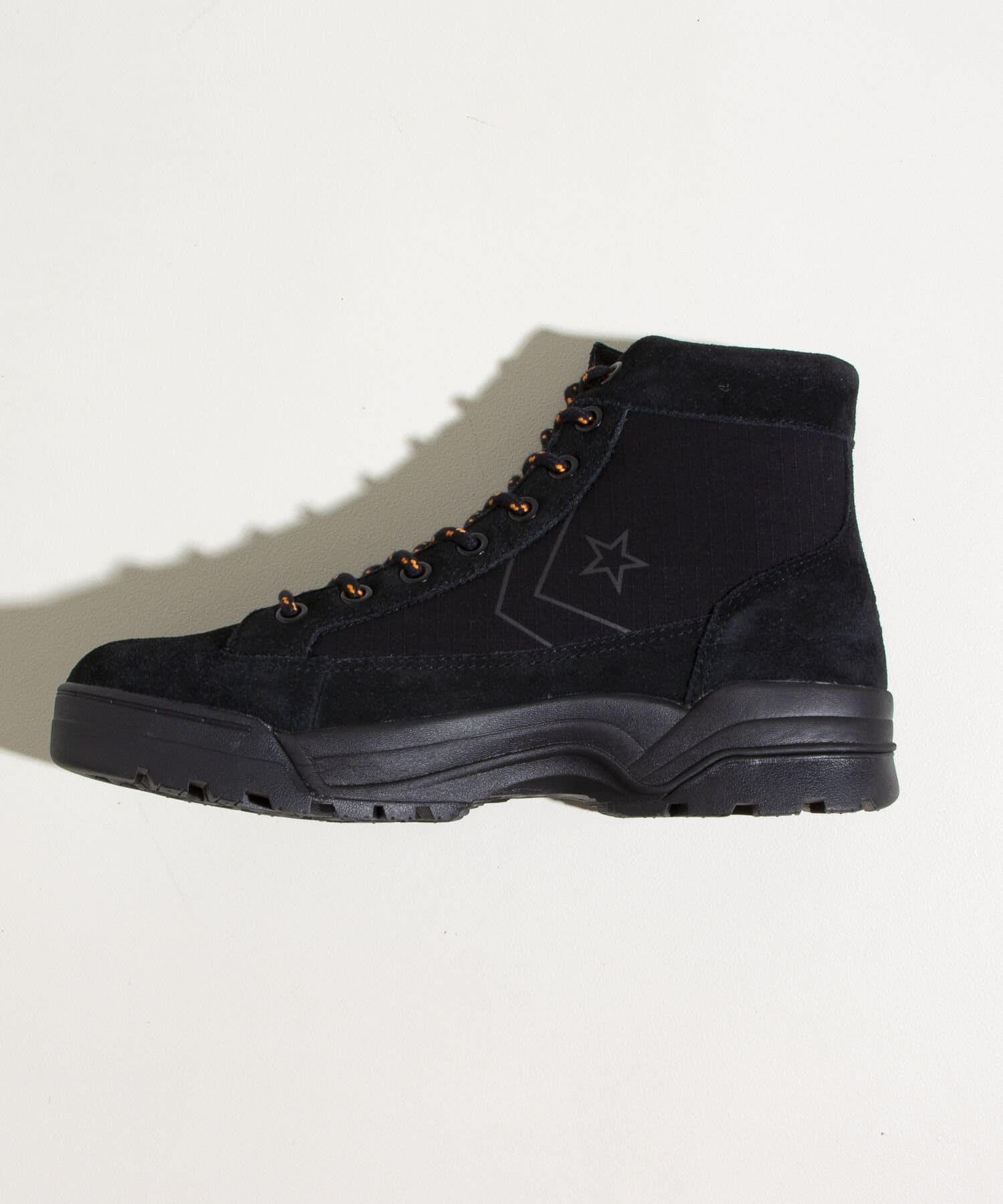 コンバースのクラシックなバスケットボールシューズにアウトドアブーツの要素を掛け合わせたスタイリッシュかつタフなデザイン。