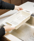 購入場所:店舗シンクにかけられるバスケット。伸縮するので縮めて収納できる。