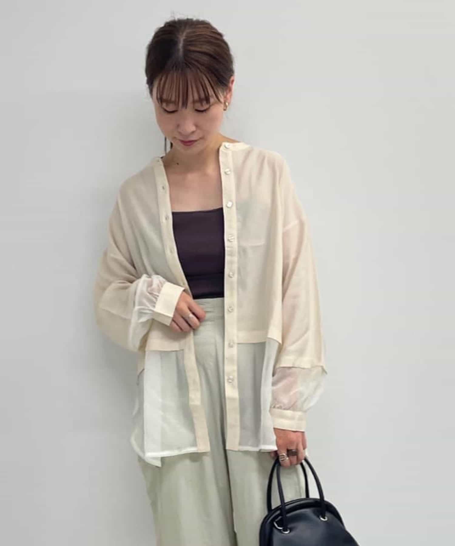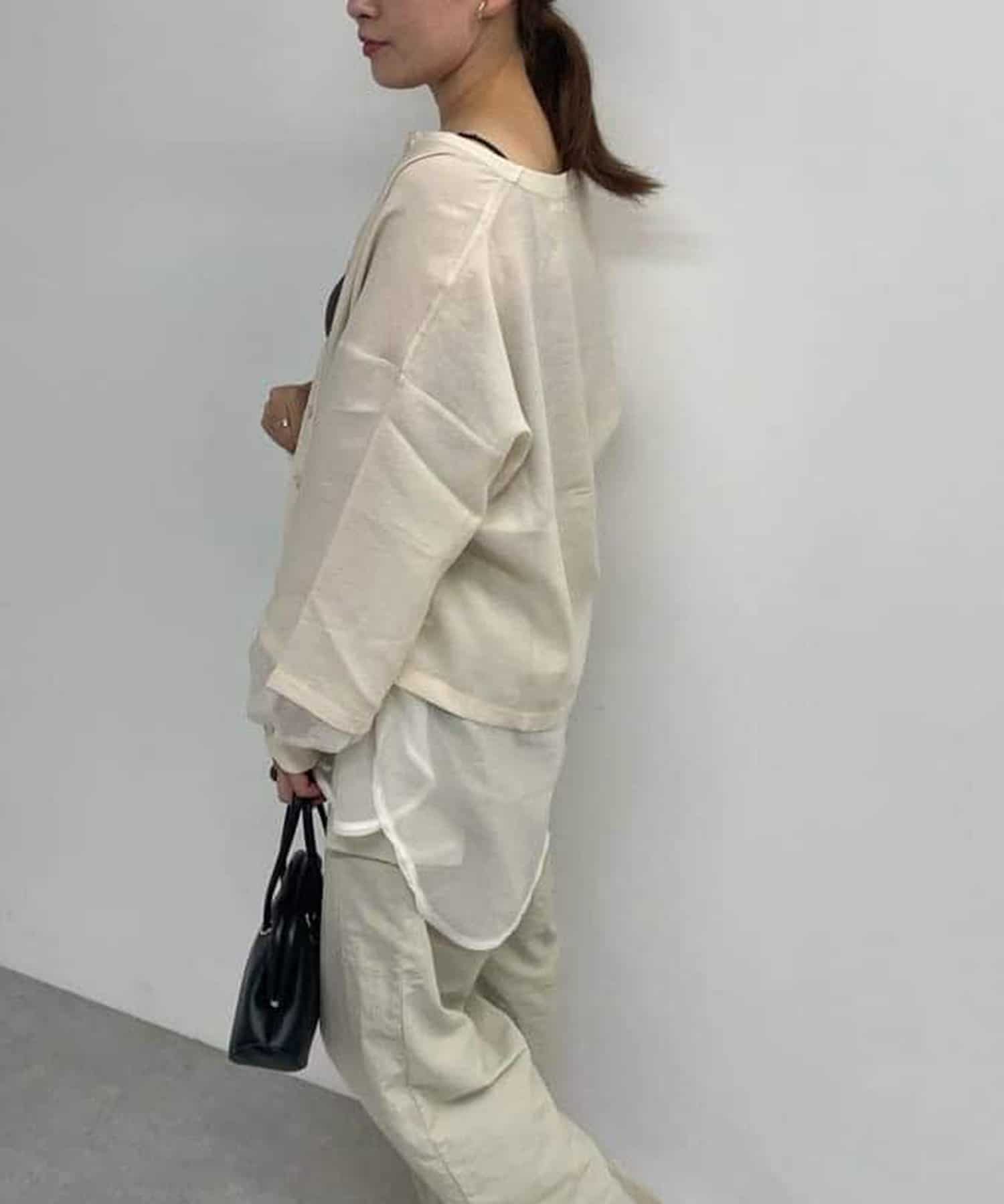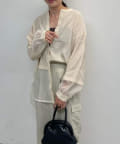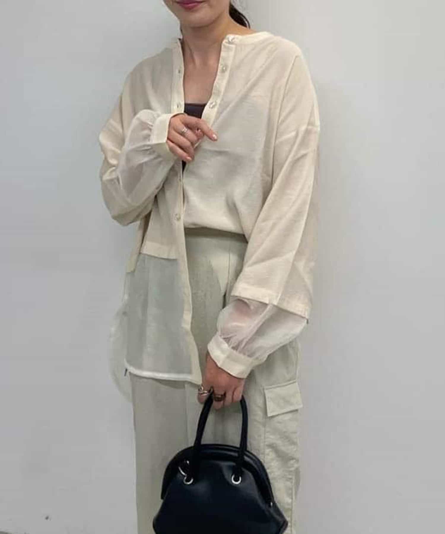 裾と袖先がシアー素材の切り替えになったビッグシャツ。
