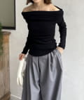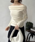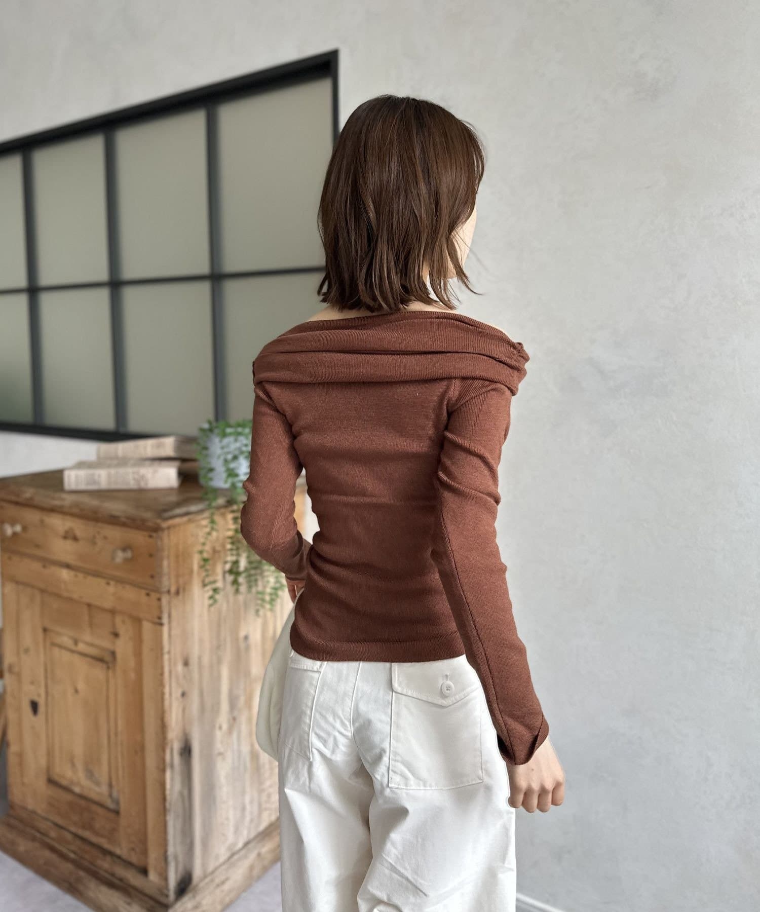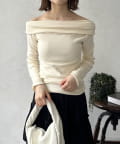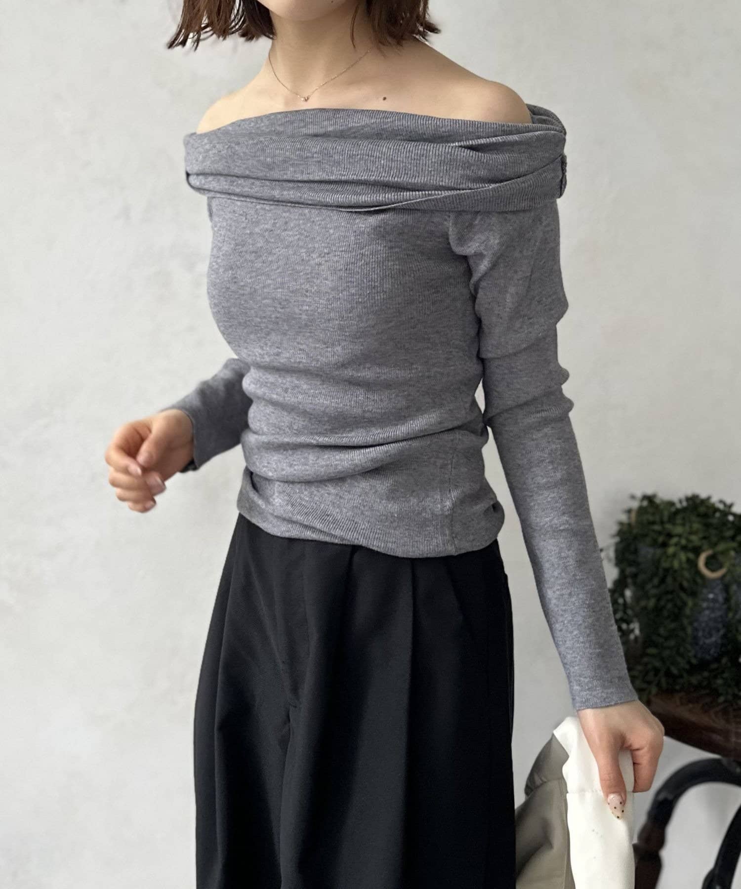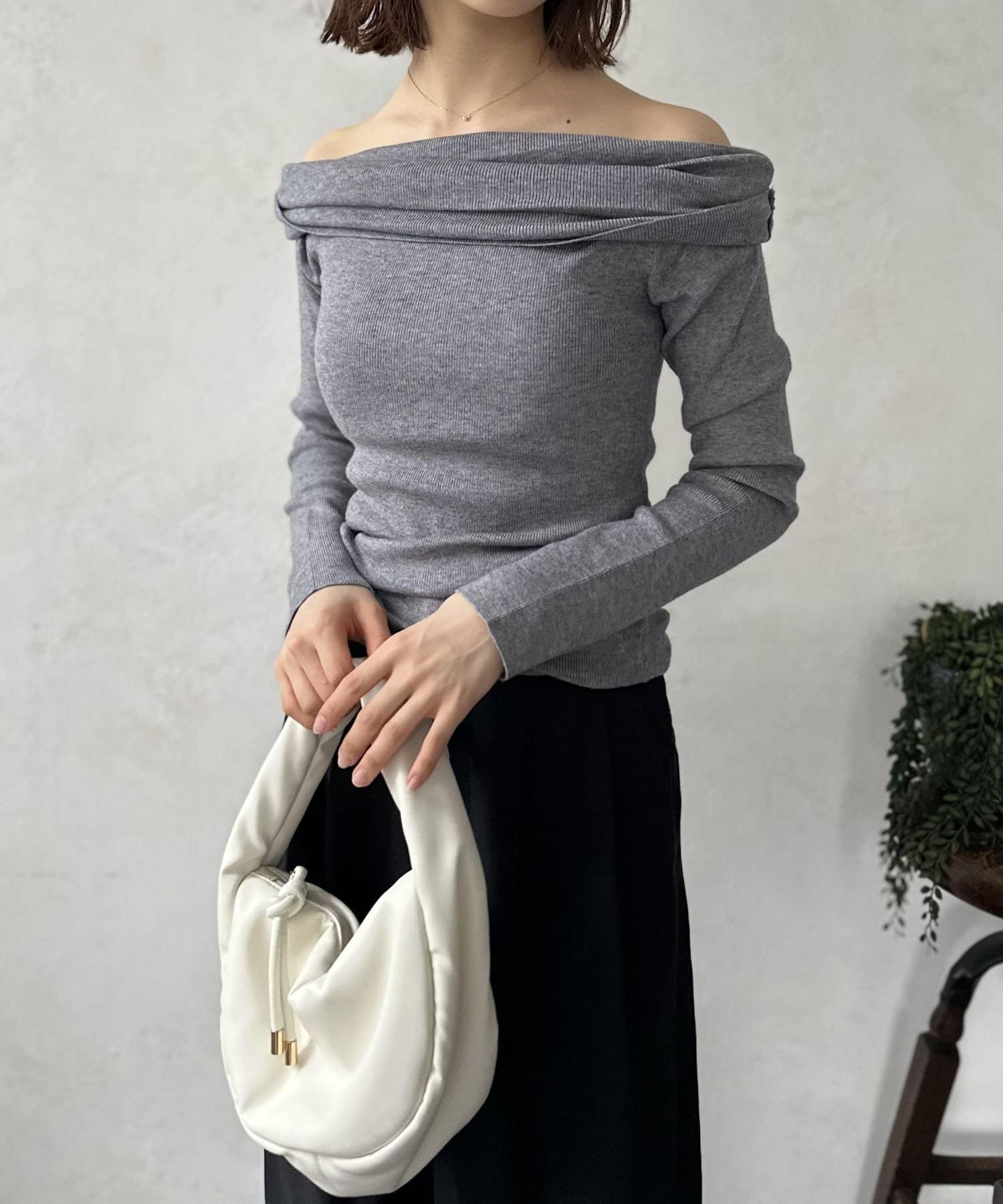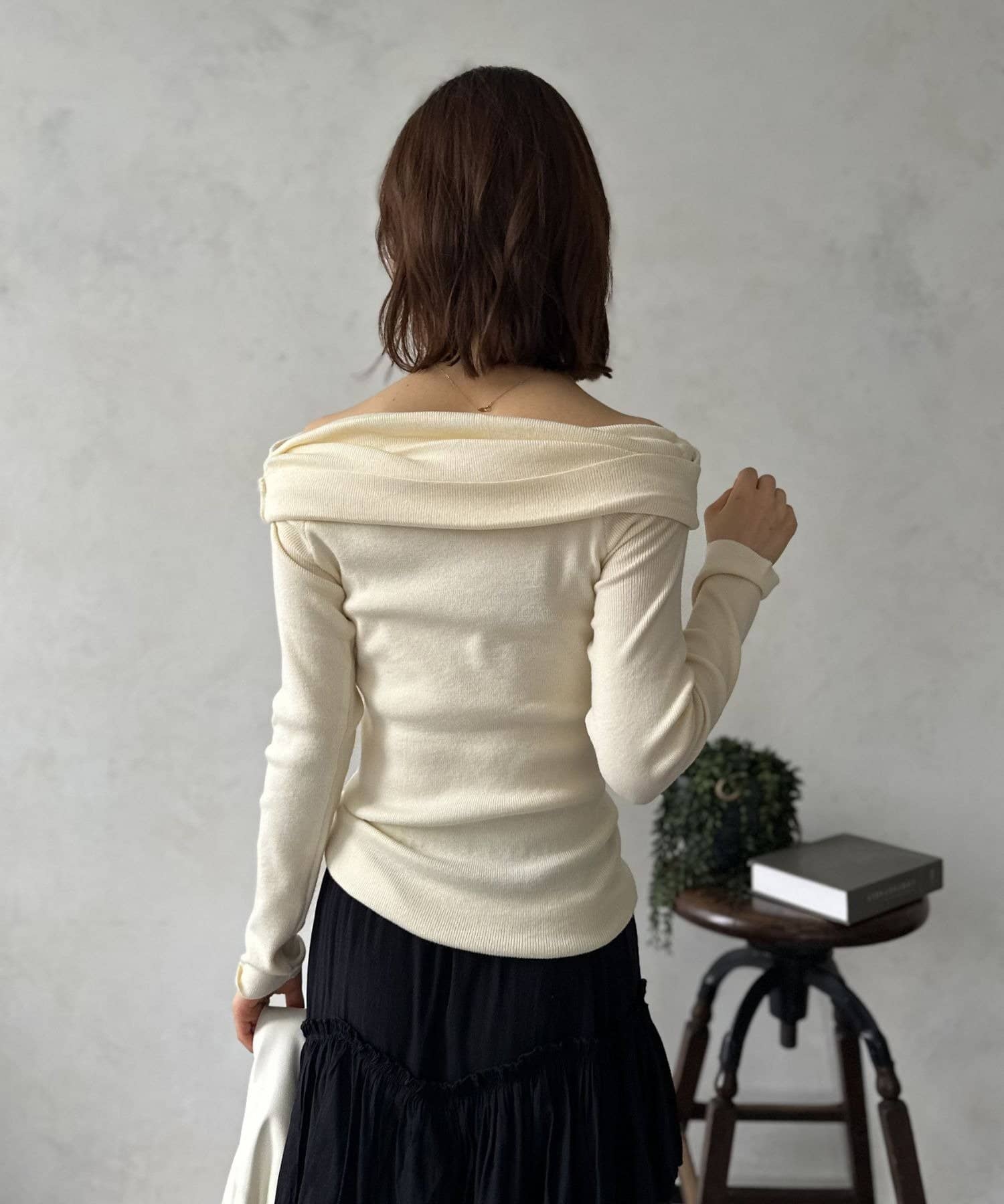 しっかりと肩を出してオフショルダーとして着こなすのはもちろん、少し控えめにボートネック風にしたり、片方の肩だけ落としてアシンメトリーなワンショルダースタイルを楽しんだりと、気分やシーンに合わせて何通りもの着こなしができる優秀な一枚です。