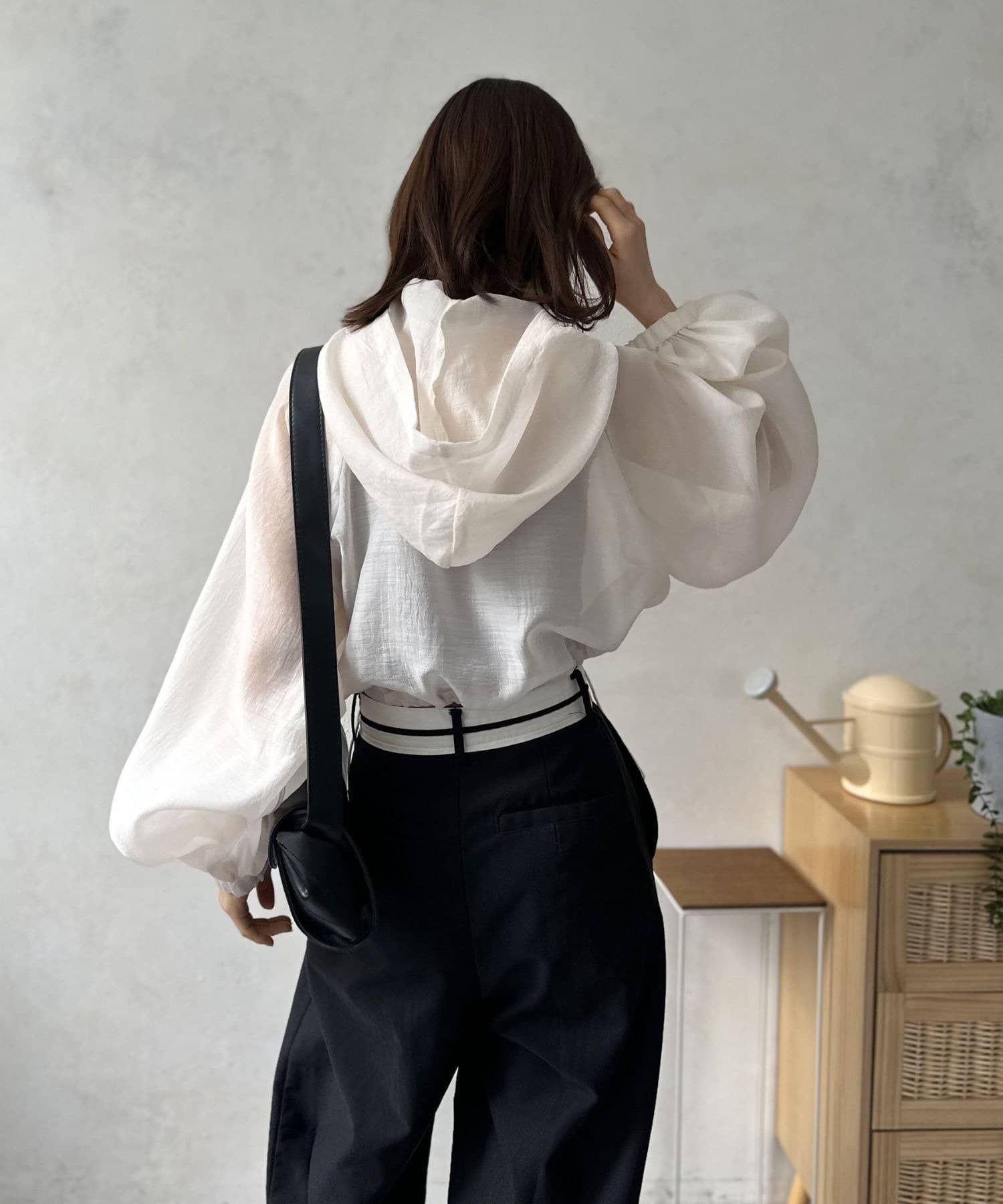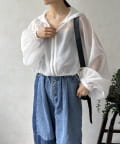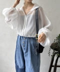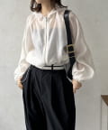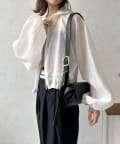 袖は、ふんわりとしたボリュームスリーブデザイン。空気をはらんだような立体的なフォルムが、気になる二の腕周りをさりげなくカバーしながら、女性らしい柔らかな雰囲気を演出してくれます。