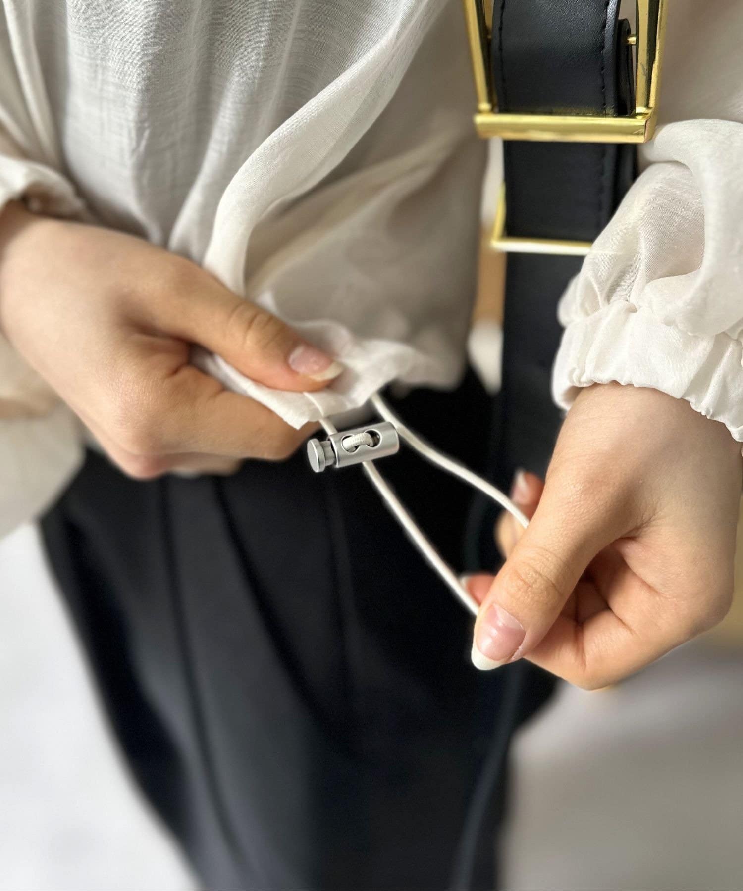 はゴム仕様になっているので、くしゅっとたくし上げて手首を見せれば、さらに抜け感のあるこなれた着こなしが楽しめます。