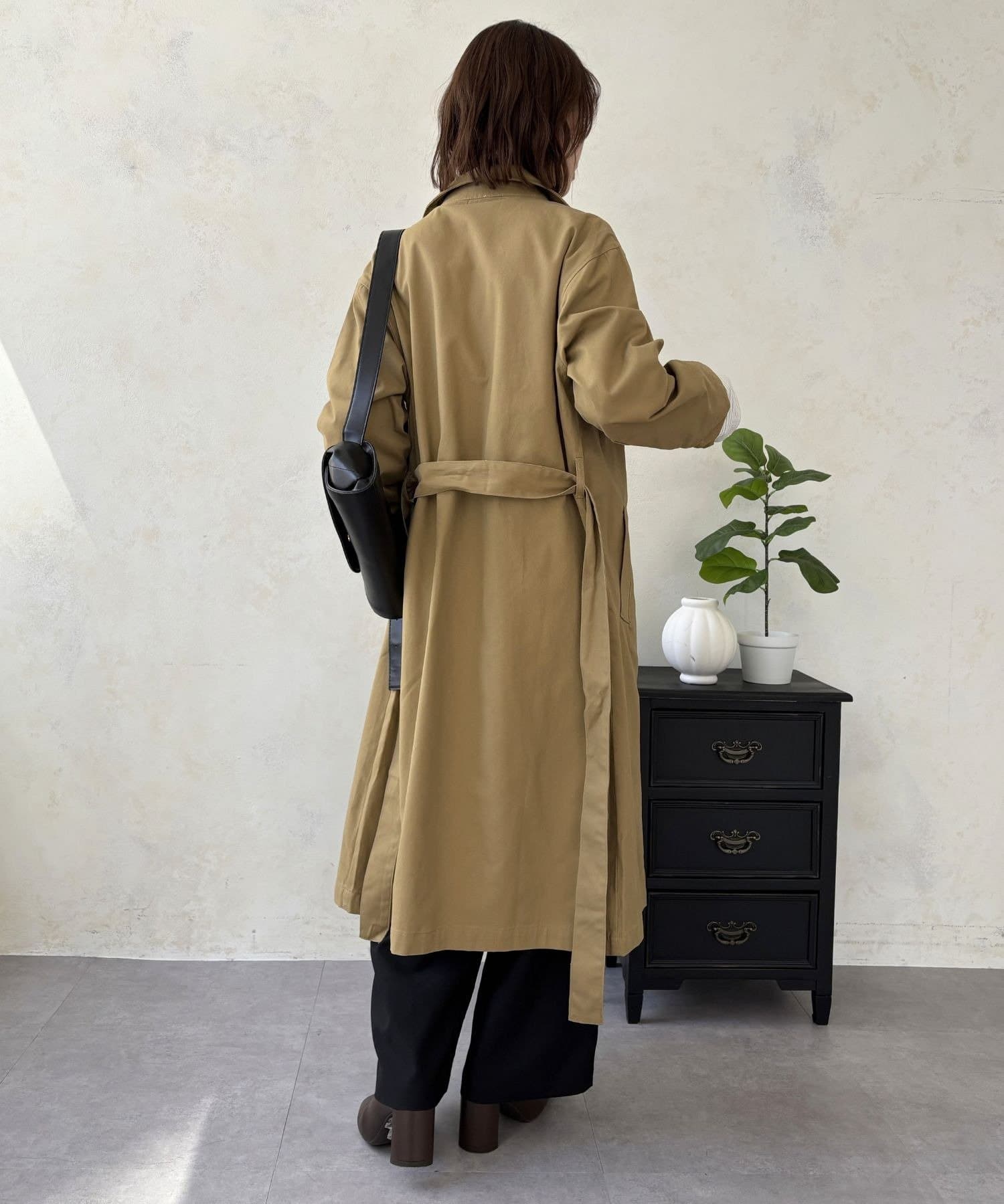 付属のベルトでウエストをきゅっとマークすれば、シルエットにメリハリが生まれスタイルアップ効果も抜群。