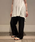 ワイドシルエットで気になる体型をカバーしつつ、ストンと落ちる素材感ですっきり見えも叶えます。