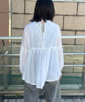 袖口のギャザーが、さらにフェミニンな印象をプラス。