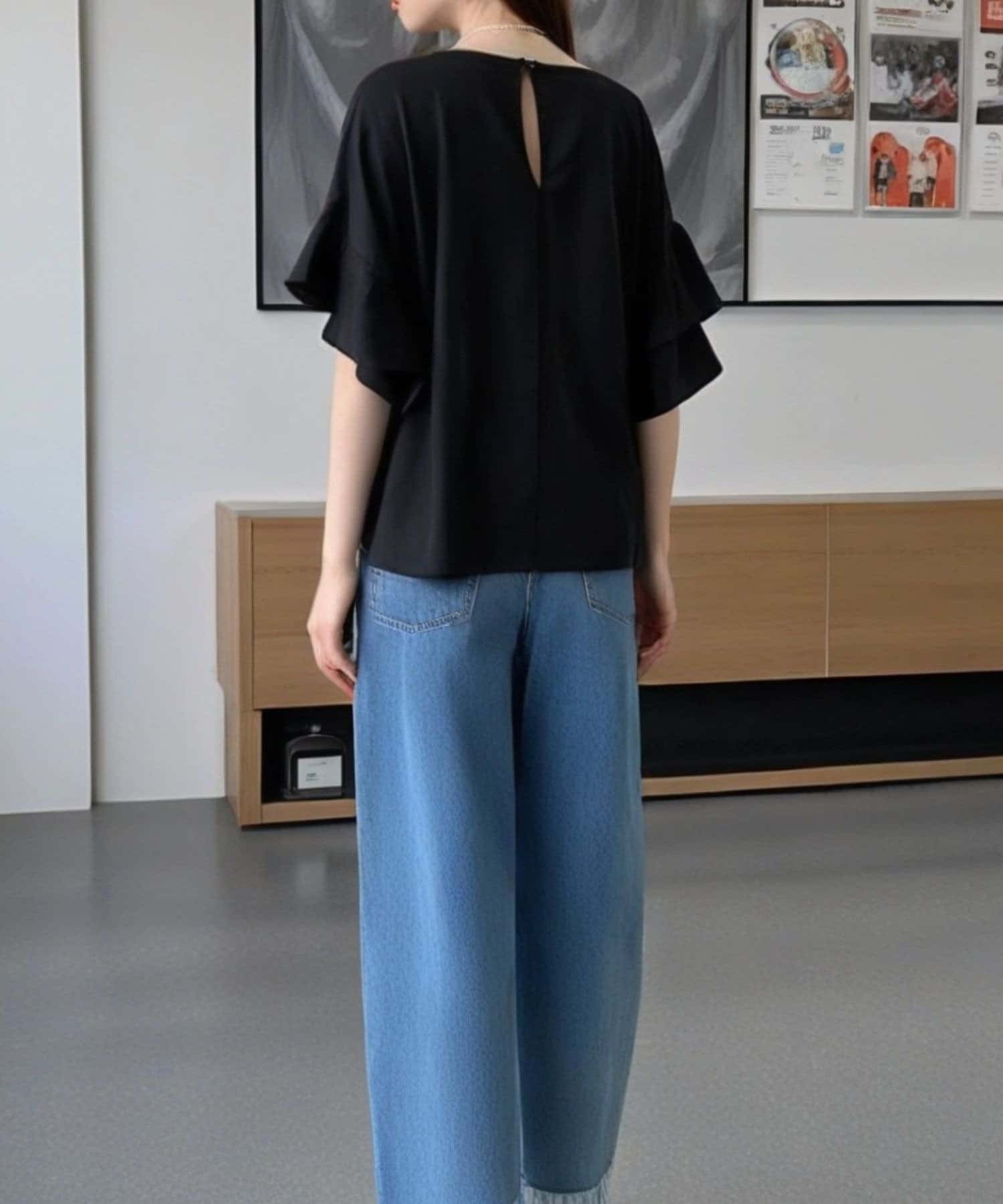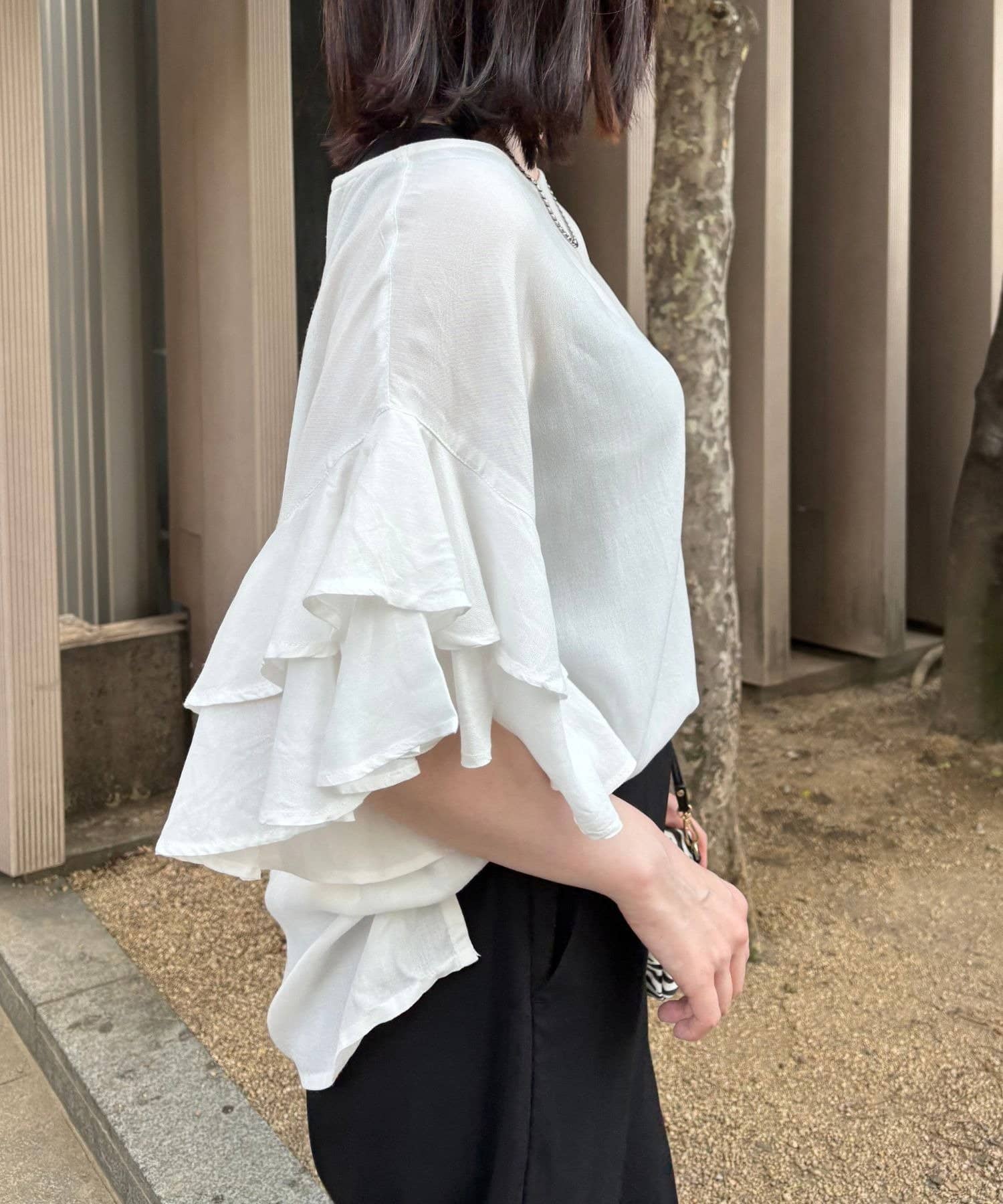 **軽やかに、涼やかに。大人の余裕をまとうフリルスリーブブラウス**