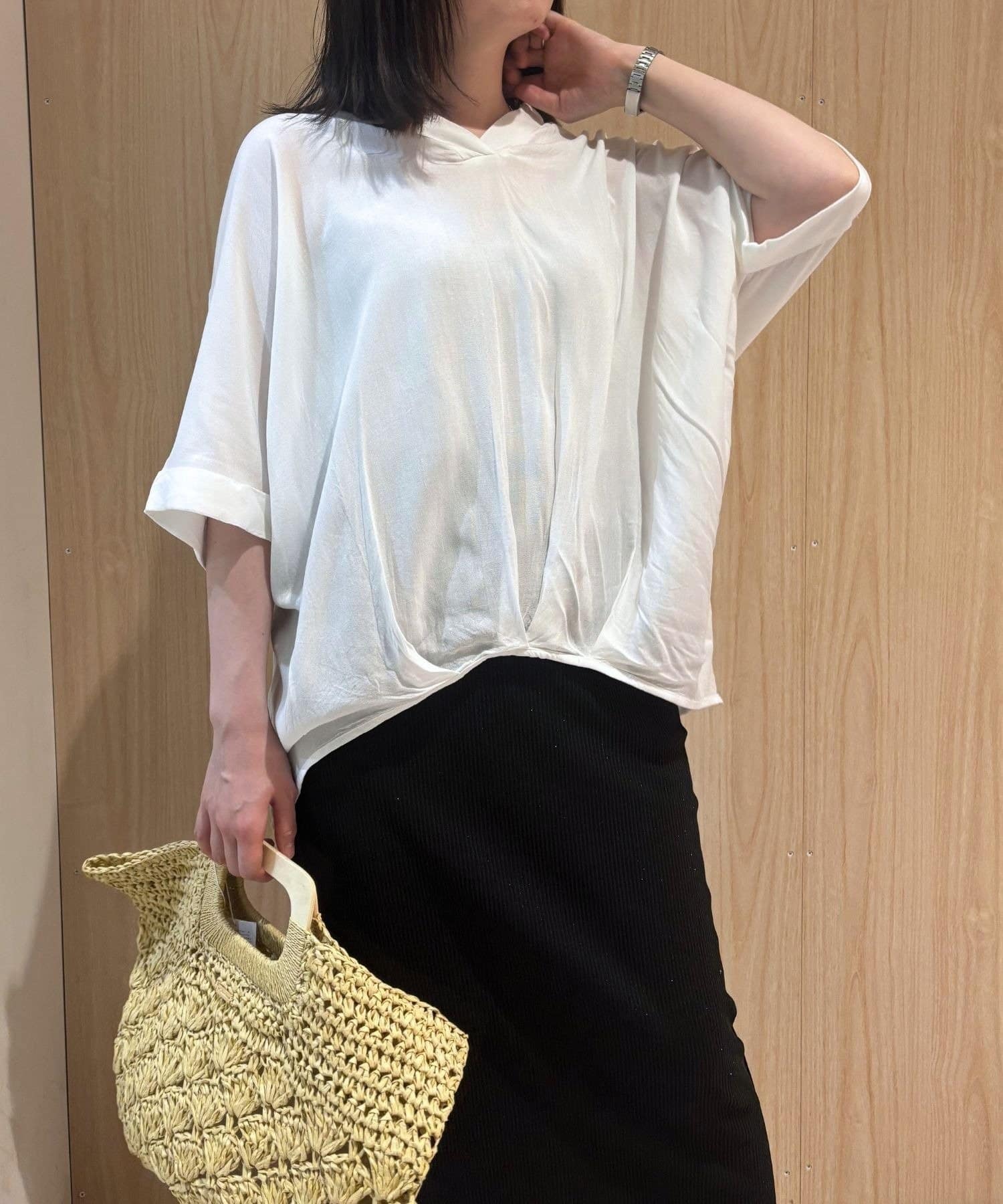 気になる二の腕やお腹周りをふんわりカバーしてくれる、ゆったりシルエット。