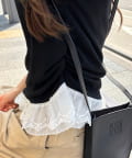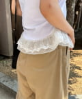 さりげないフリルが、ウエスト周りをふんわりカバー。
